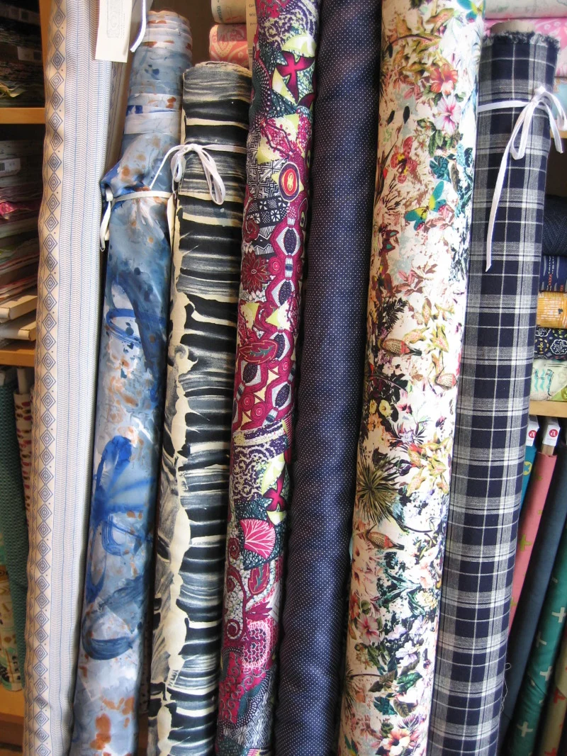 Silks, rayons, a digitally printed cotton twill, and a classic cotton plaid for good measure.