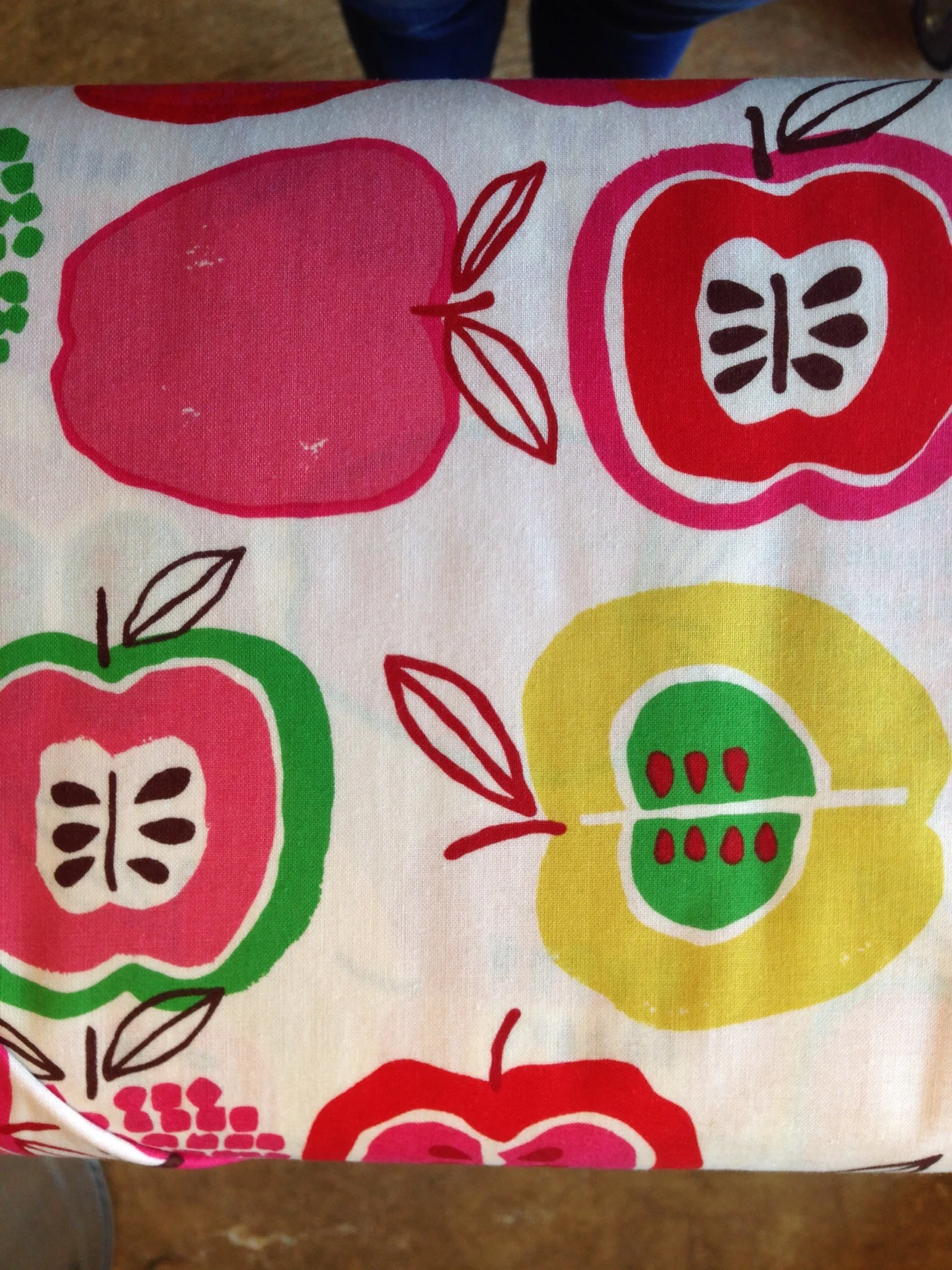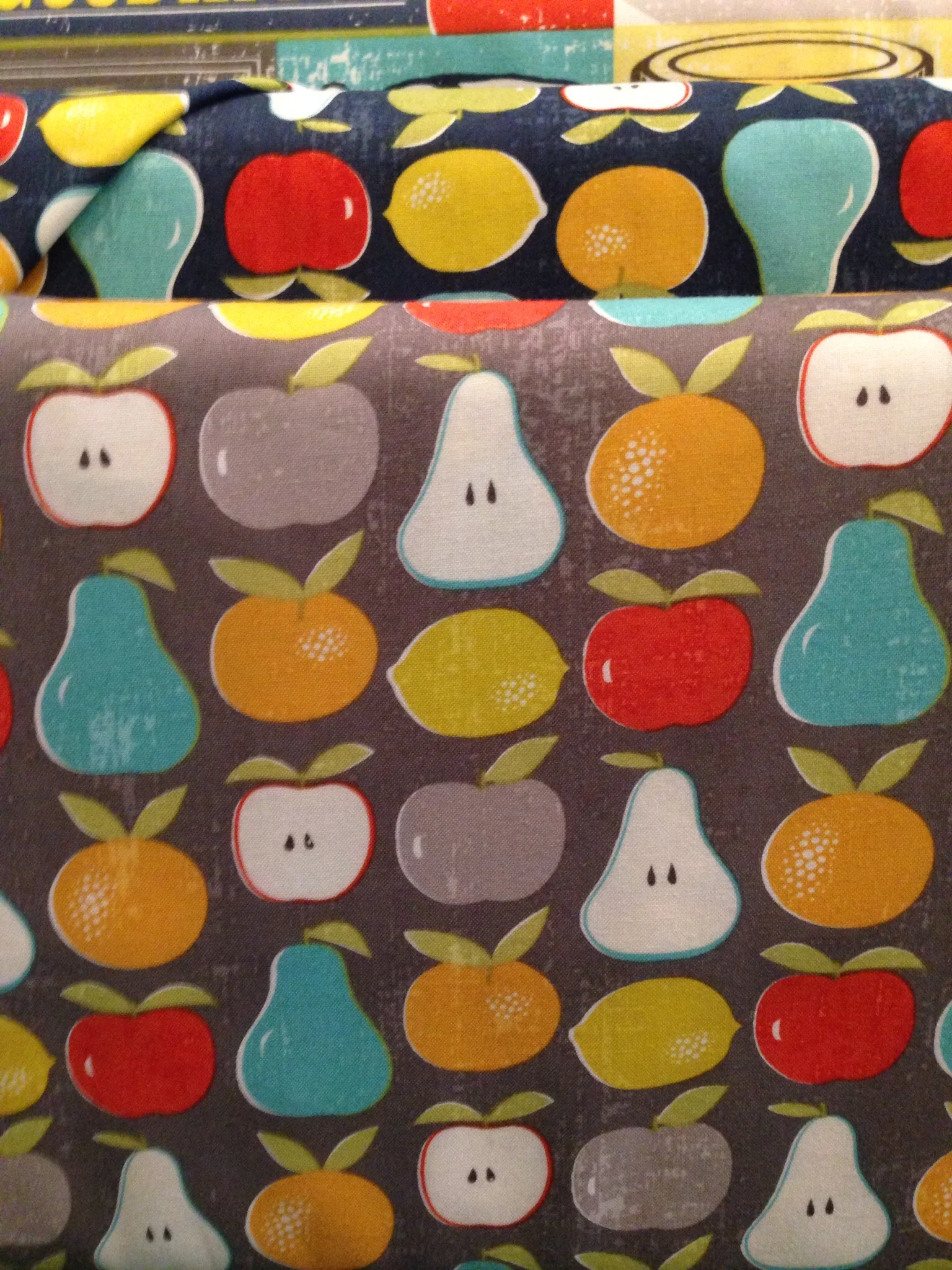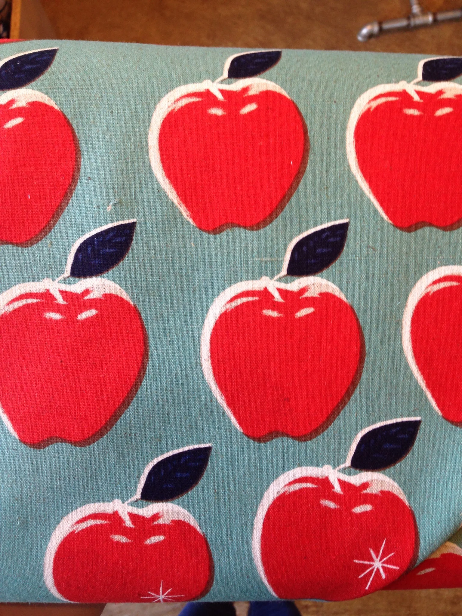 We have this fun apple print in mid-weight and coated cotton in a couple of different color ways. You could use the two colors together to make sweet pie baking apron.