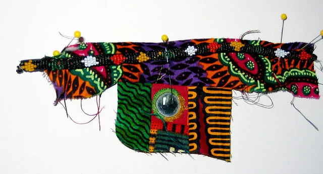 I have a crazy amount of fabric, mostly African wax prints but I collect interesting ethnic textiles from all over. I can have a fabric for years before I use it or sometimes I use it as soon as I get it home! For the exhibit at Guardino Gallery there was a lot of "what happens if I do this"