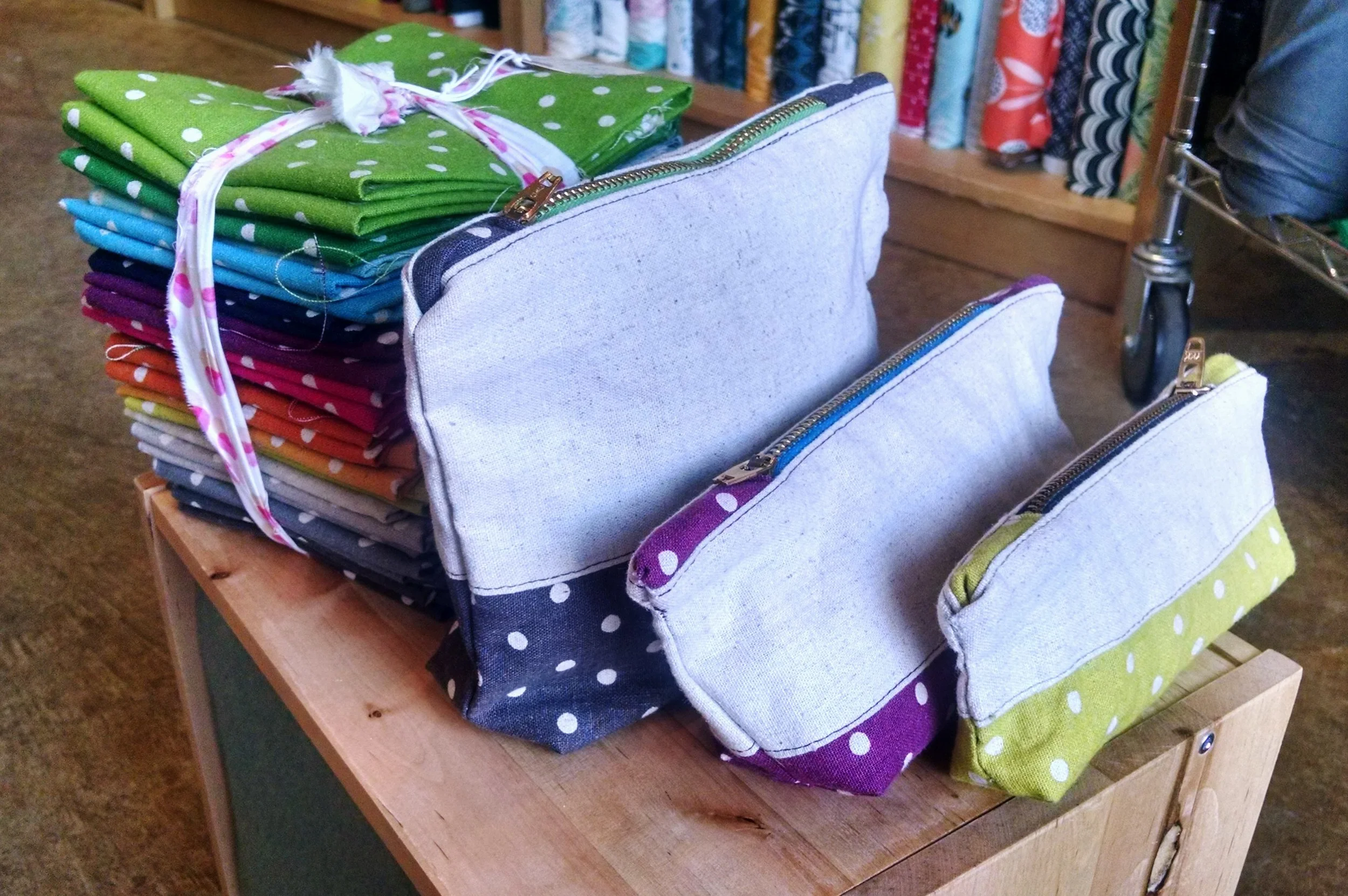 The Color Block Pouches are another great way to help you stay organized. These are great for small notions, make up, and other small items you need to keep in one place. What is great about this pattern is you don't need much fabric at all! So you can either experiment with new fat quarters you find at the store, or old scraps you just can't throw away. Spice them up with our selection of colorful zippers, and maybe embroider on them what you have inside, or just a fun image! The possibilities are endless.