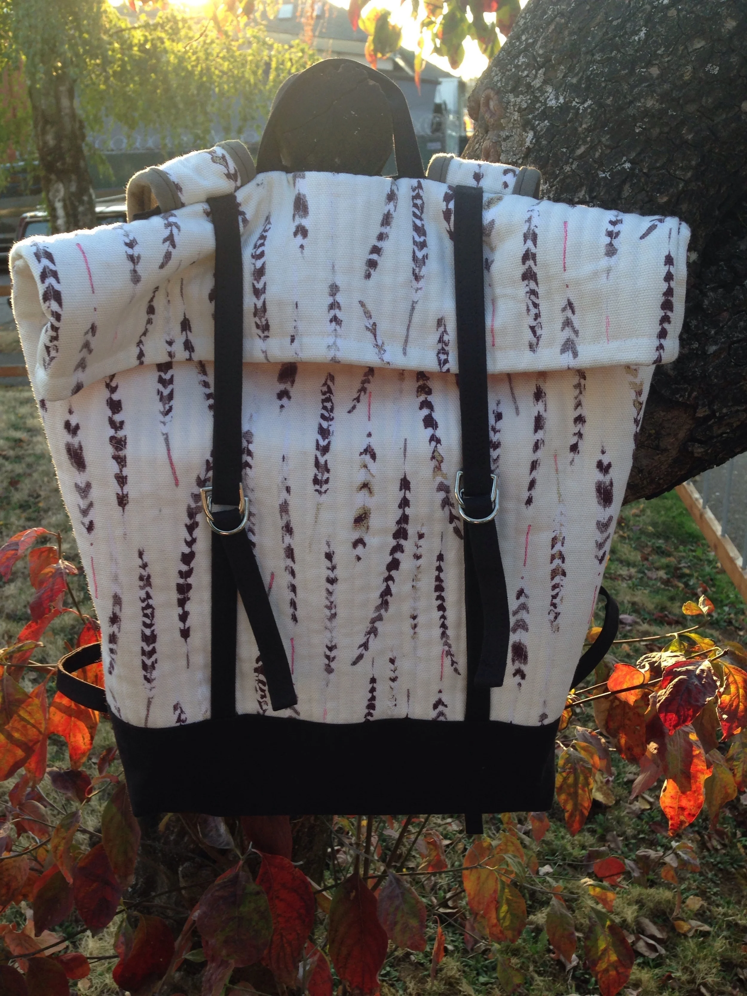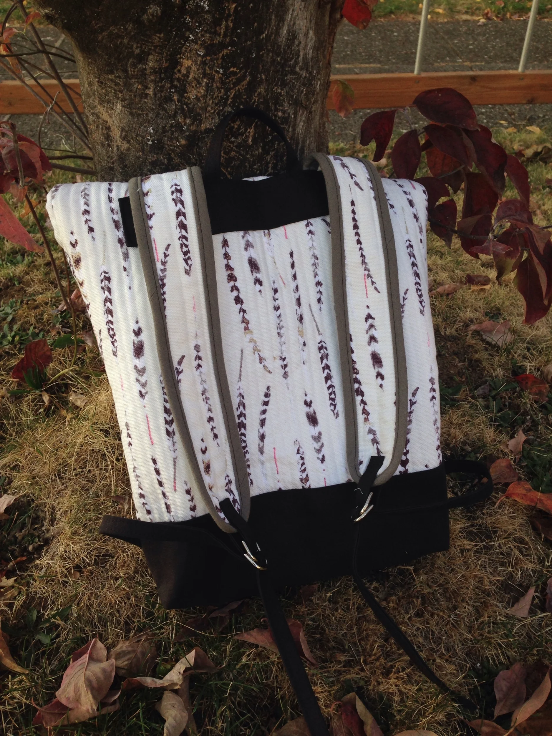 The body of the bag is quilted, which is a look I love. We used a beautiful autumnal printed canvas from Art Gallery that's soft and a dream to quilt with. You could use a lighter weight fabric - a yarn-dyed Essex would make a timeless rucksack. The pattern includes instructions for piecing together the outside of the bag as well, which would be a great way to use up scraps.