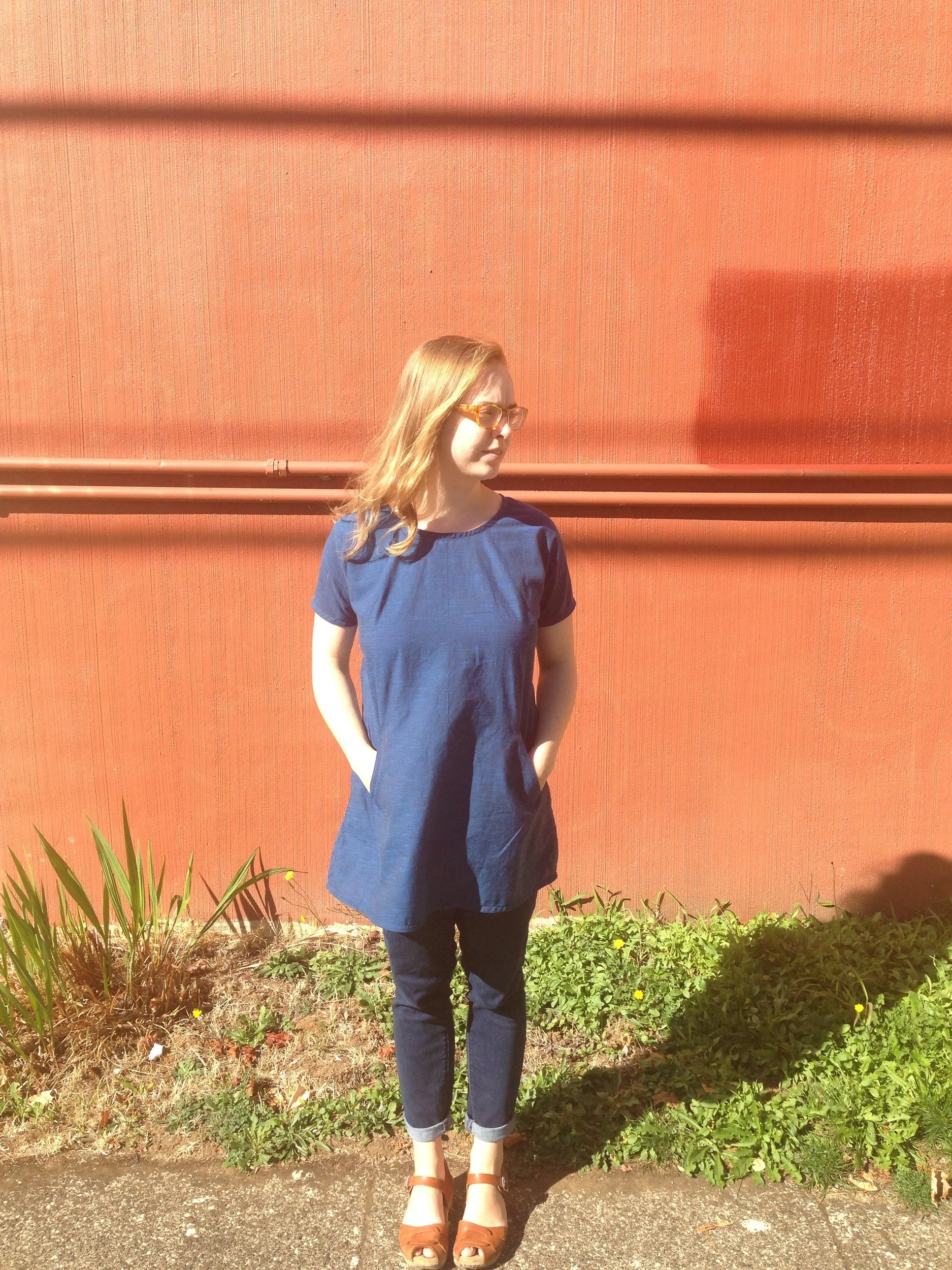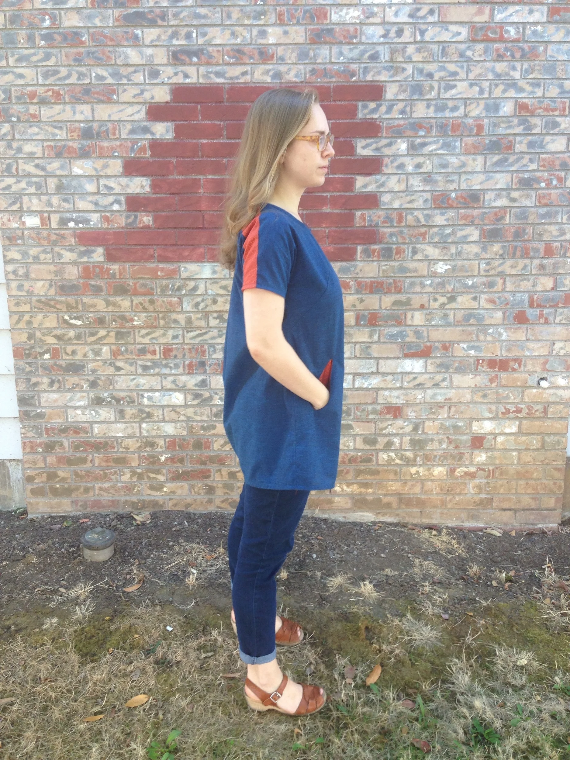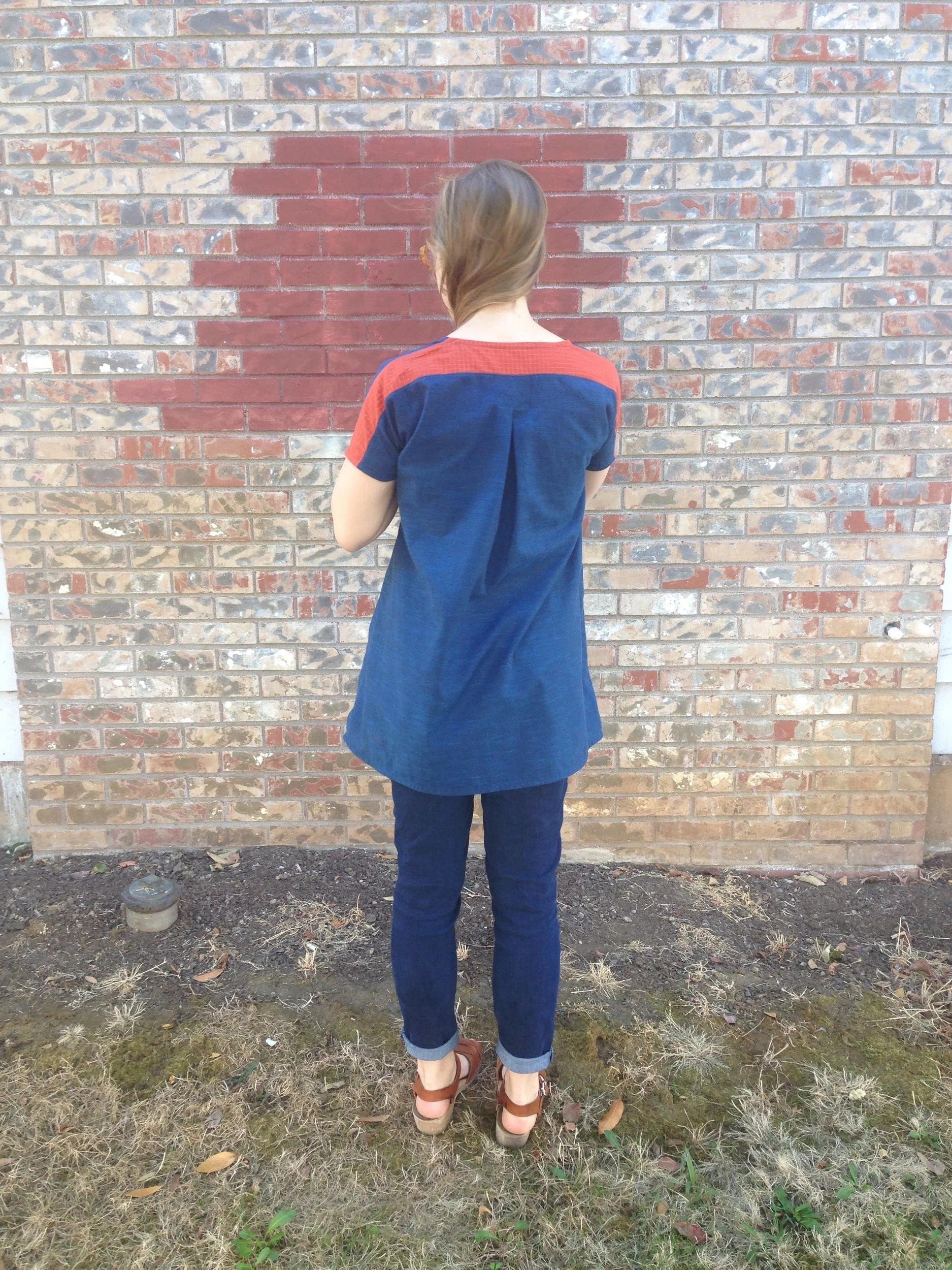 The best part of the Cabin are all of the details: flat felled seams, inverted pleat, fancy weltless pockets, and bias facing and hems. It makes for a very satisfying, professional feeling project. If you're intimidated by taking on any of these new techniques, don't be! The instructions are very thorough. They even include sizing adjustments. I got a little hung up on the pocket, but the tutorial on the Blueprints for Sewing blog cleared everything up. Be sure to take a look at the other tutorials because they include major Cabin "renovations" including adding long sleeves.