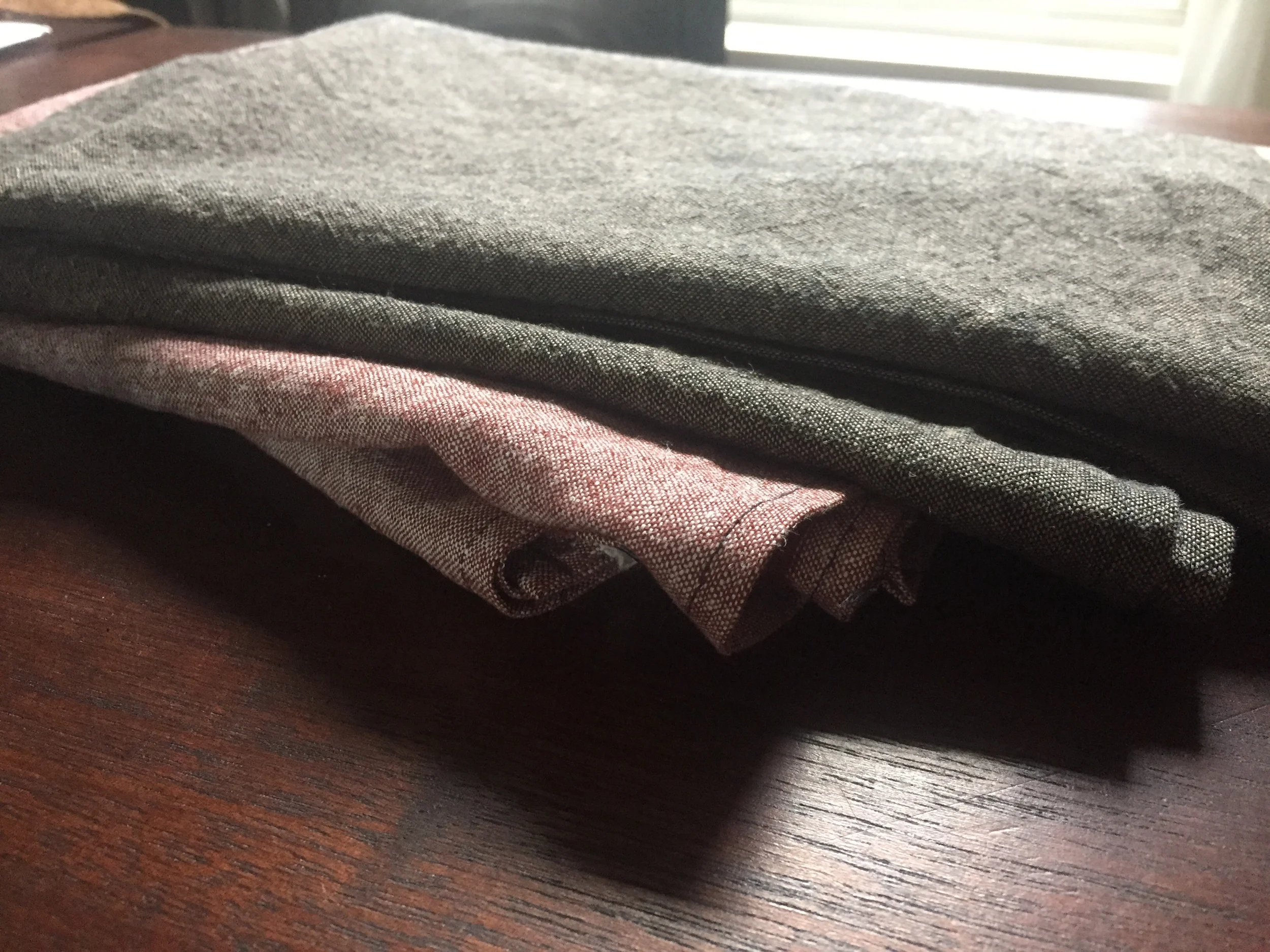 I know we have an incredible amount of dish toweling to choose from in the shop but I couldn't resist sewing a few dish towels with the beautiful Essex from Robert Kaufman. I've used Essex for so many projects and I hope they never stop making it. From curtains to pencil skirts it has been the perfect fabric for me. These dish towels are simple. Grab your iron and press each edge under once and use whatever seem allowance you'd like. I always try to leave the selvedge exposed when I can. You're done! You could always sew in a loop if you like to hang your towel on a hook. These would make a great hostess gift for Thanksgiving! Hope you're well and see you soon at the shop!