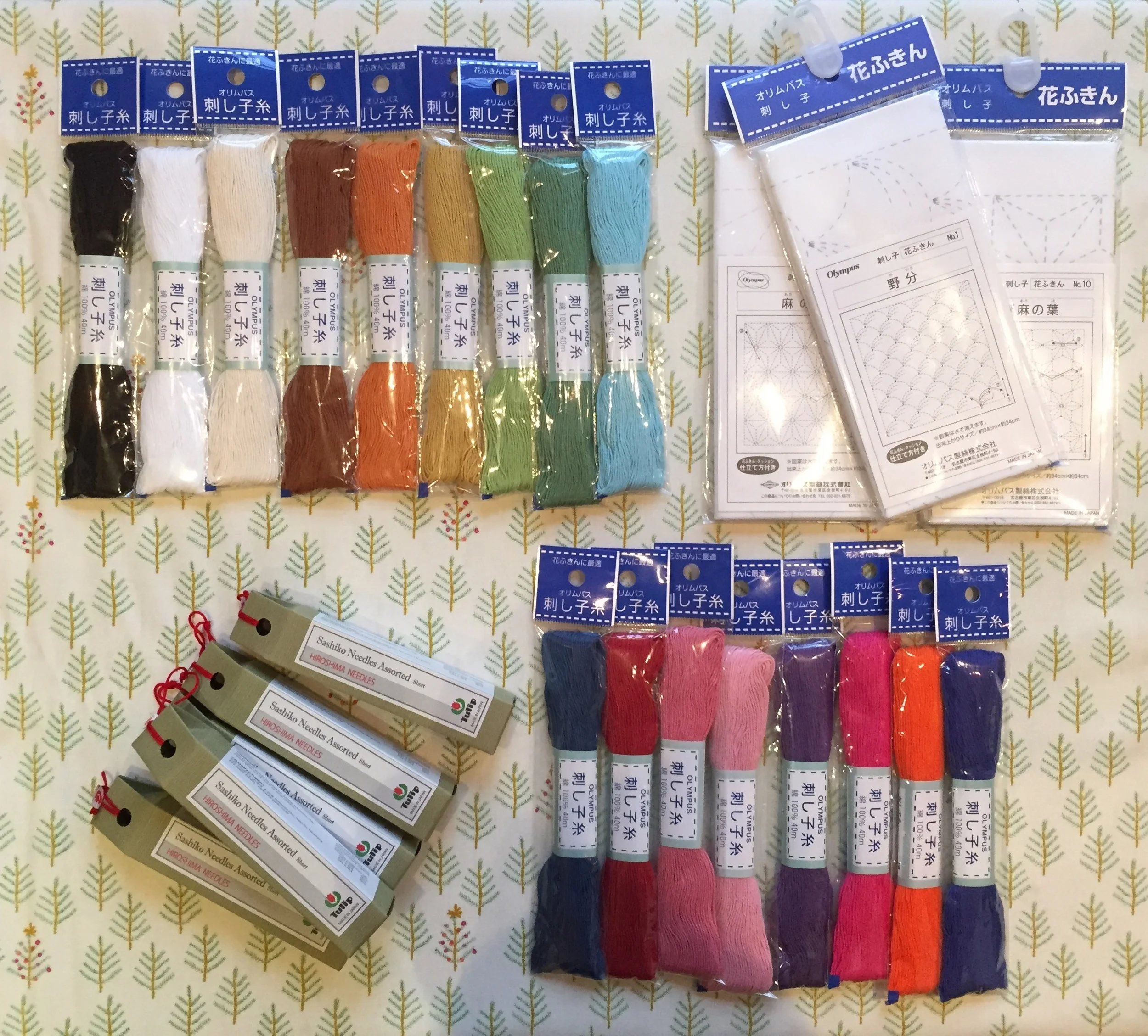 All cotton, made in Japan, sashiko floss with our lovely sashiko specific Tulip brand needles. Throw in a sampler and you have a very nice gift! See you soon at the shop!