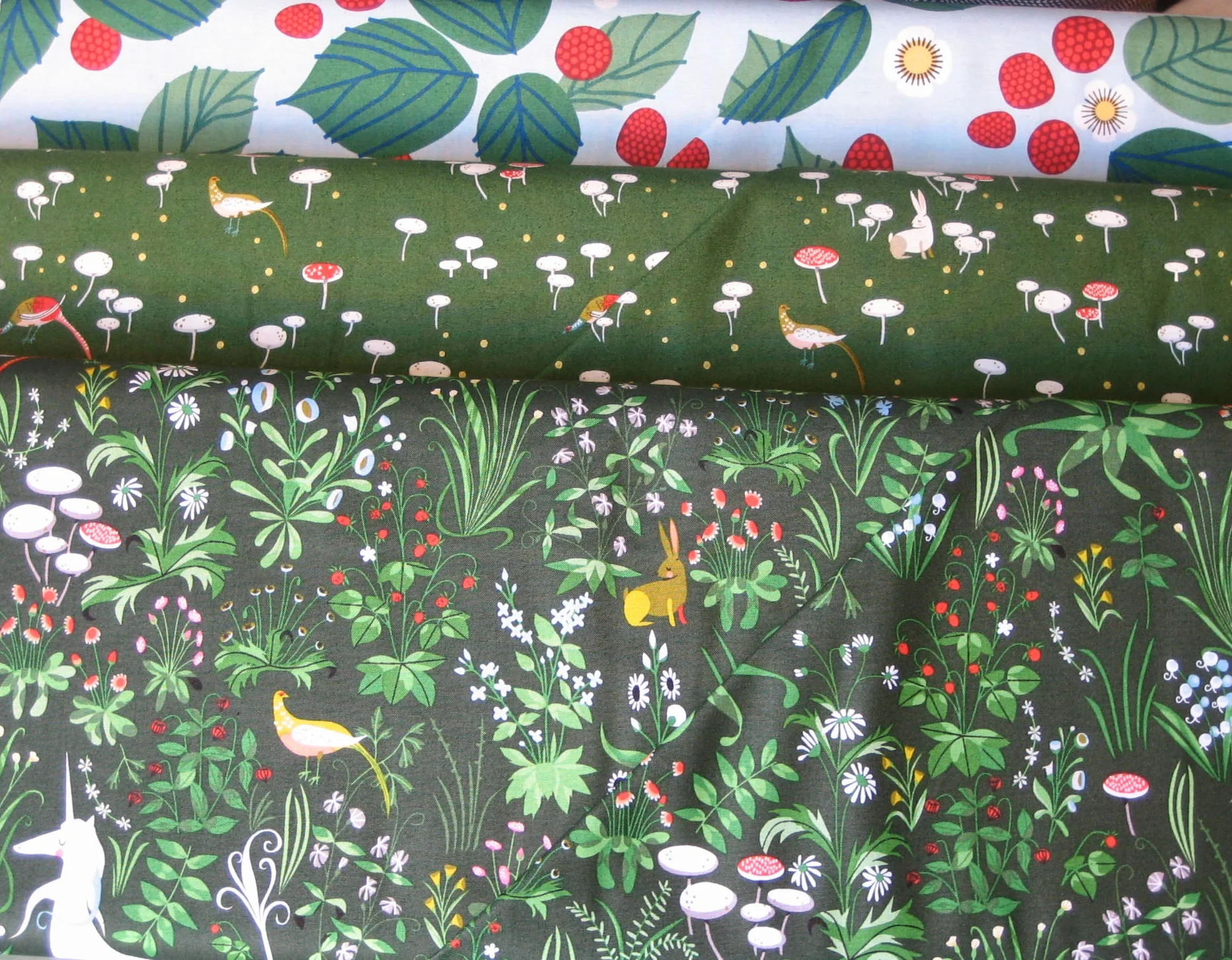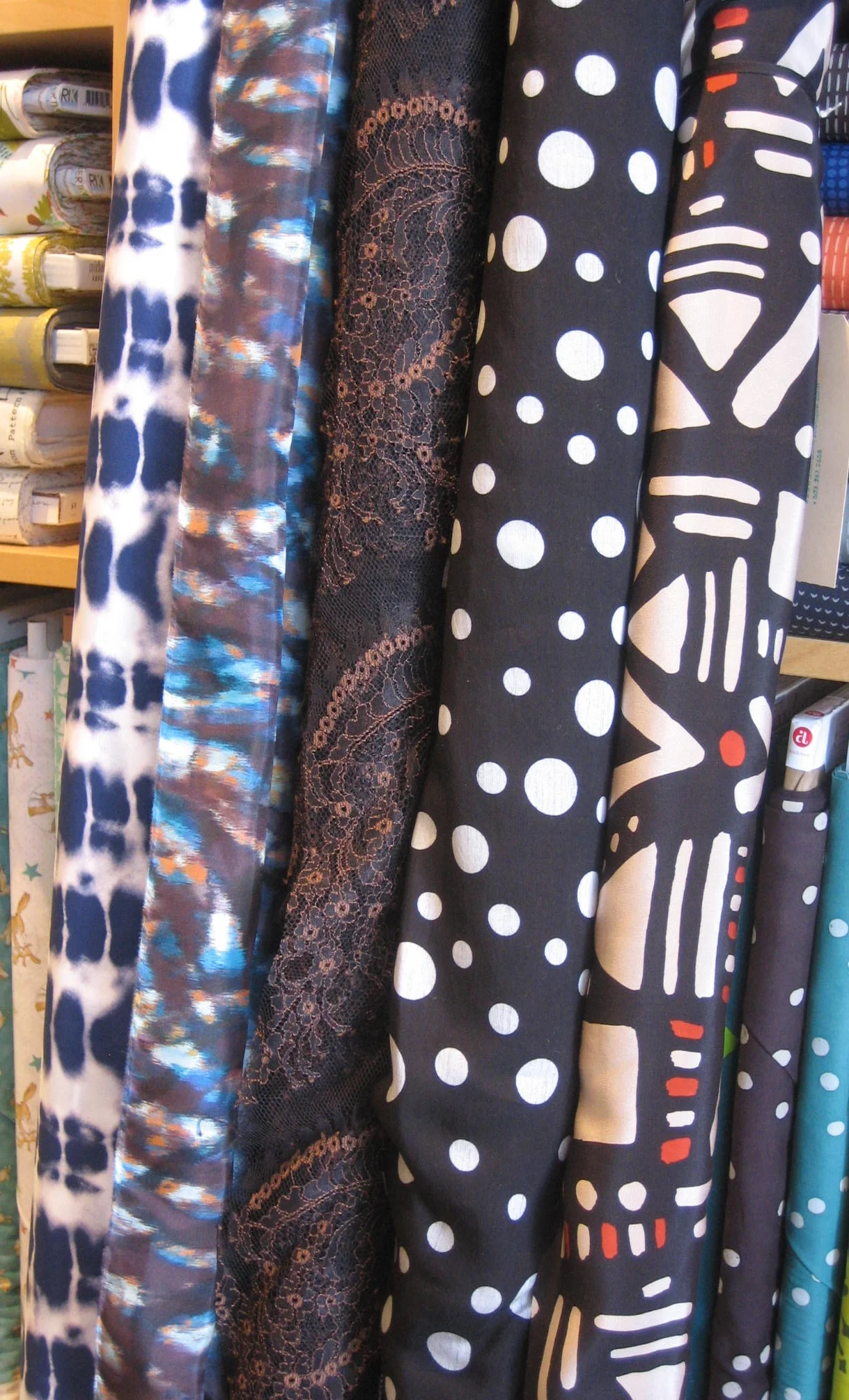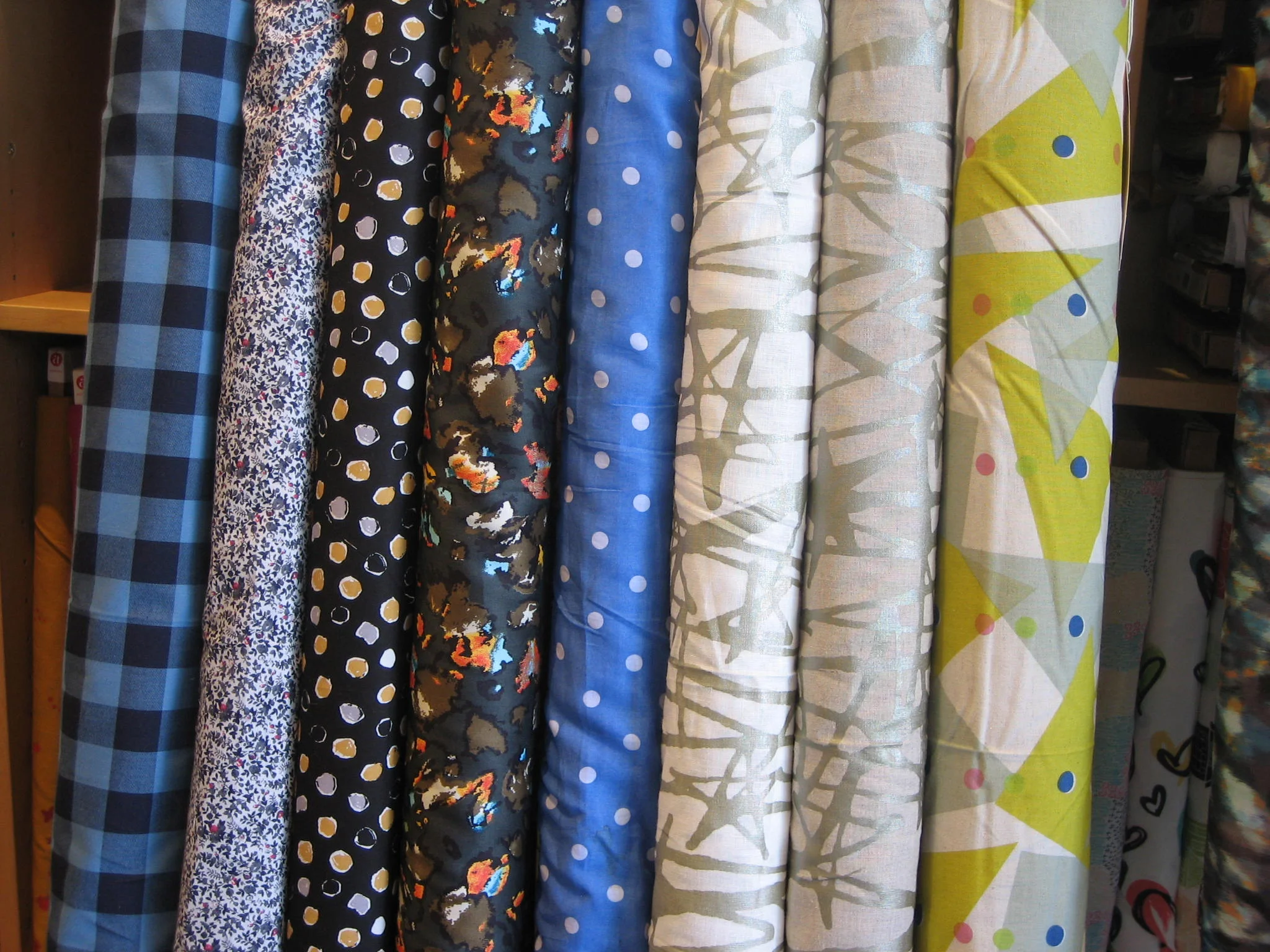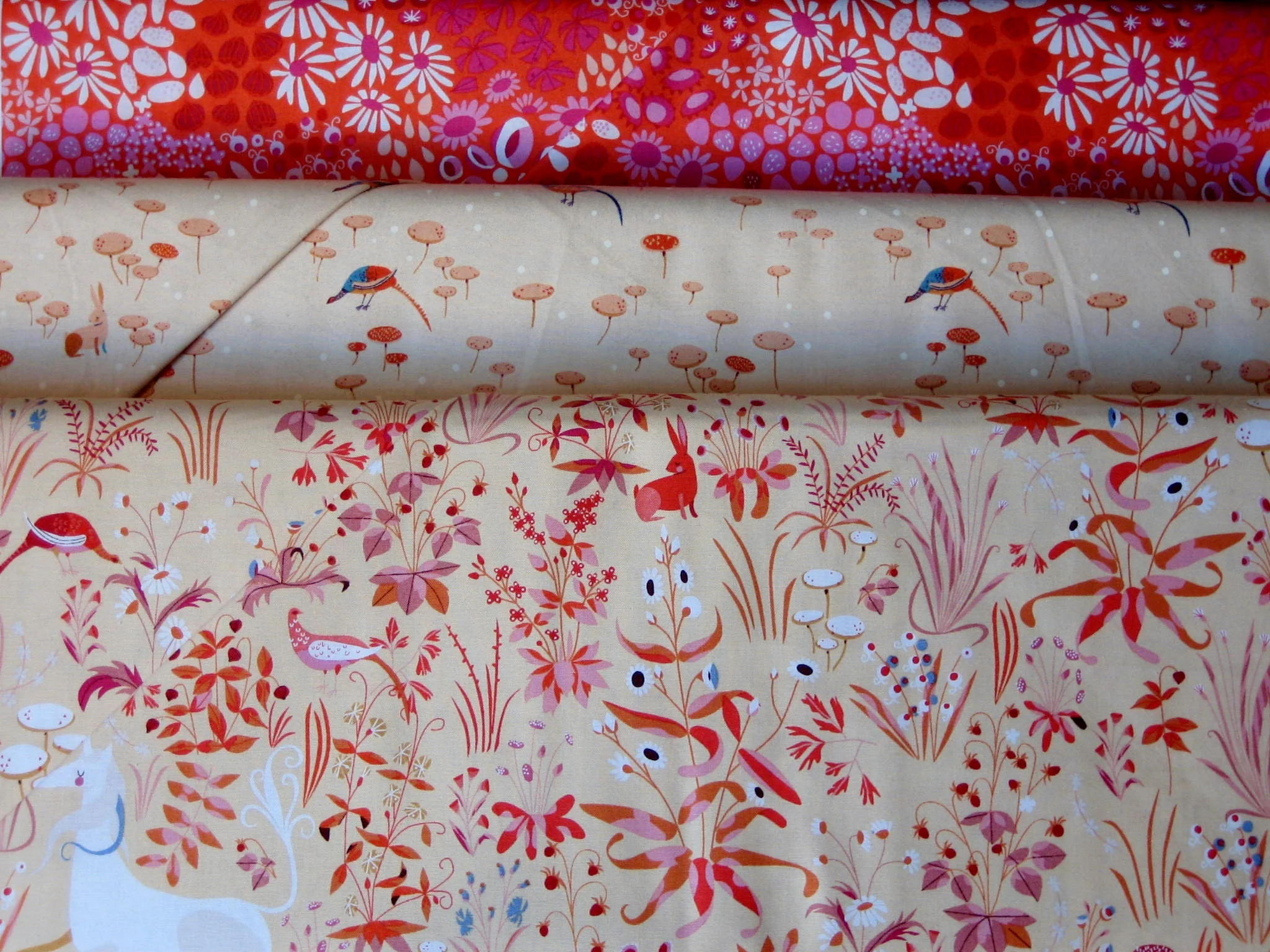 Cute, cute quilting cotton prints, including pieces from Portlander Violet Craft's newest group in the top pic.