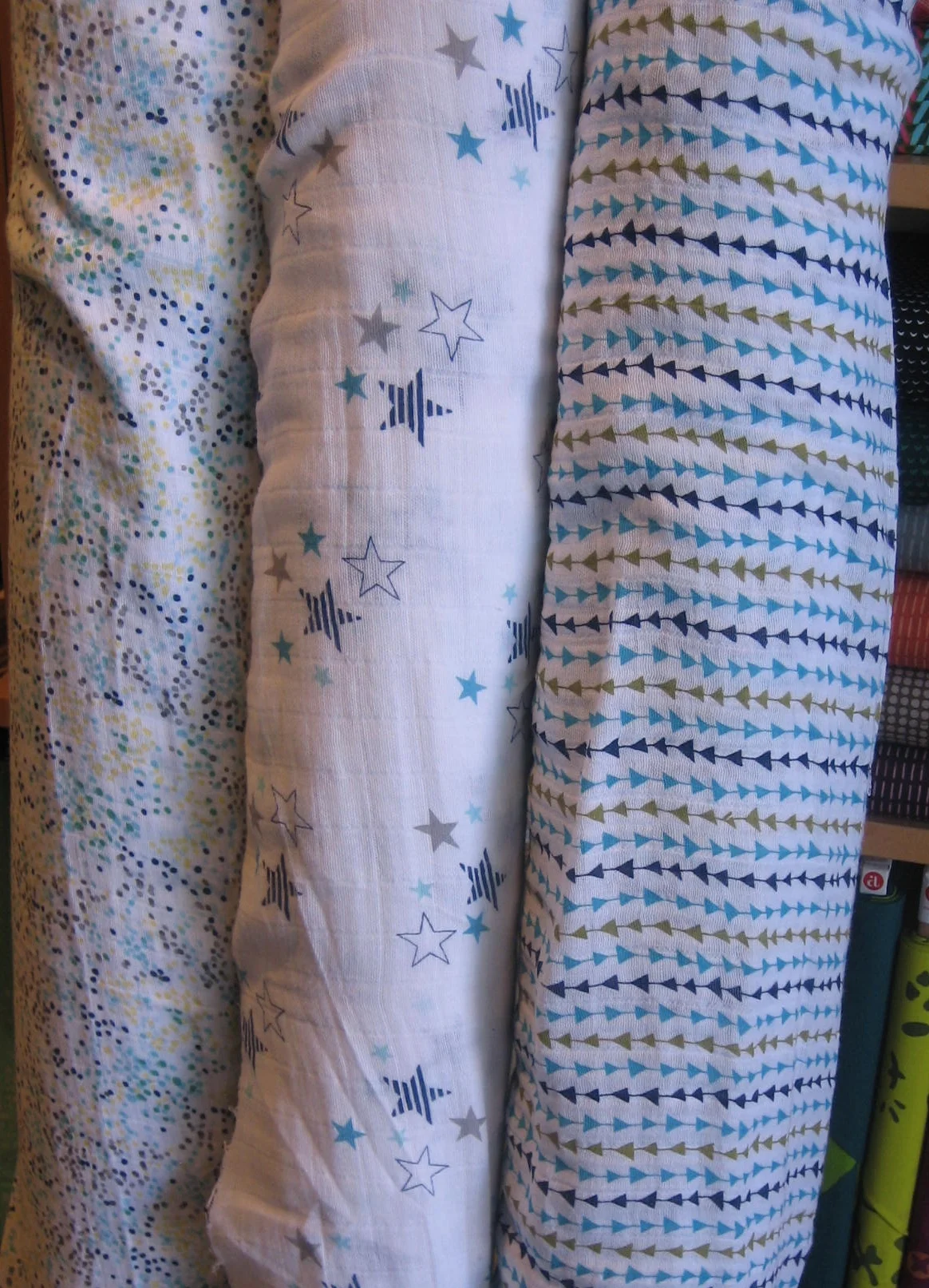 Bright and soft cotton double gauze with a looser weave and lower price than the other double gauze we've been featuring. Perfect for baby swaddling blankets and infinity scarves.