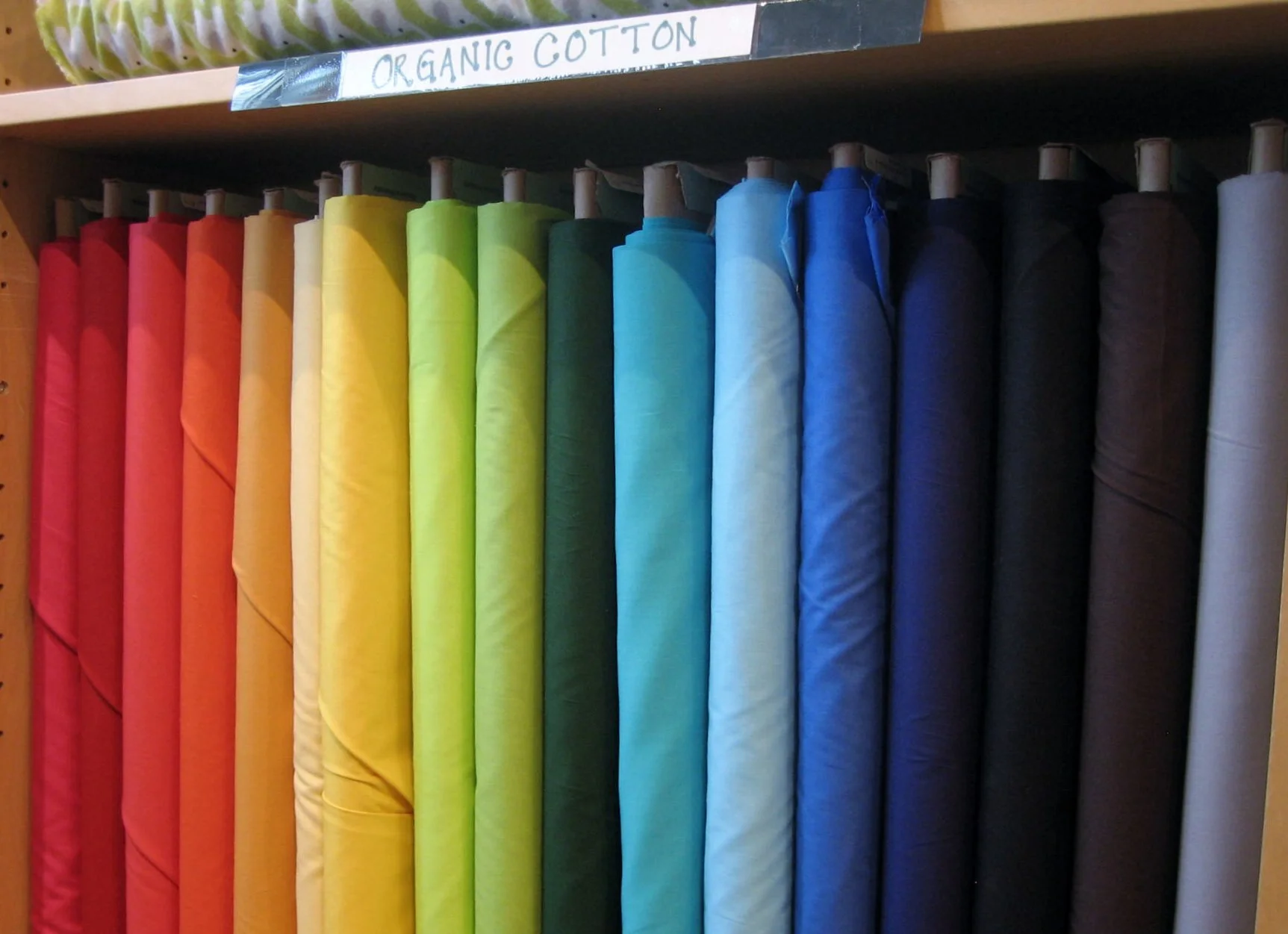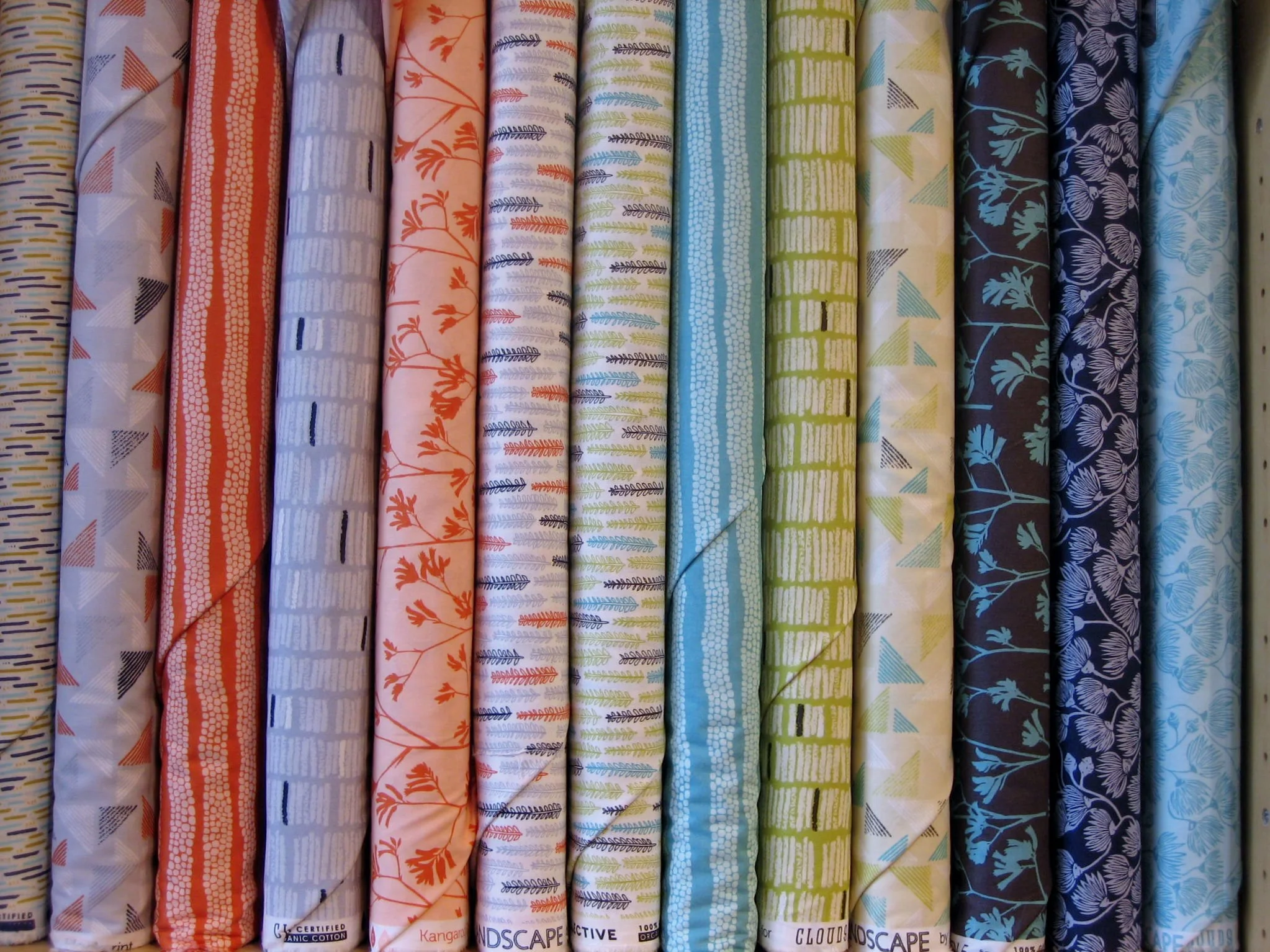 We have been busy, busy, busy opening boxes and shifting things around like crazy to make room for all the new things we've been getting in. One exciting thing I'm happy to share is that we have started to carry organic cotton solids. You've asked for them and we listened. We have a nice rainbow selection of certified organic cotton from Clothworks. Here's a peek: