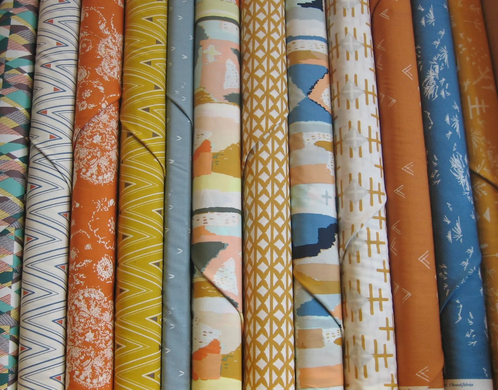 April Rhodes's newest group "Bound" looks so nice with Pat Bravo's "Artisan." All on Art Gallery's signature silky soft cotton. The Art Gallery cotton is so silky and light it works well for apparel as well as quilt and light home dec projects.