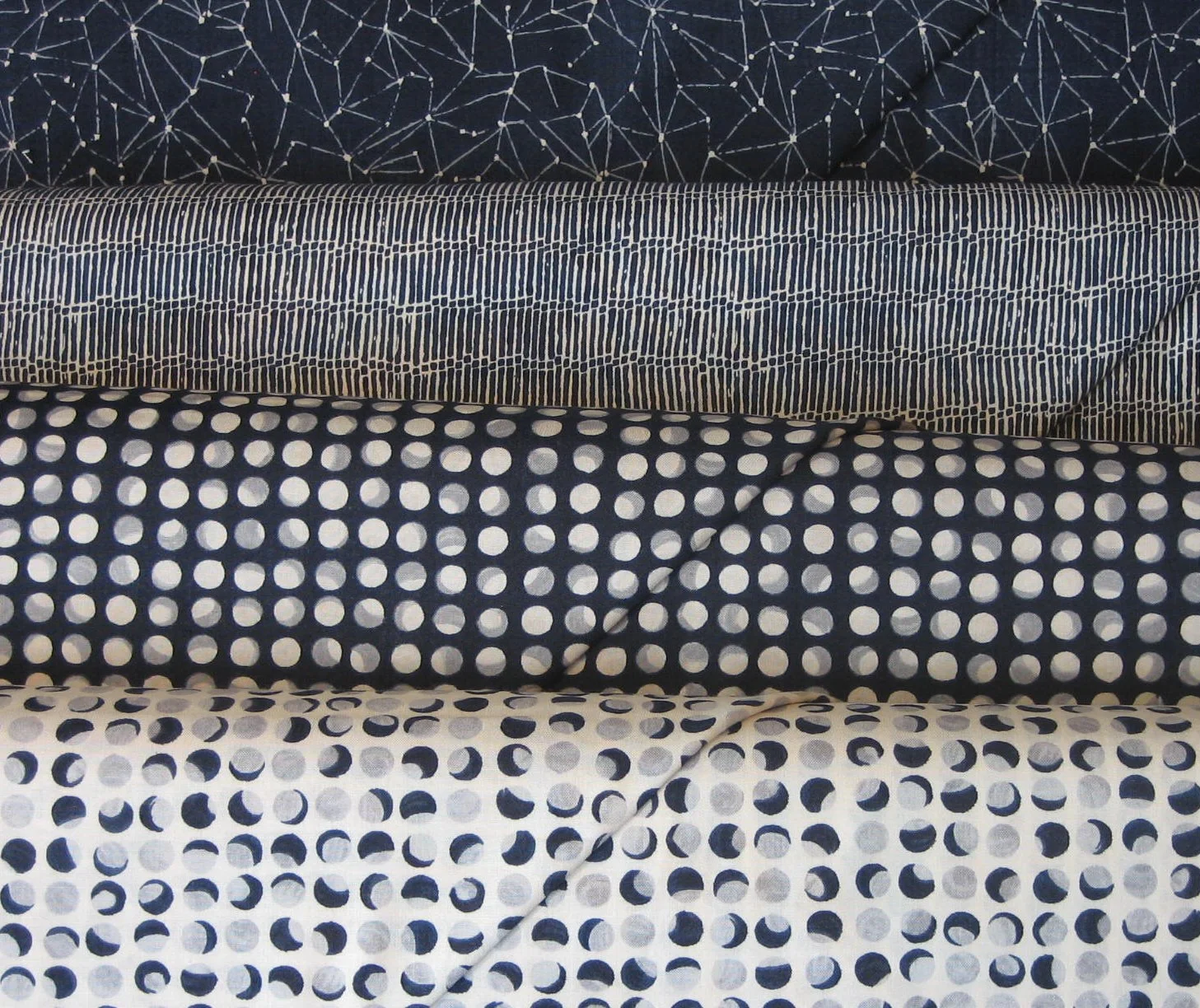 Calm, sophisticated and nocturnal designs by Janet Clare for Moda.