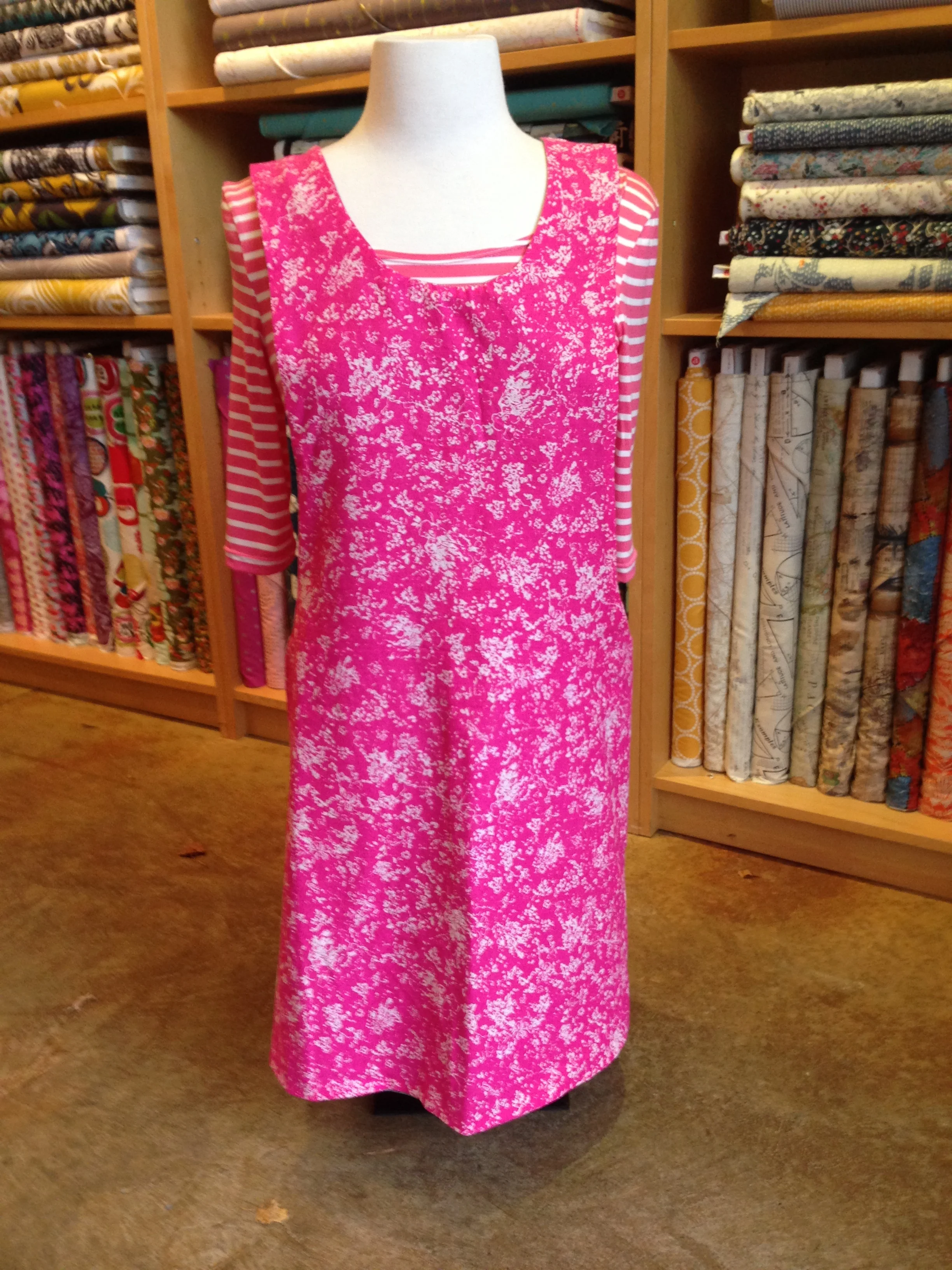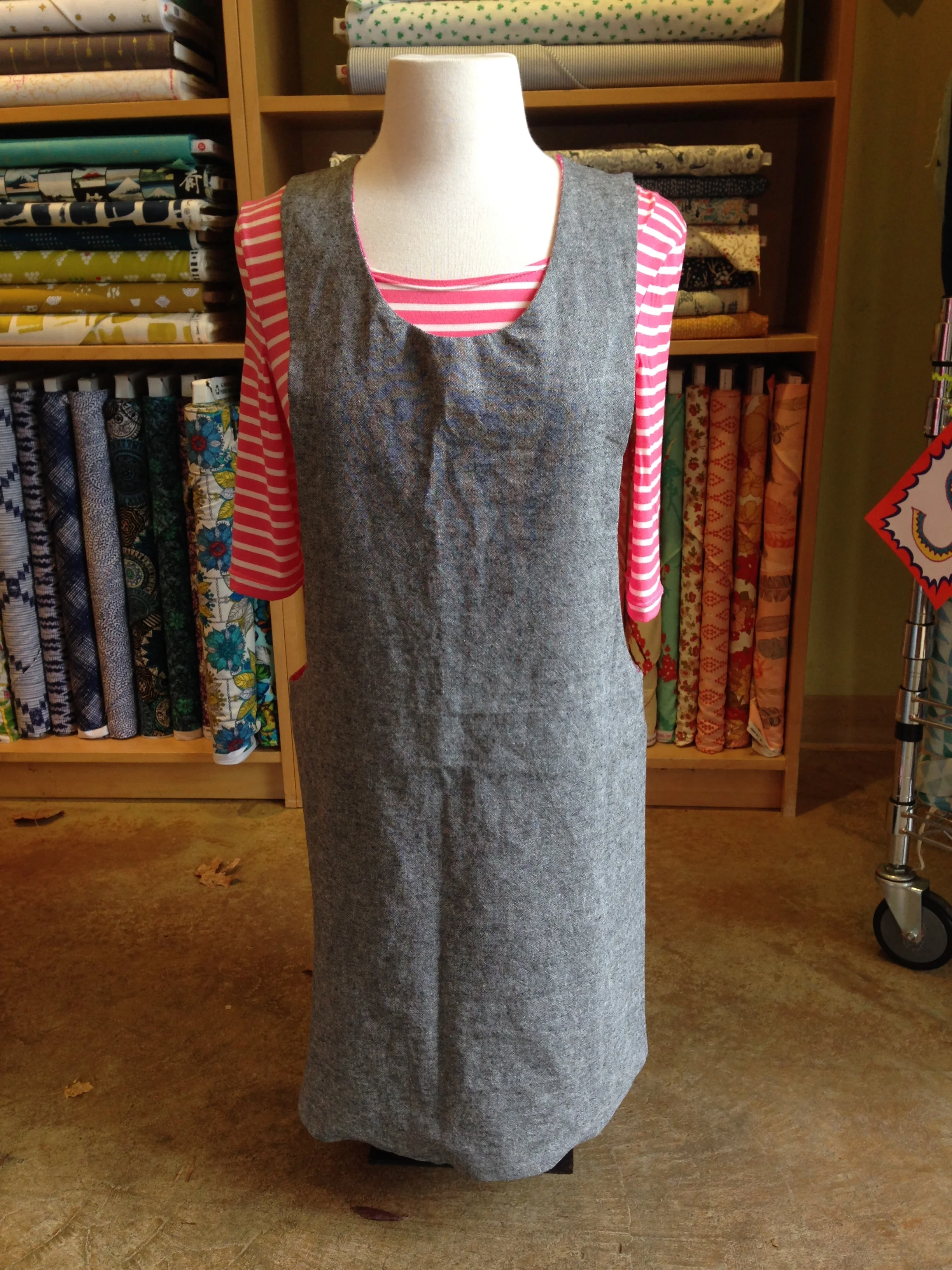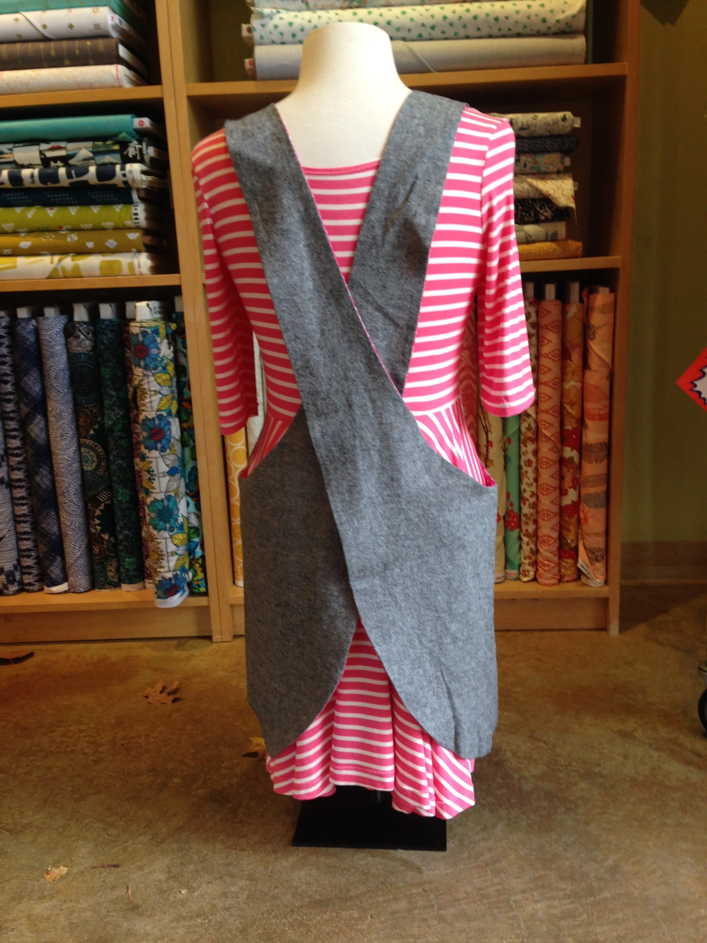 Hannah made a simple and lovely reversible cross back apron using a pattern by Indygo Junction. One side is a classic Essex yarn-dyed cotton/linen blend, and the other side is a surprising splash of hot pink lawn.