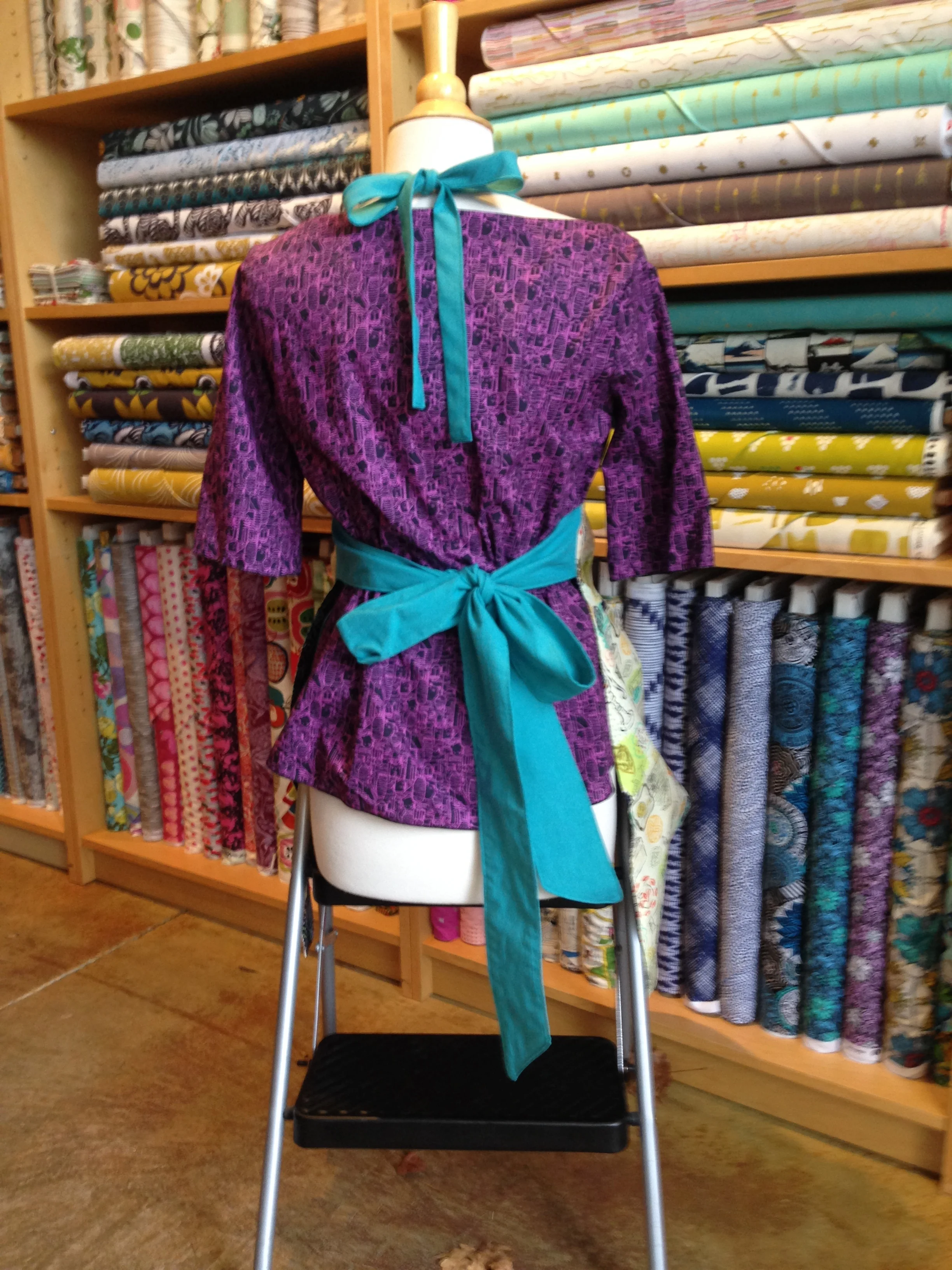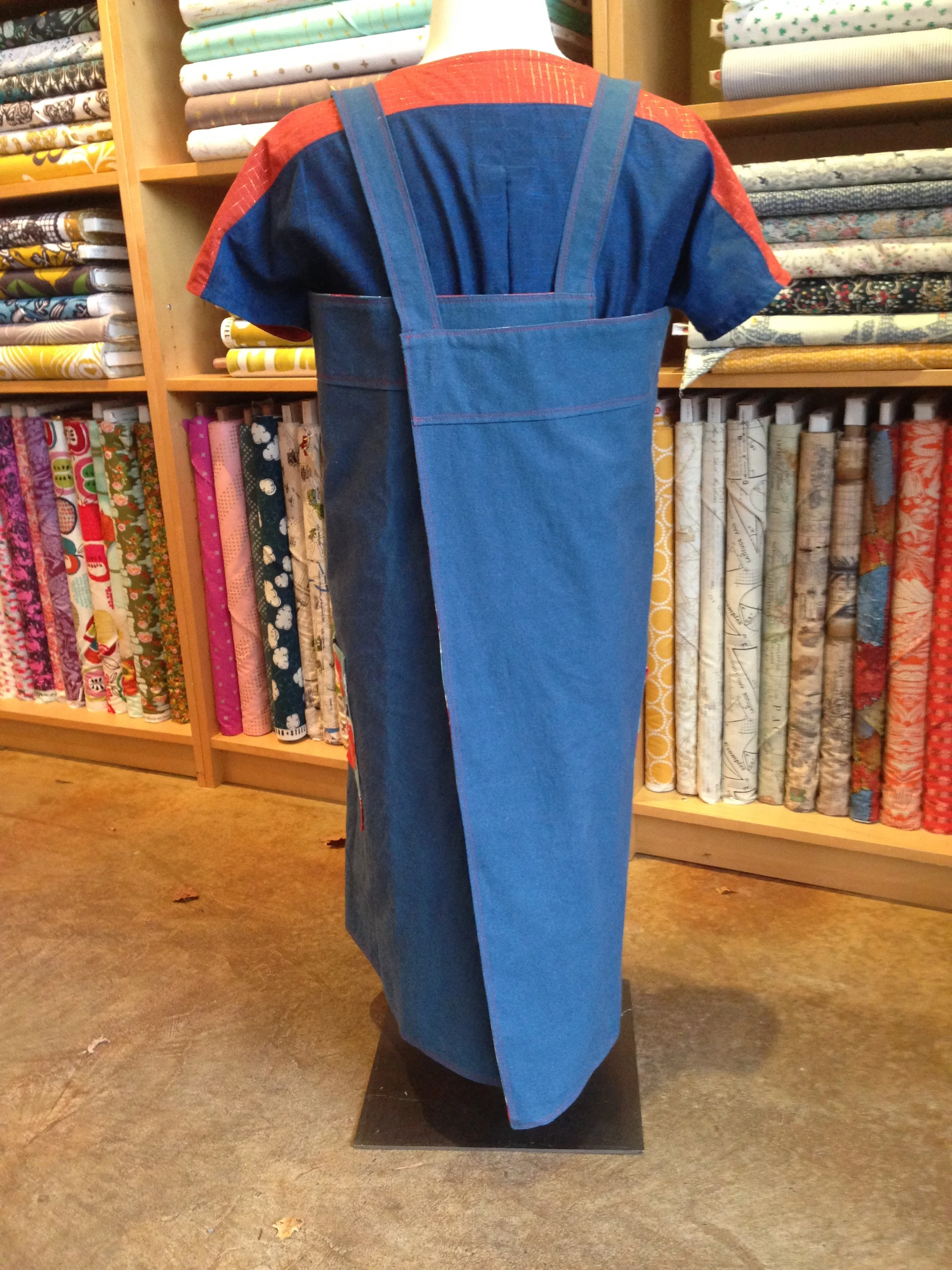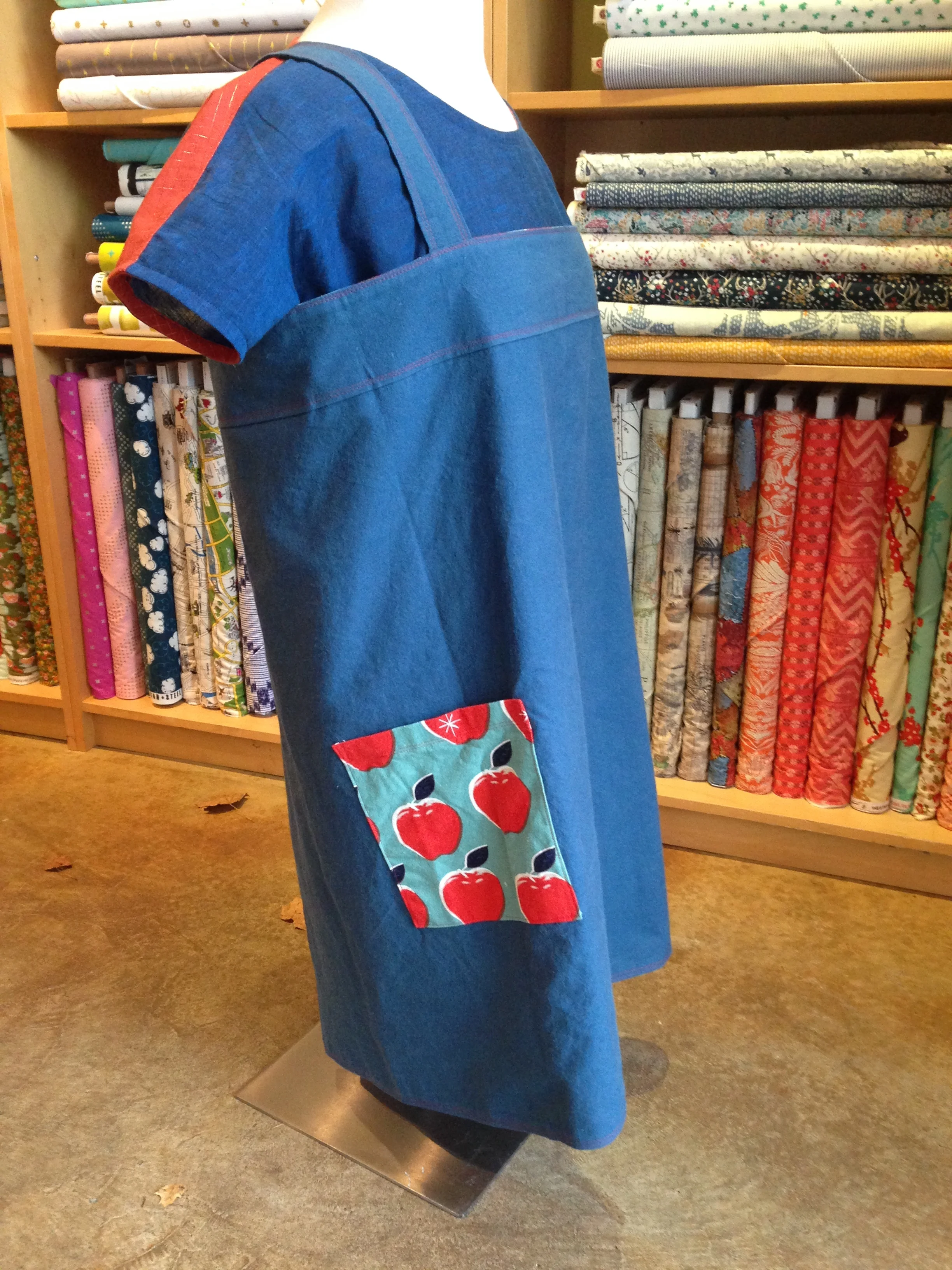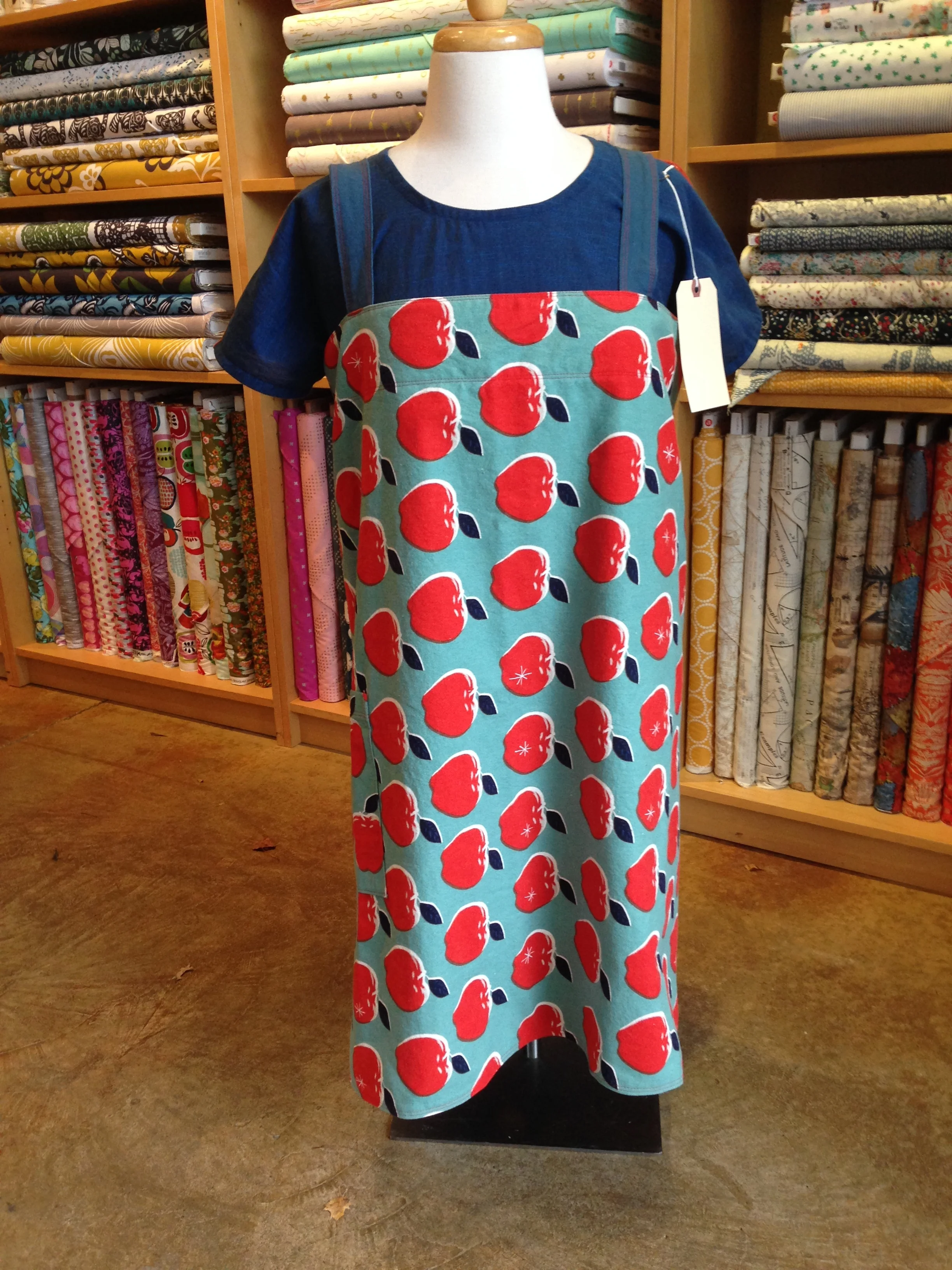 I wanted a smock type apron just as good for making a mess with paint as it is for cooking dinner. The Origami Apron by Indygo Junction was perfect. I made it in cotton/linen blends. The apples are by Cotton + Steel, and the blue is a lovey and hefty Mochi solid.