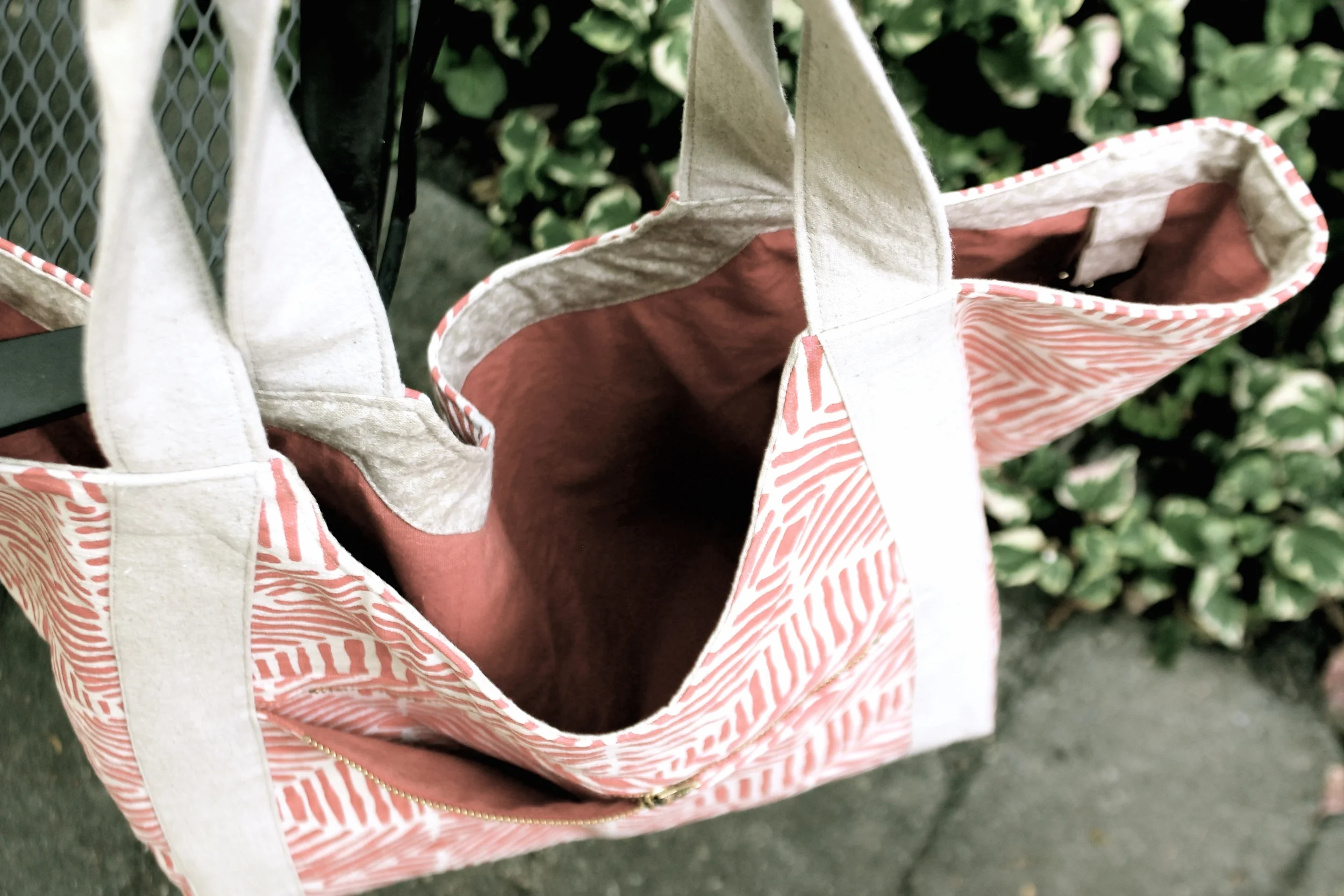 The pattern instructions and pictures were thorough, although I would recommend perhaps an 1/8 yd more of interfacing than the pattern suggests. The pattern’s current interfacing requirement was just short on allowing me to interface the bag facing. This is the first time that I’ve made a tote bag from a pattern, so really everything was an experiment. I used Stacey Shape flex as the interfacing. I liked the result although the finished product was a much softer bag. If you prefer more structure, you’ll definitely want an interfacing that’s less flimsy. The pattern’s main fabric requirements will also give you a lot of extra scraps. You can choose to either cut back on your yardage a bit (depends on your fabric width) or get creative and use your scraps for some interior pockets, fun appliqués, or even your next quilting project! I also added some extra length to the handles as a personal preference. Whether or not you choose fun embellishments like a key chain or a zippered pocket, this tote will happily accompany you wherever your day takes you be that a beach vacation or trip to the market!