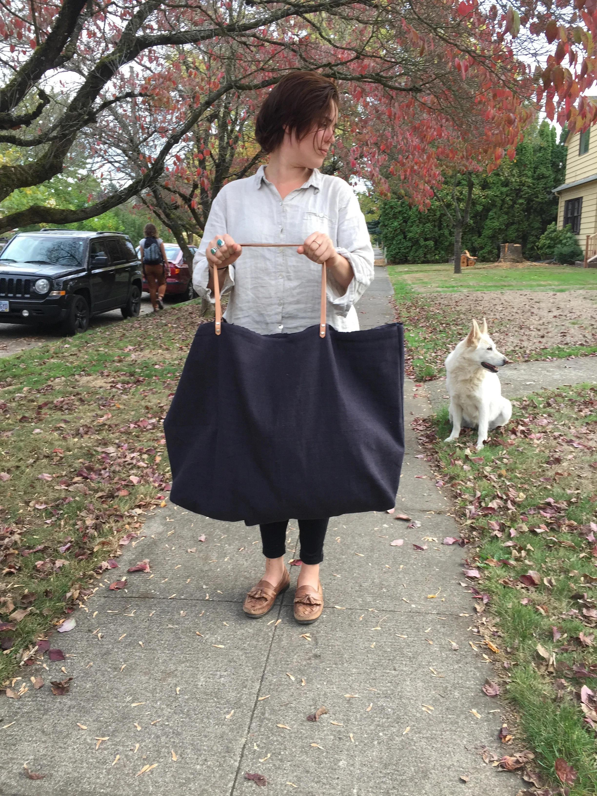 Stop in the shop soon! We have new leather straps with rivets. The rivets simply screw together and in minutes your bag looks classier than ever! Above is a bag I made inspired by those ridiculously large blue IKEA bags that we all use for something. I chose to use one of our lovely handloomed organic cotton's from India. Stop in soon!