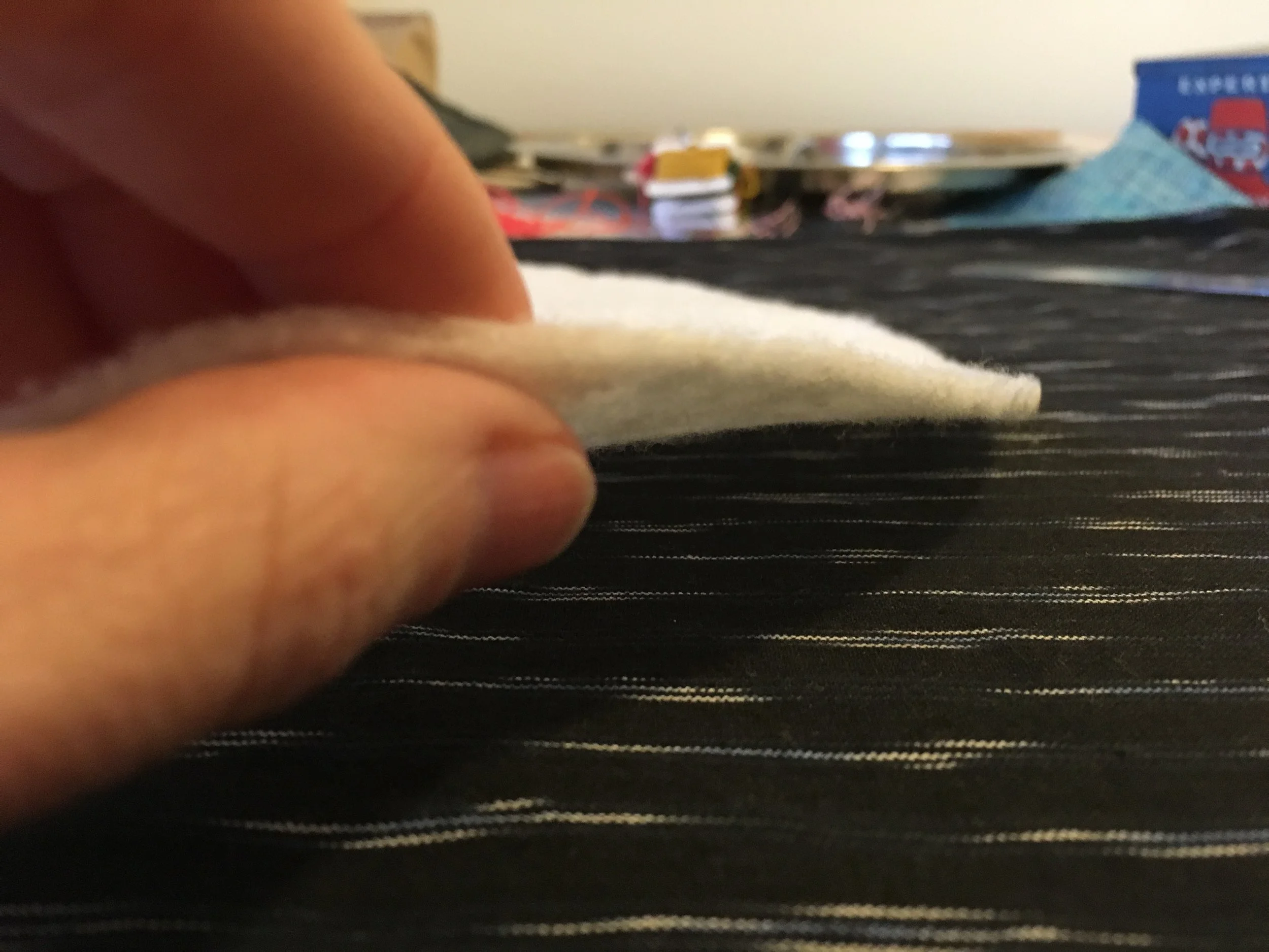 Then cut three pieces of batting the same size as marked circles. Since the selvage edge was left open, you can easily place the three circles of batting in-between the layers and line them up under the marked circles.