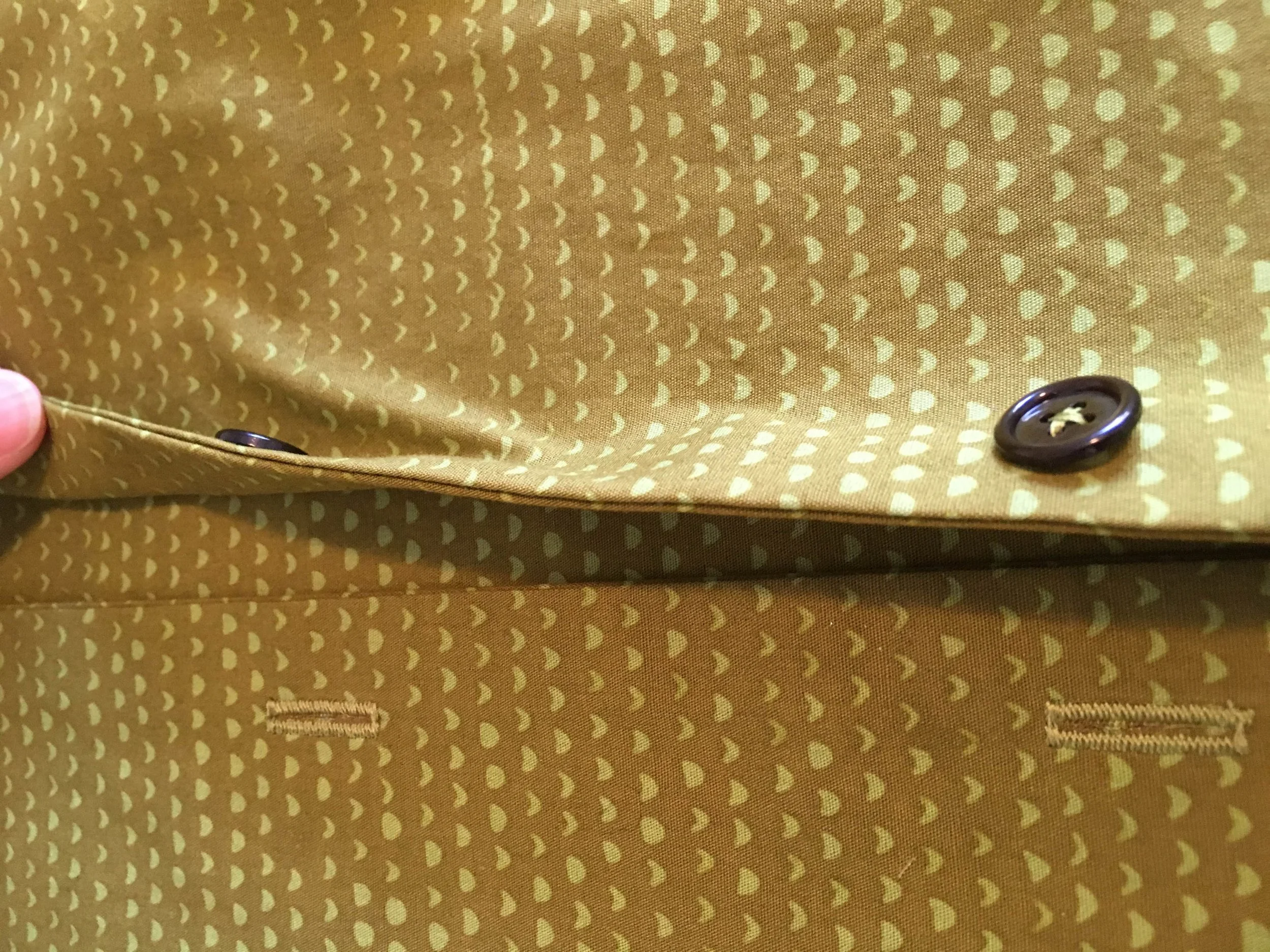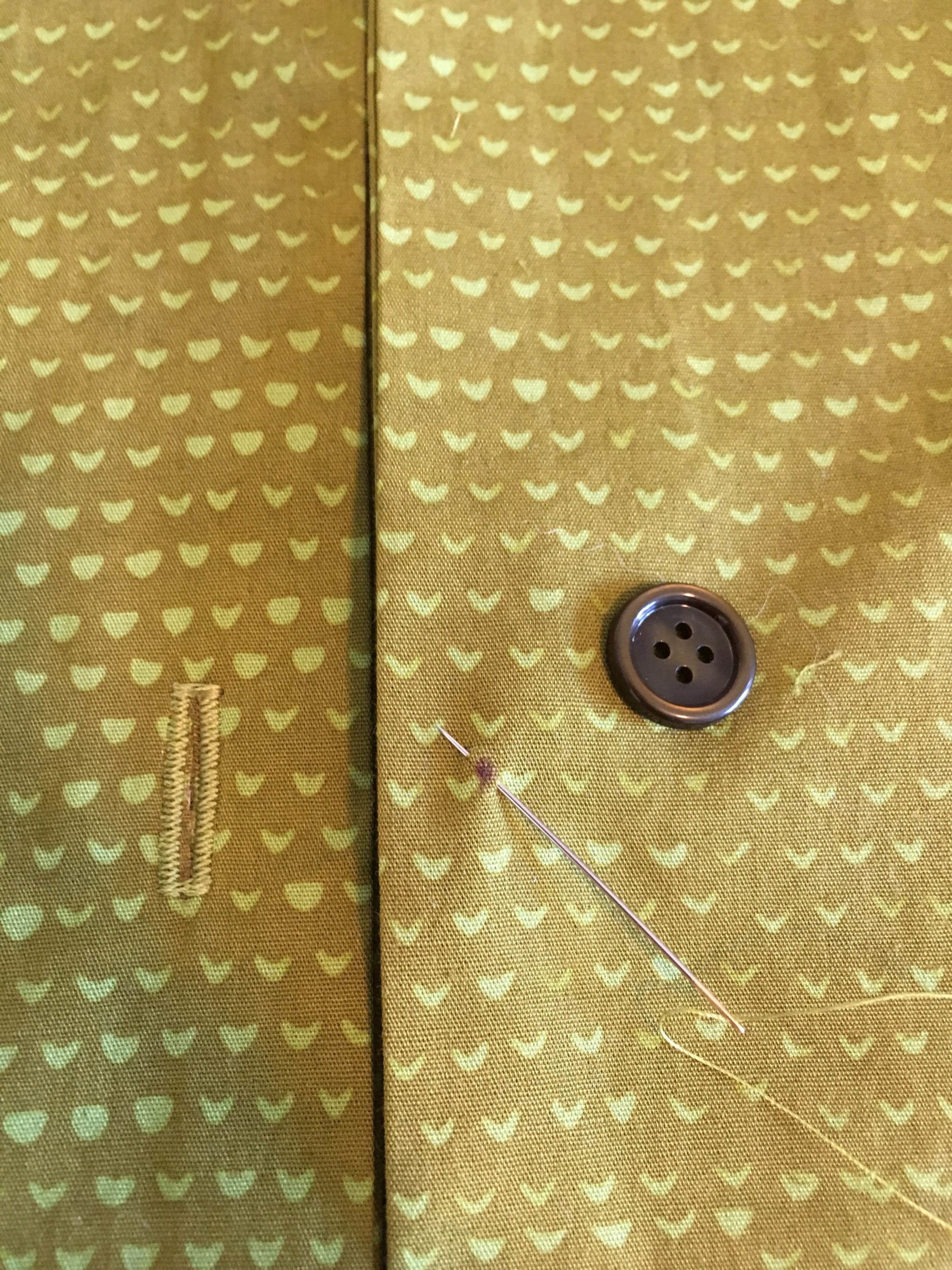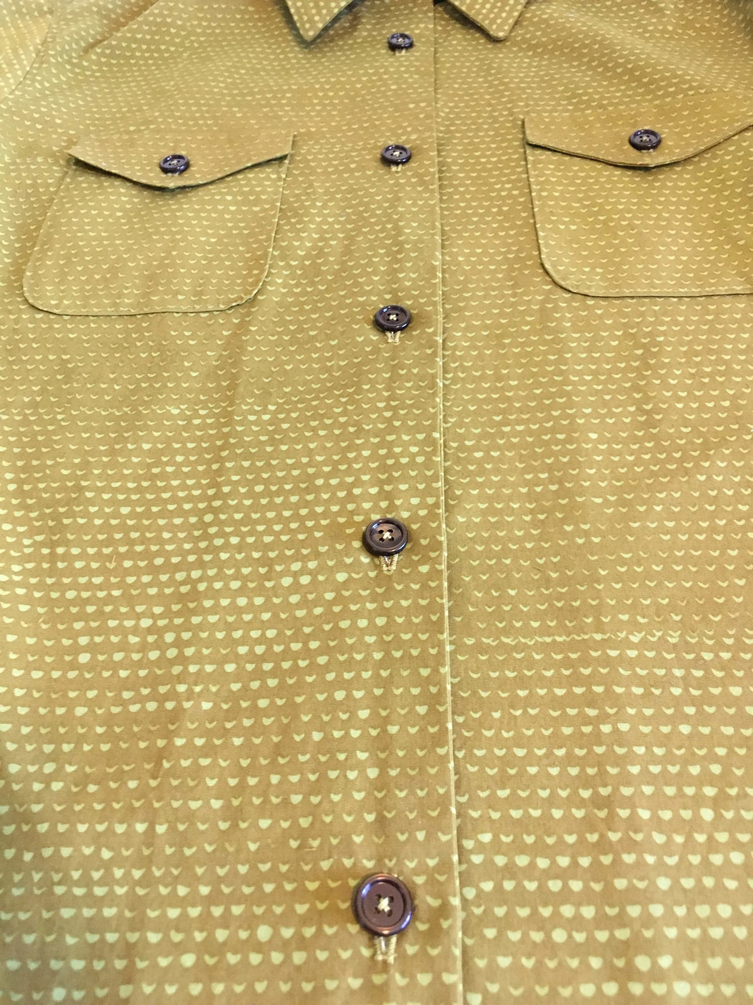 And there you go! Perfectly matched up buttons and holes! The difference between my way and the way of most patterns out there is that I make my markings after I sew the garment. I am not a perfect sewer and my seam allowances are not always exactly what is required. This is why I love doing buttons this way. I hope all this makes sense. If you have a question feel free to ask it in the comments. Happy button sewing everyone!