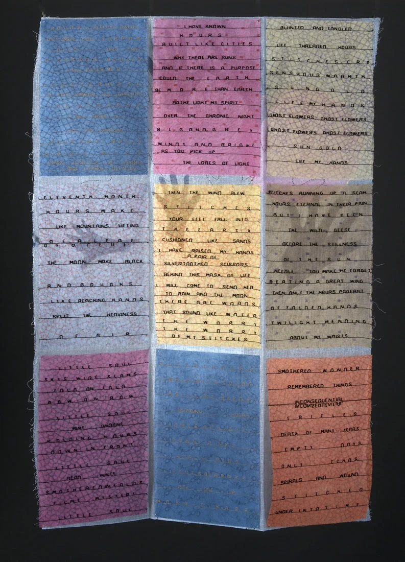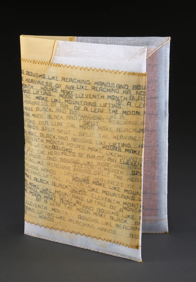 From the artist, Anne Greenwood: "Tapestry of Hours is an artists book inspired by the life and work of the late Oregon poet and seamstress, Hazel Hall. In this work I have republished Hall's Needlework poems from Curtains 1921 and created a limited edition textiles book with hand-stitched embroidery and printing. "