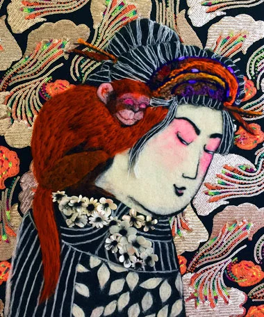 Stacy Polson’s felted work often gives the impression that one is viewing an illustration from a dramatically charged Japanese folk tale. Needle-felting is the process of of interlocking fibers by stabbing them repeatedly with a barbed needle, allowing her to paint or sculpt her “wool paintings”.