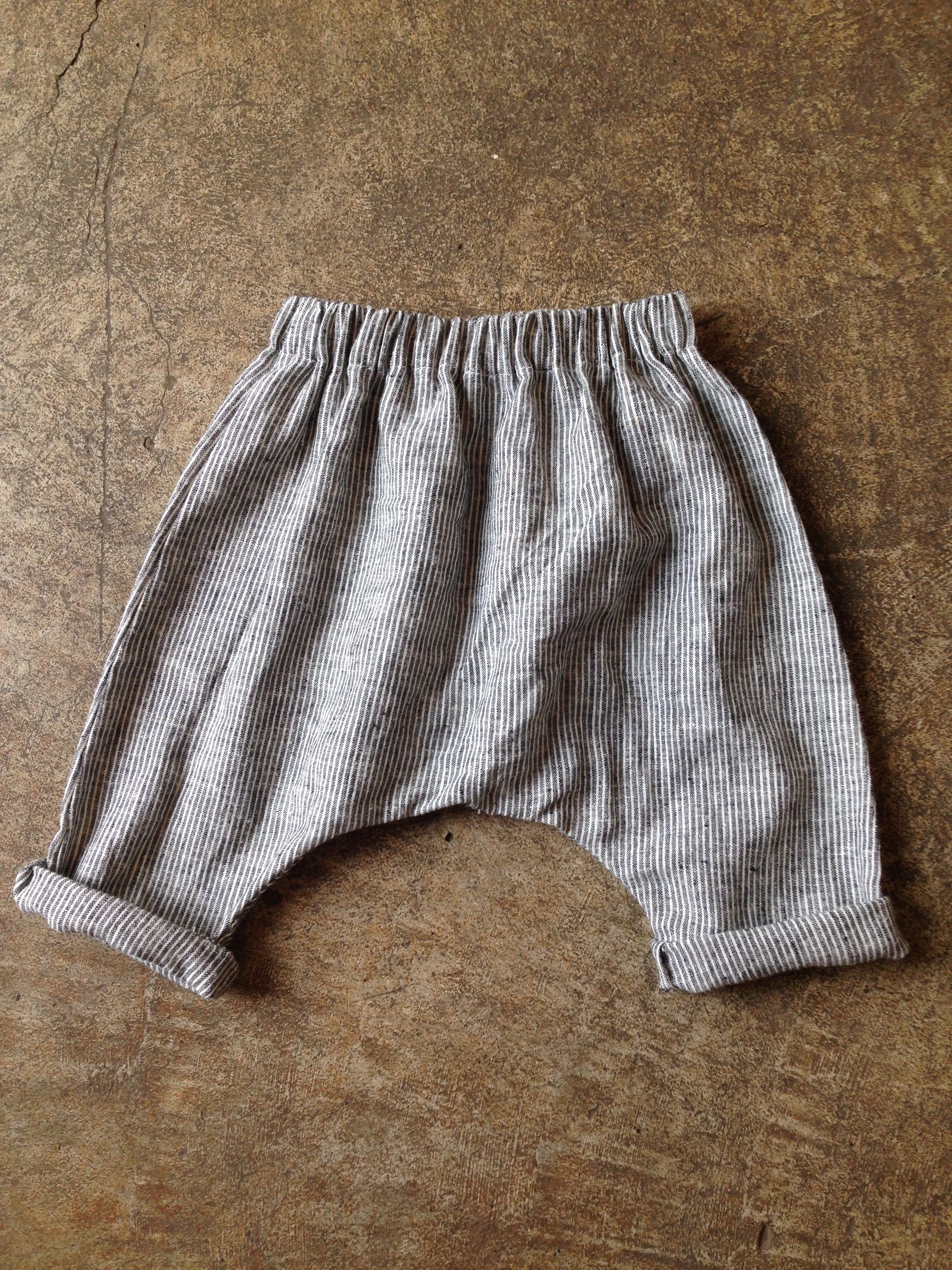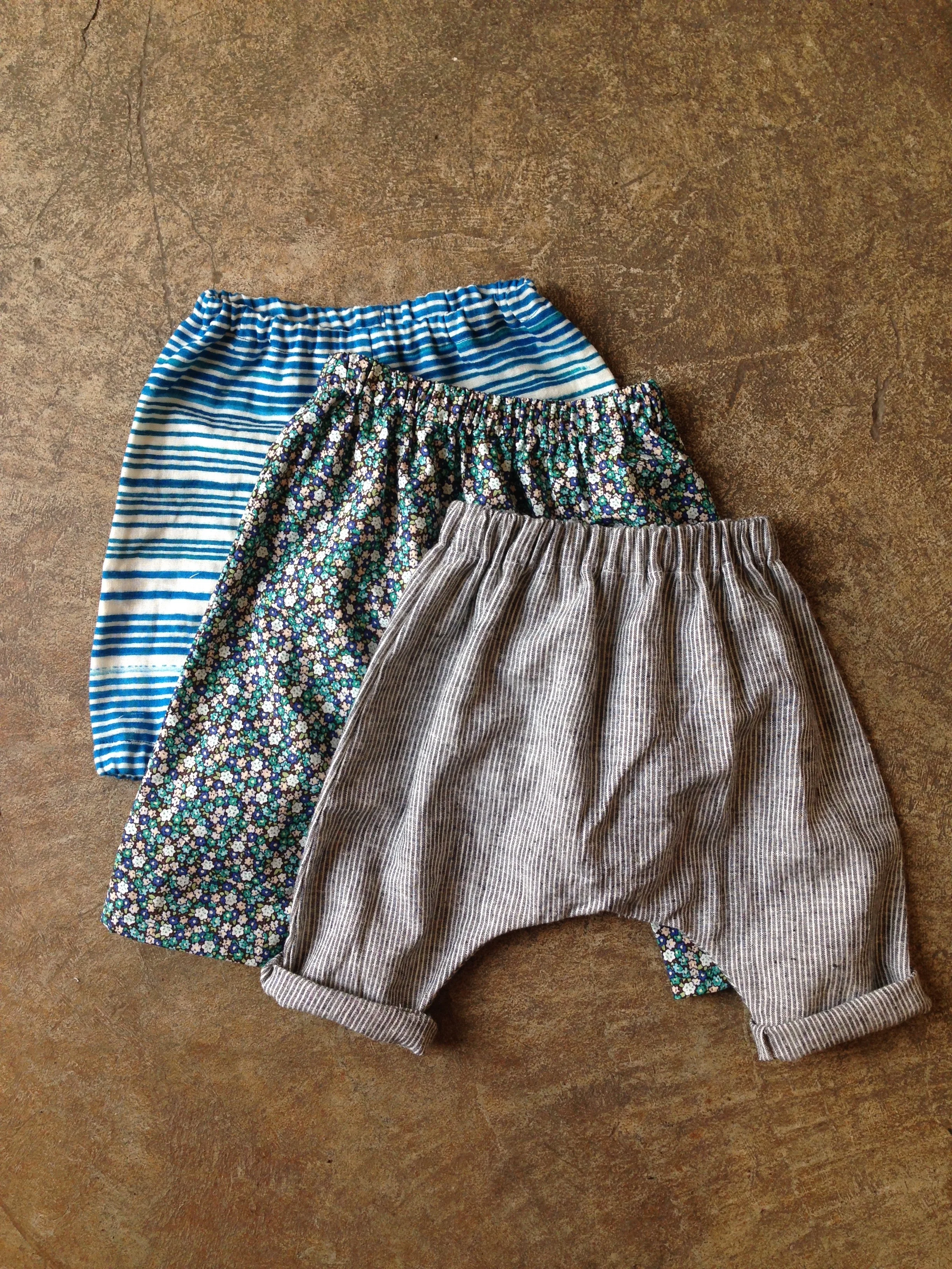I made the Harem Pants in the 3-6 month size in our store favorite hemp/organic cotton ticking, a Carolyn Friedlander lawn, and a crisp Japanese shirting.