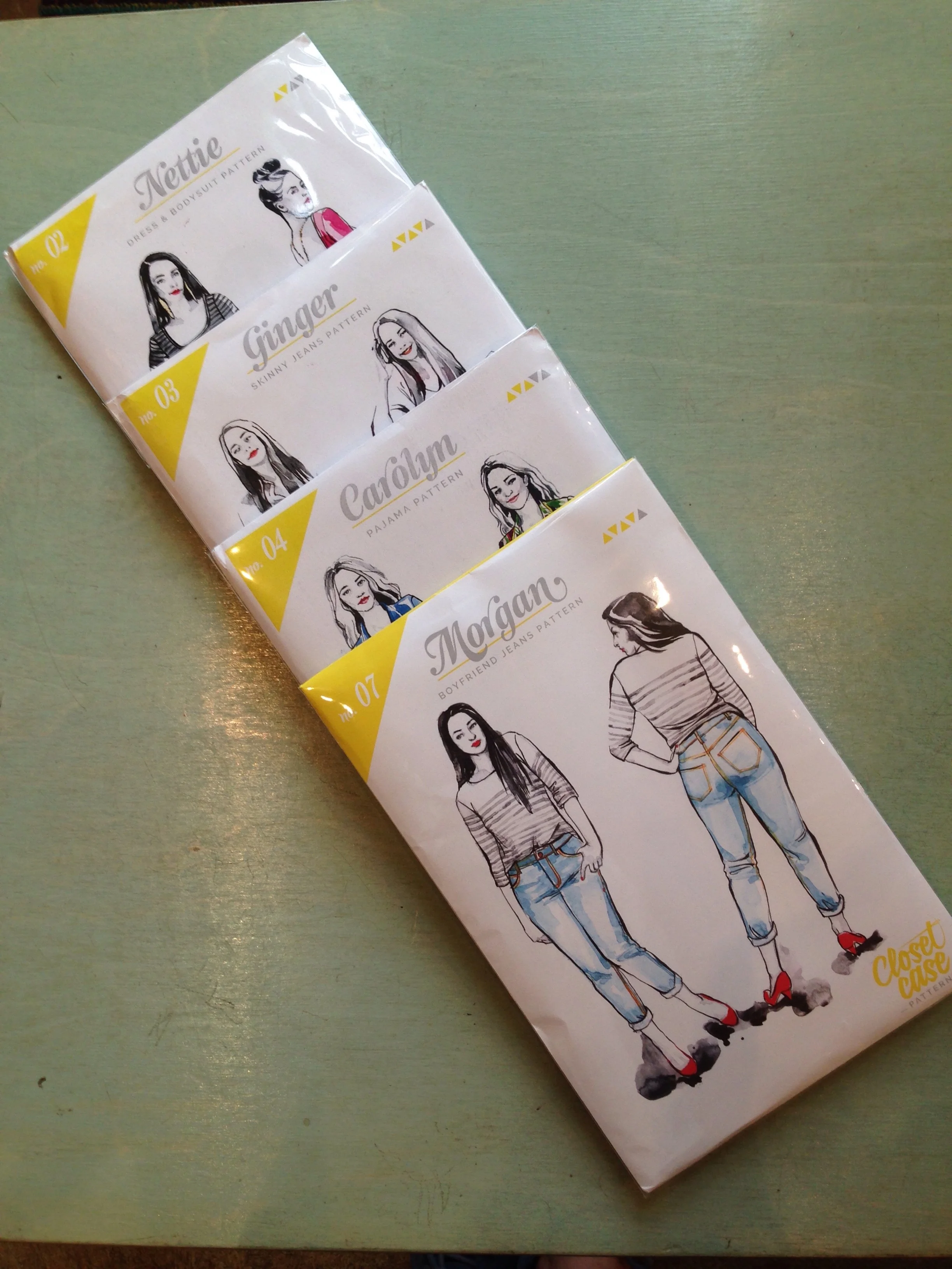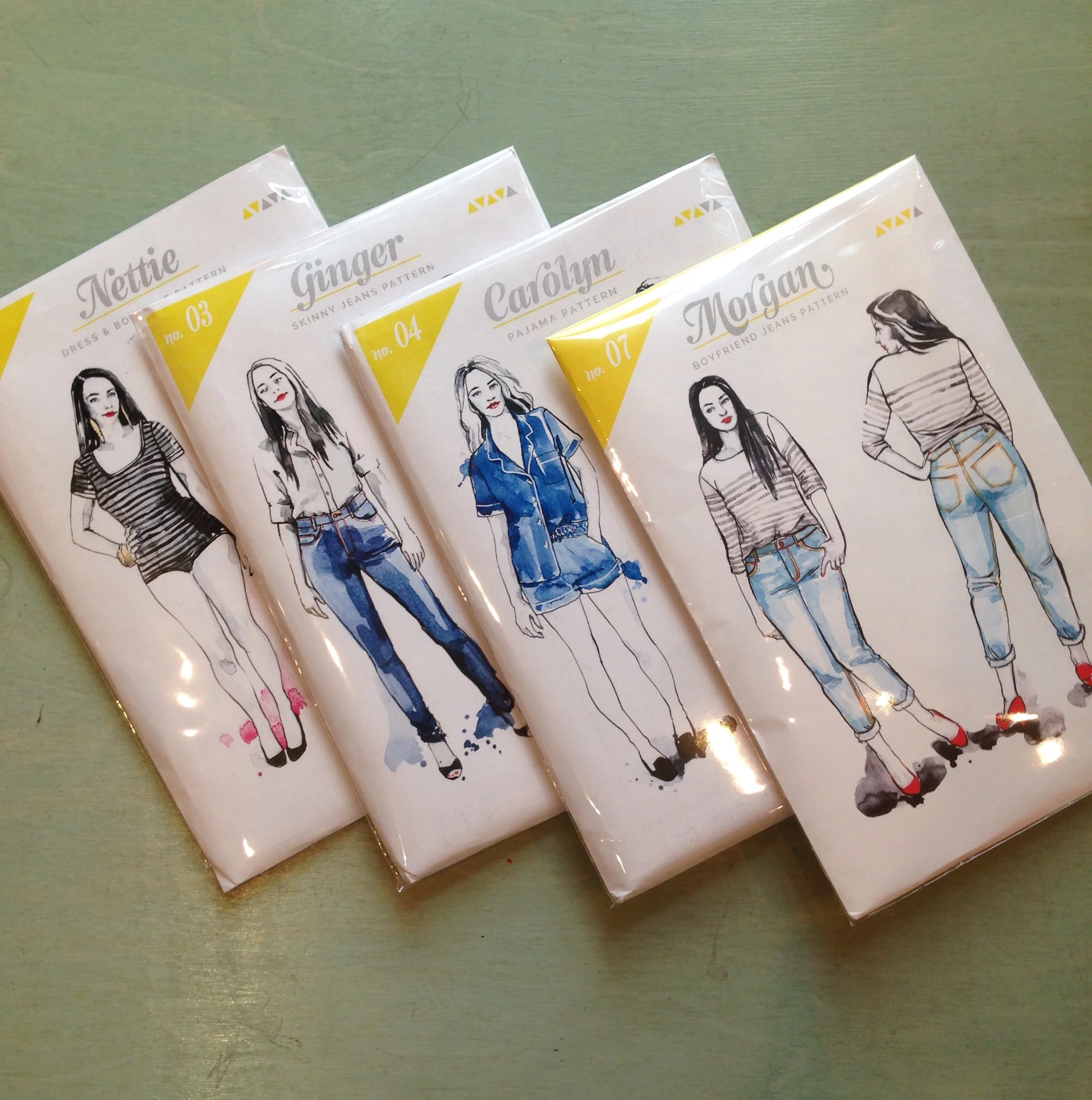 Right now, we have the Nettie Bodysuit and Dress, the Carolyn Pajamas (perfect for lounging on these hot summer days we've been getting a sampling of lately), the Morgan Boyfriend Jeans, and Ginger Skinny Jeans. We can't wait to see what you make with these new patterns!