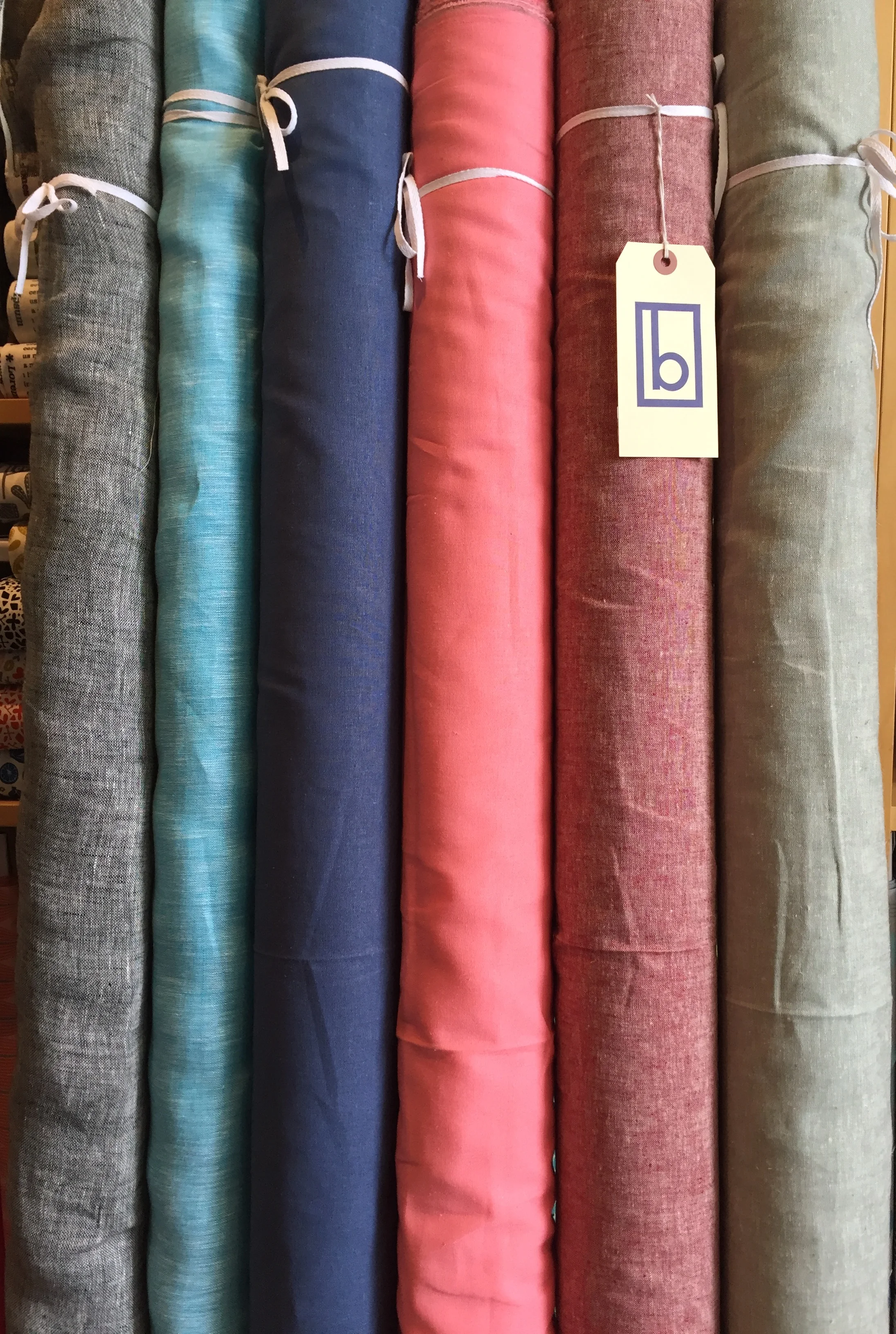 The two on the left are super light weight, sheer linen, absolutely beautiful. The four on the right are new colors of Brussels Washer rayon linen blend from Robert Kaufman.