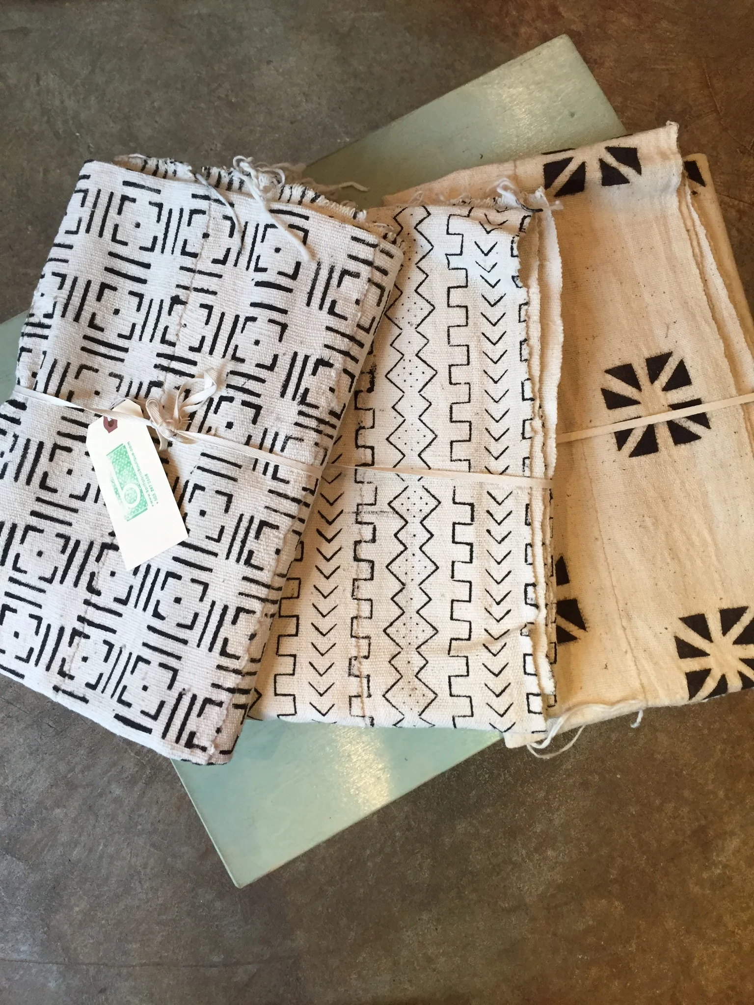 These beauties are mudcloths from Mali. You can read up on the process of making these here.