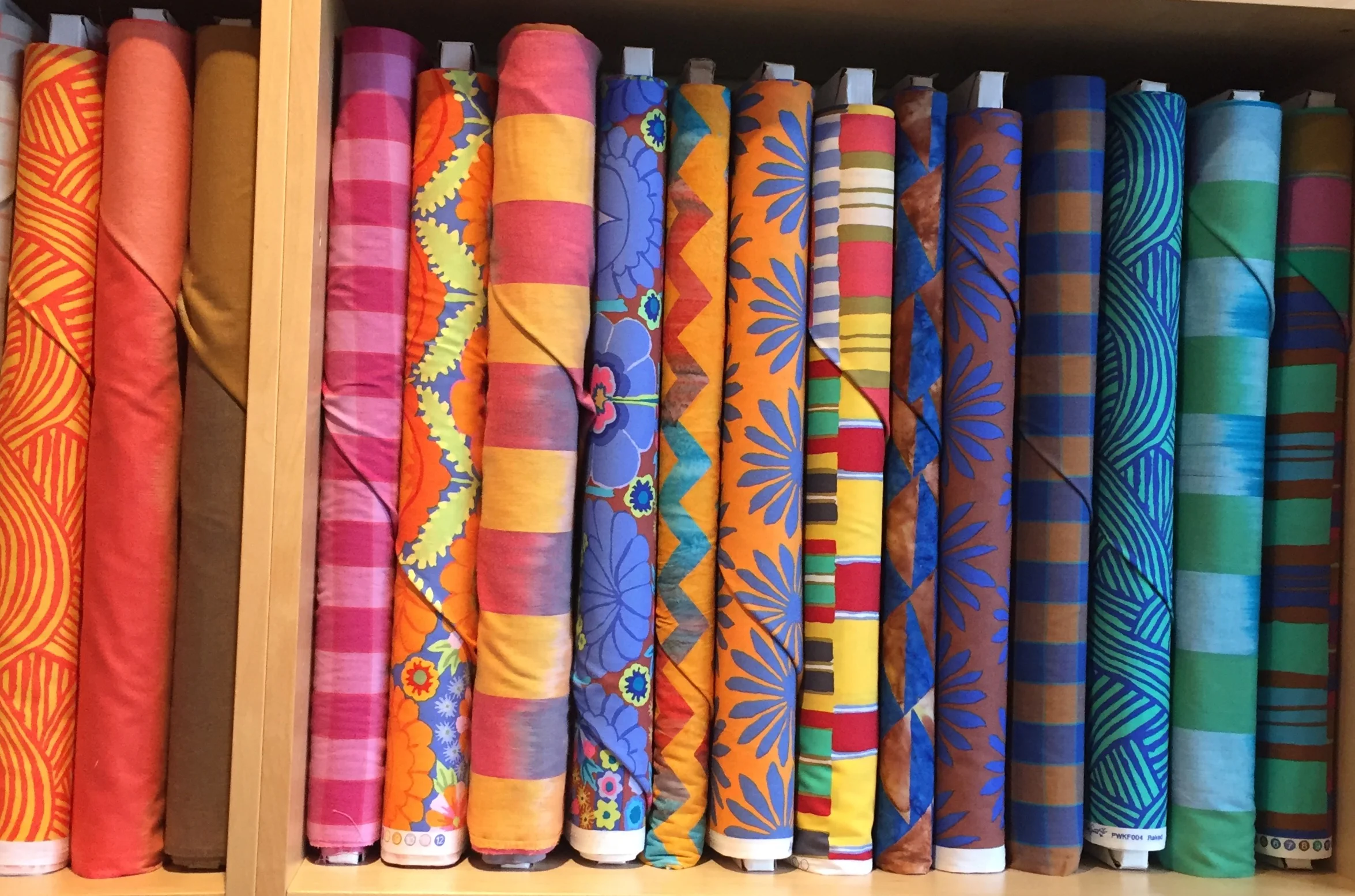 We have received some of the most exciting groups of the year in the past couple of weeks. Such incredible beauty and creativity in these collections. The first two groups come from Westminster Fibers, by Kaffe Fassett, "Artisan," and Anna Maria Horner, "Loominous 2." Feast your eyes, then come in and experience them in person. Kaffe's group is a combination of cotton prints, batiks and wovens that all work so nicely and creatively together.
