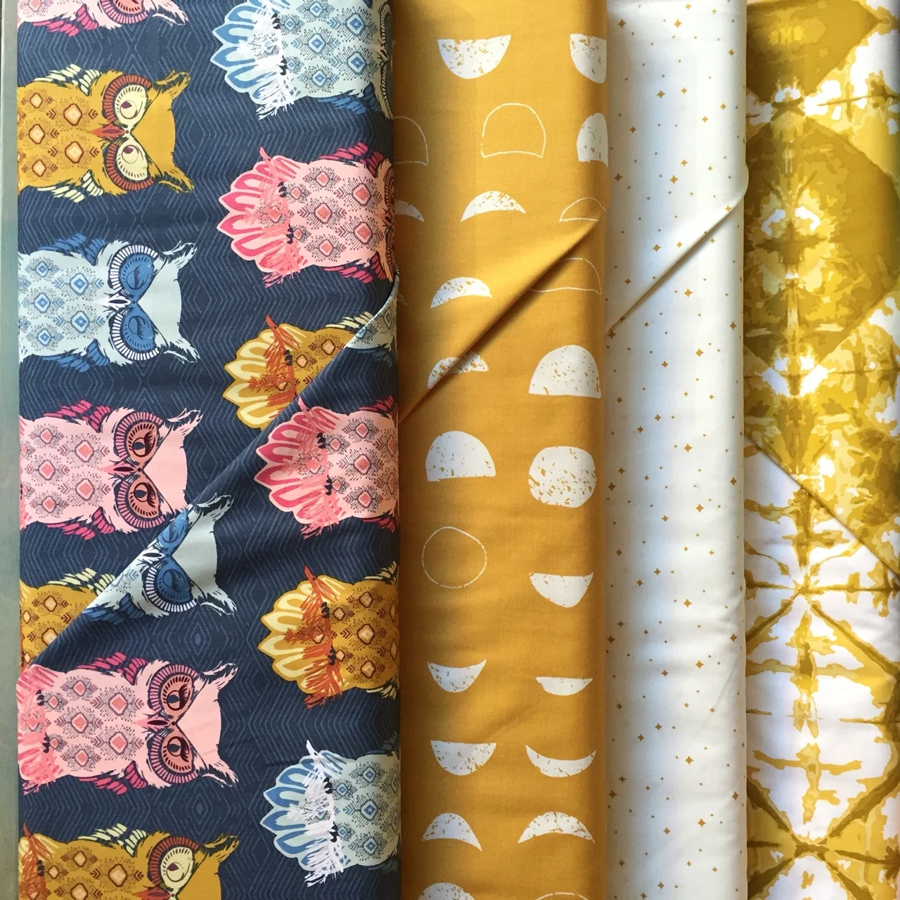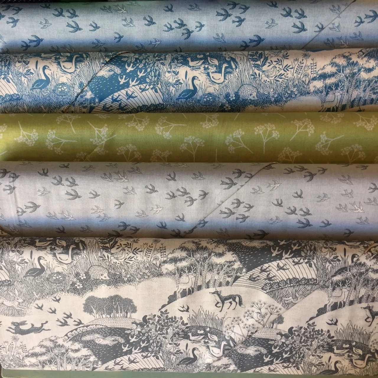 Such a pretty new woven group of organic cottons from Cloud 9 )top) and more subdued wovesn from Andover (below)