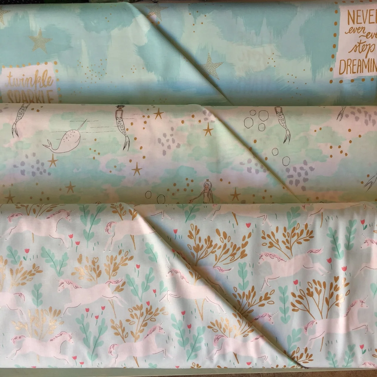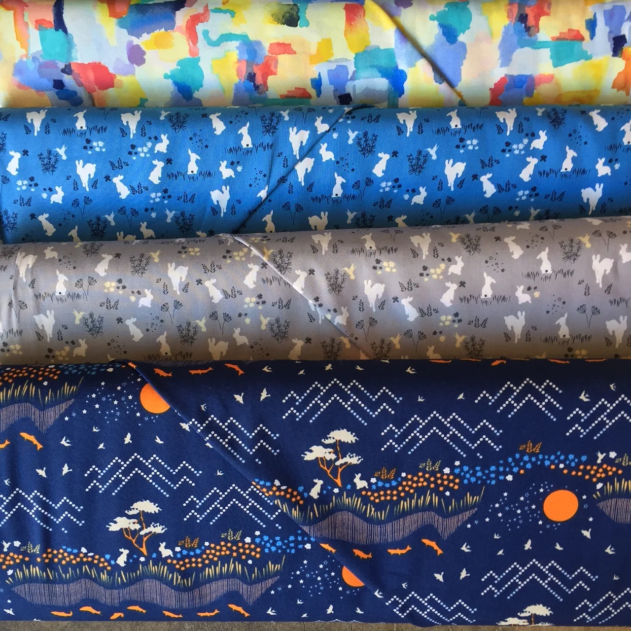 Another daydreamy group with mermaids and unicorns and glittery gold by Sarah Jane for Michael Miller. And such sweet rabbits from Portland's Violet Craft, also for Michael Miller (the top piece in that picture is by Laura Gunn.)
