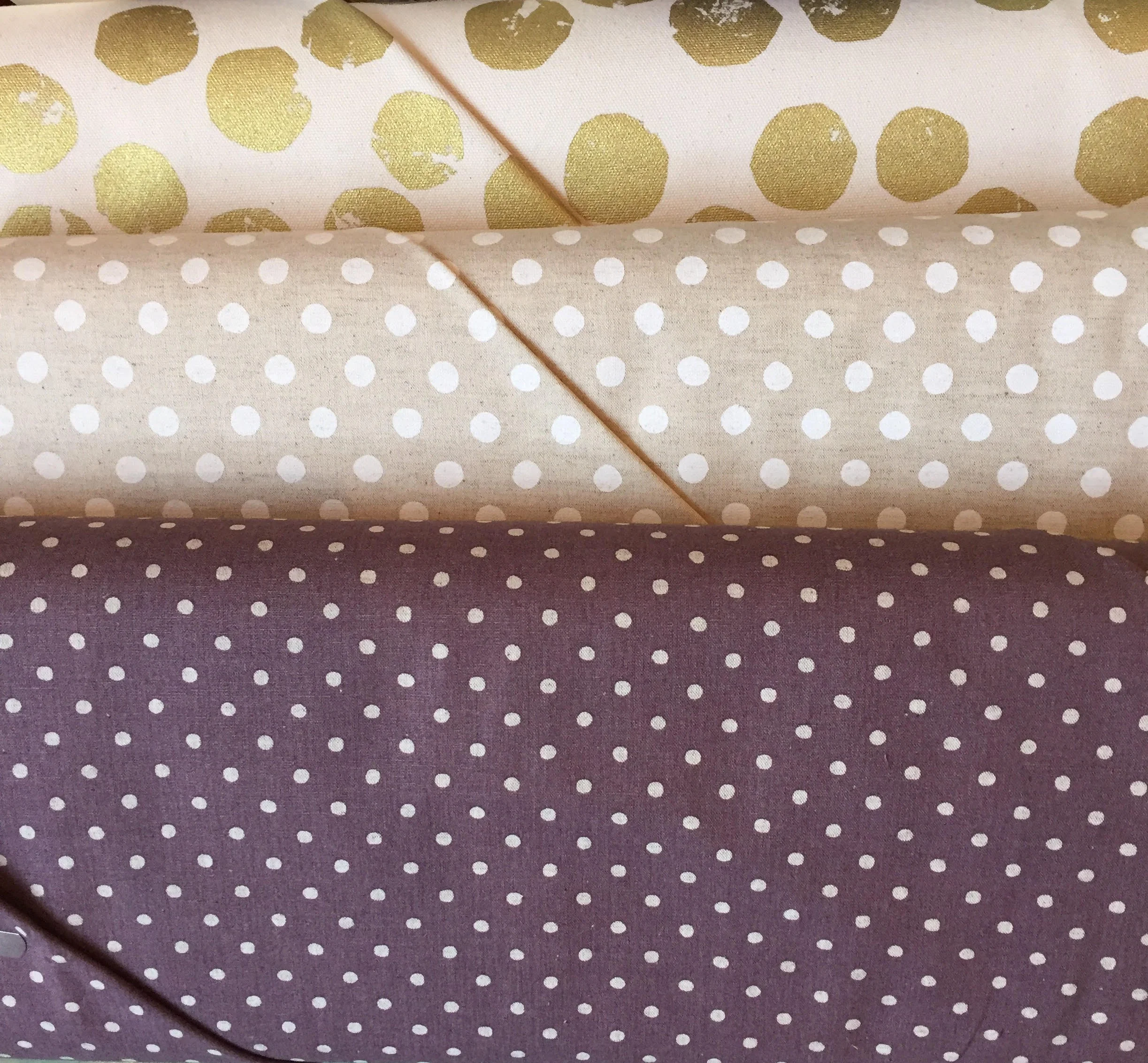 On to the fabric now. First up is a group of Japanese canvas and cotton / linen blend dots from Robert Kaufman.