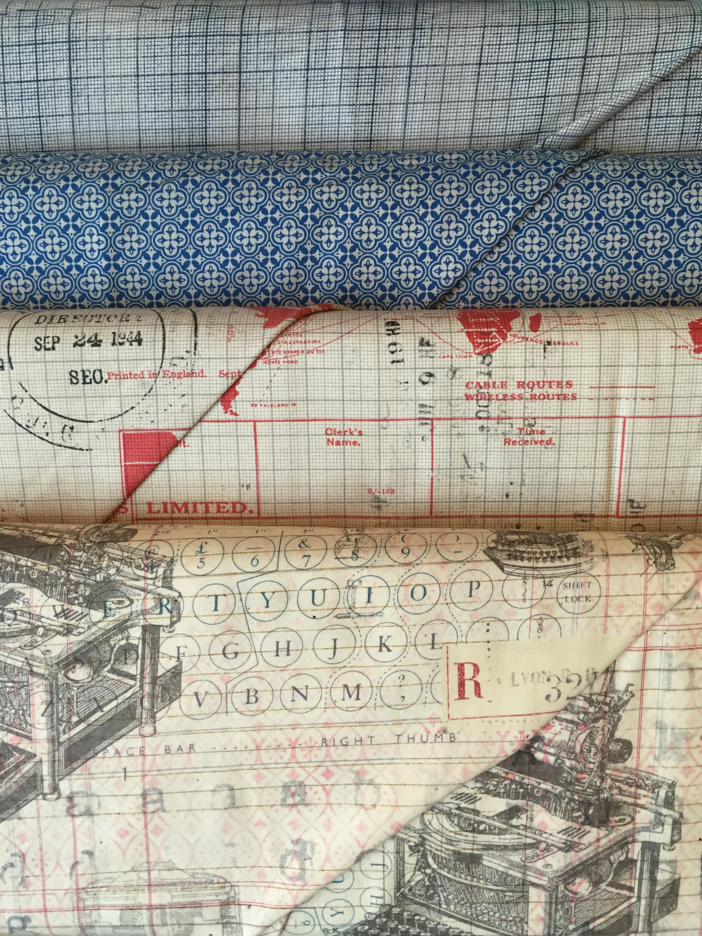 Bold colors and designs from Kaffe Fassett and friends. As well as the nostalgic overlaying of images by Tim Holtz.