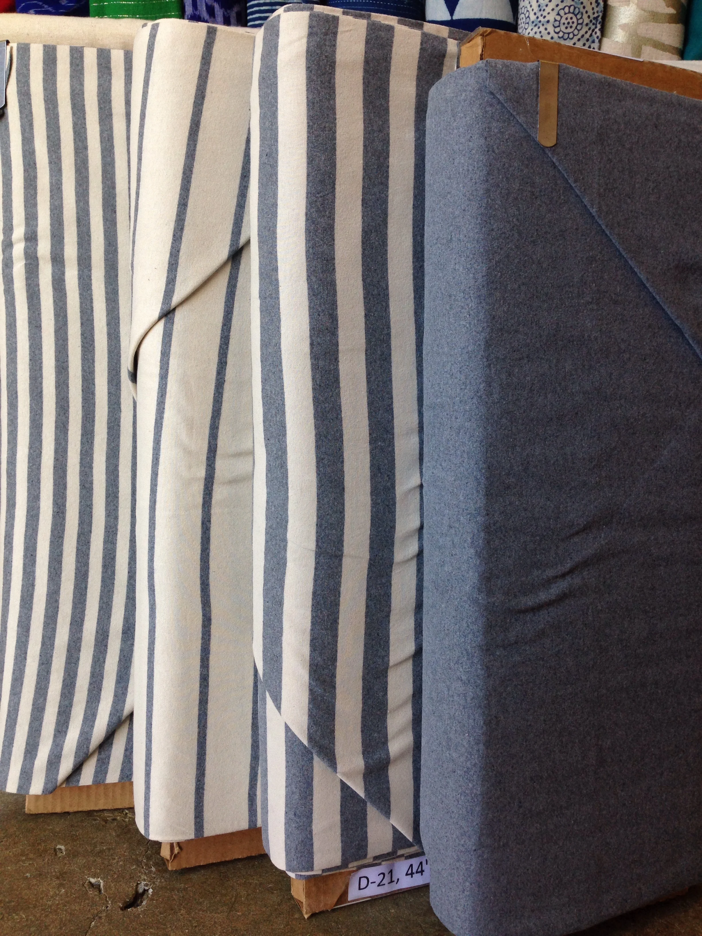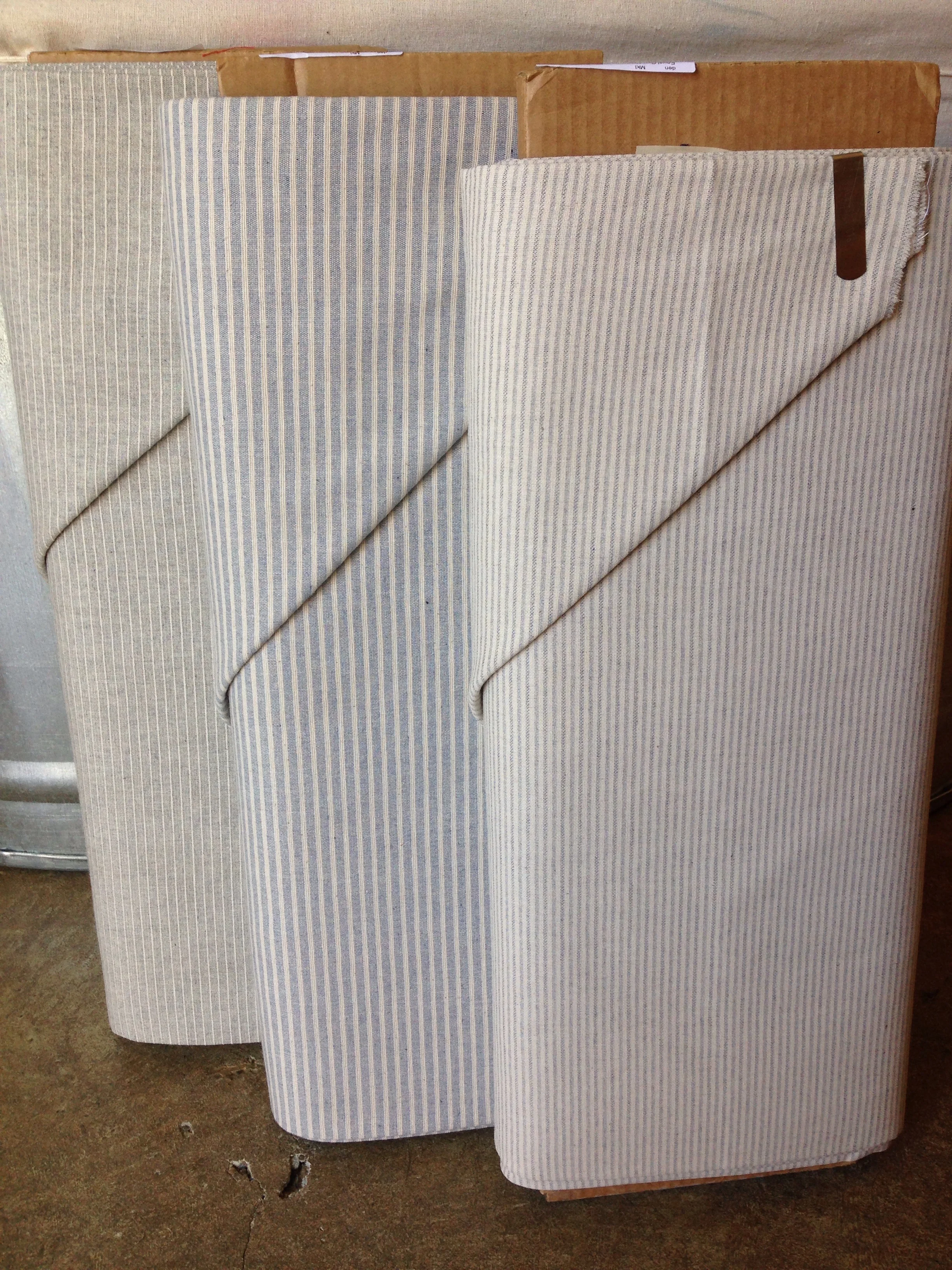 We're so proud to offer new, lovely cotton fabrics made from 100% cotton up-cycled from denim waste in undyed creams and greys. Above are woven stripes. On the left we have a lighter weight that would be appropriate for shirts and other lightweight garments. The left two stripes are heavier. Below are all cotton knits. These are so soft and cuddly, they would be perfect for swaddles and baby clothes - or perfect for you!