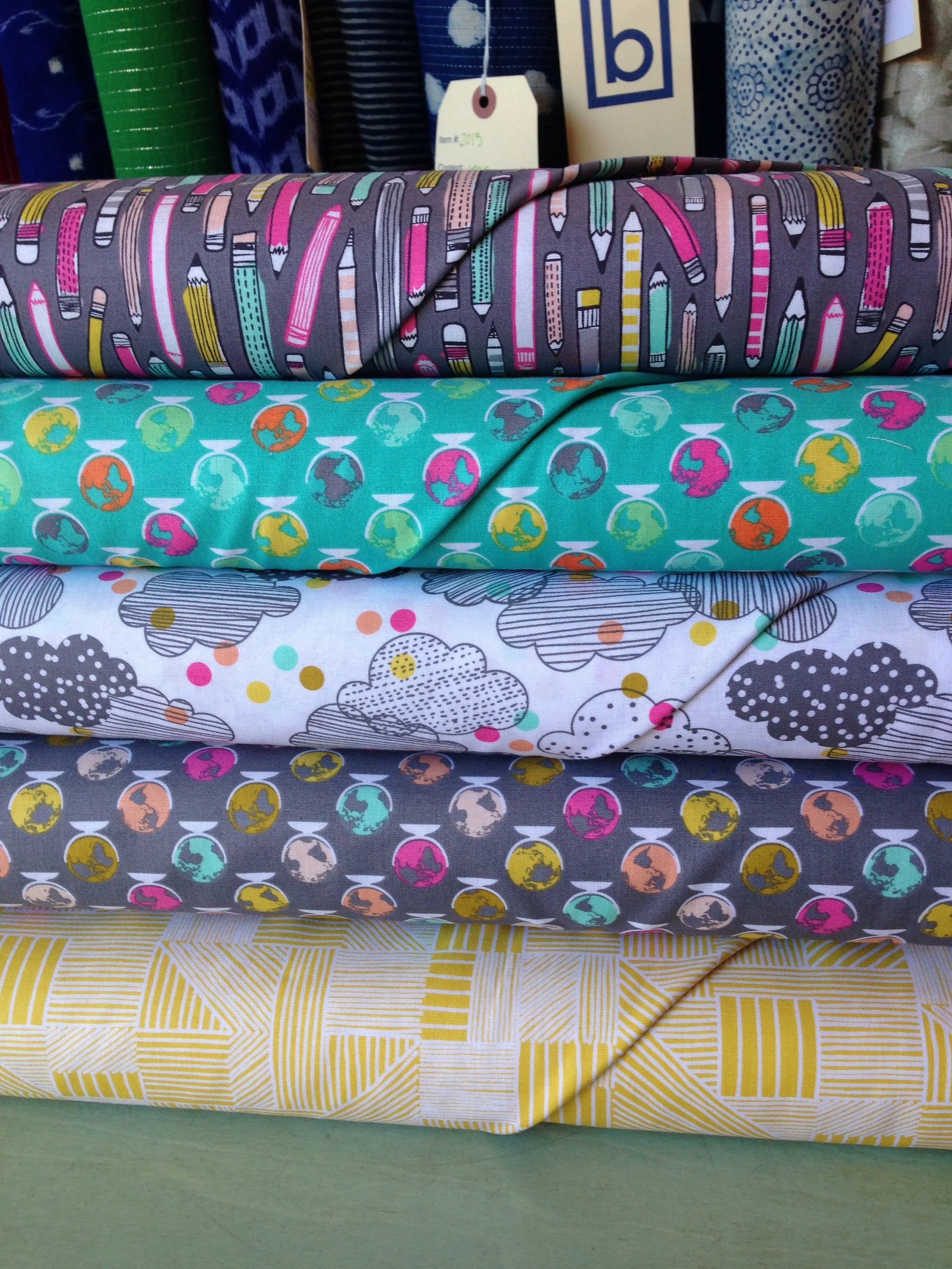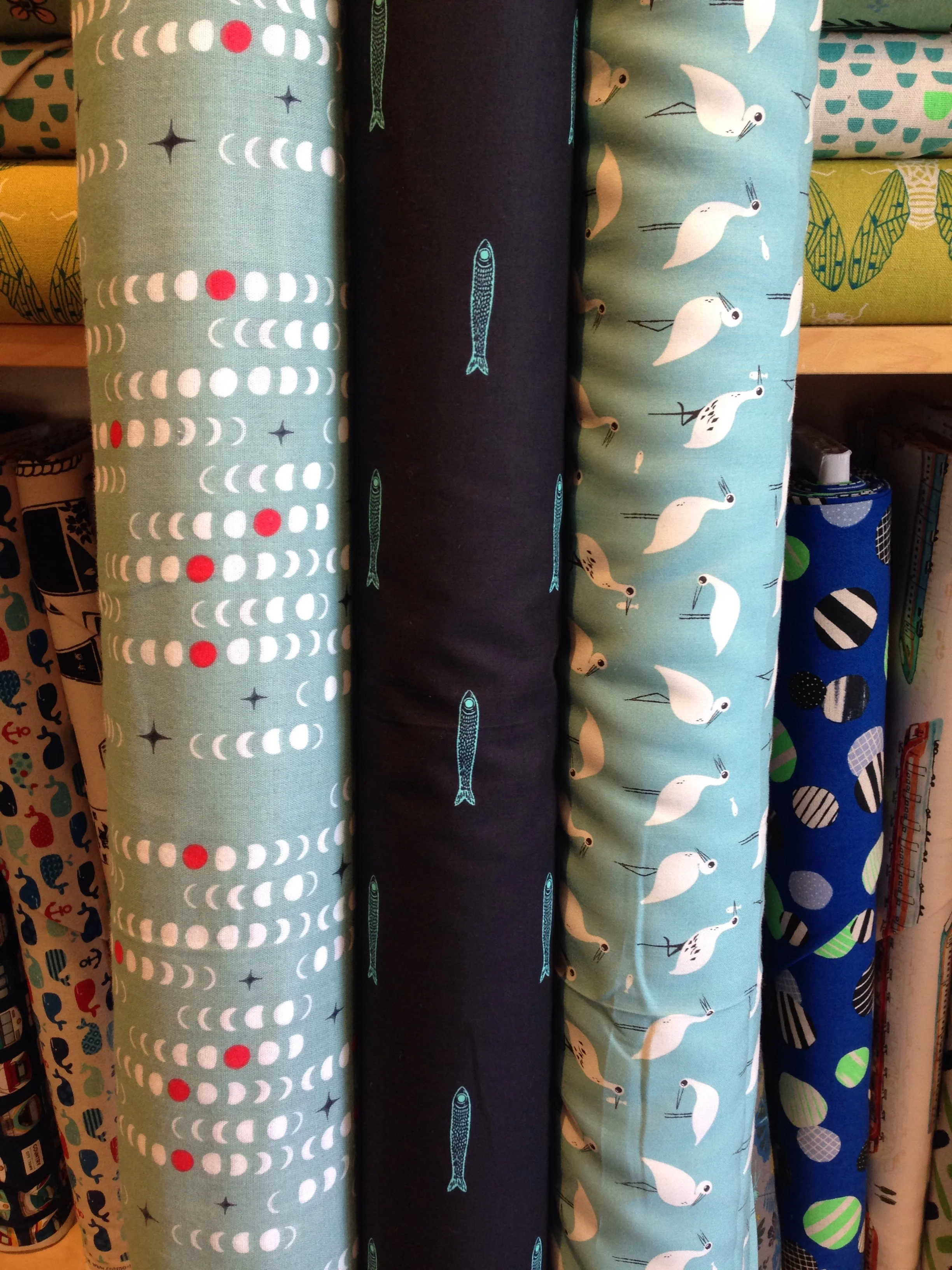 Another Birch organic cotton double gauze on the left and two new Cotton + Steel apparel fabrics on the right. The little fishes are a cotton lawn and the storks are on Cotton + Steel's signature luscious rayon.