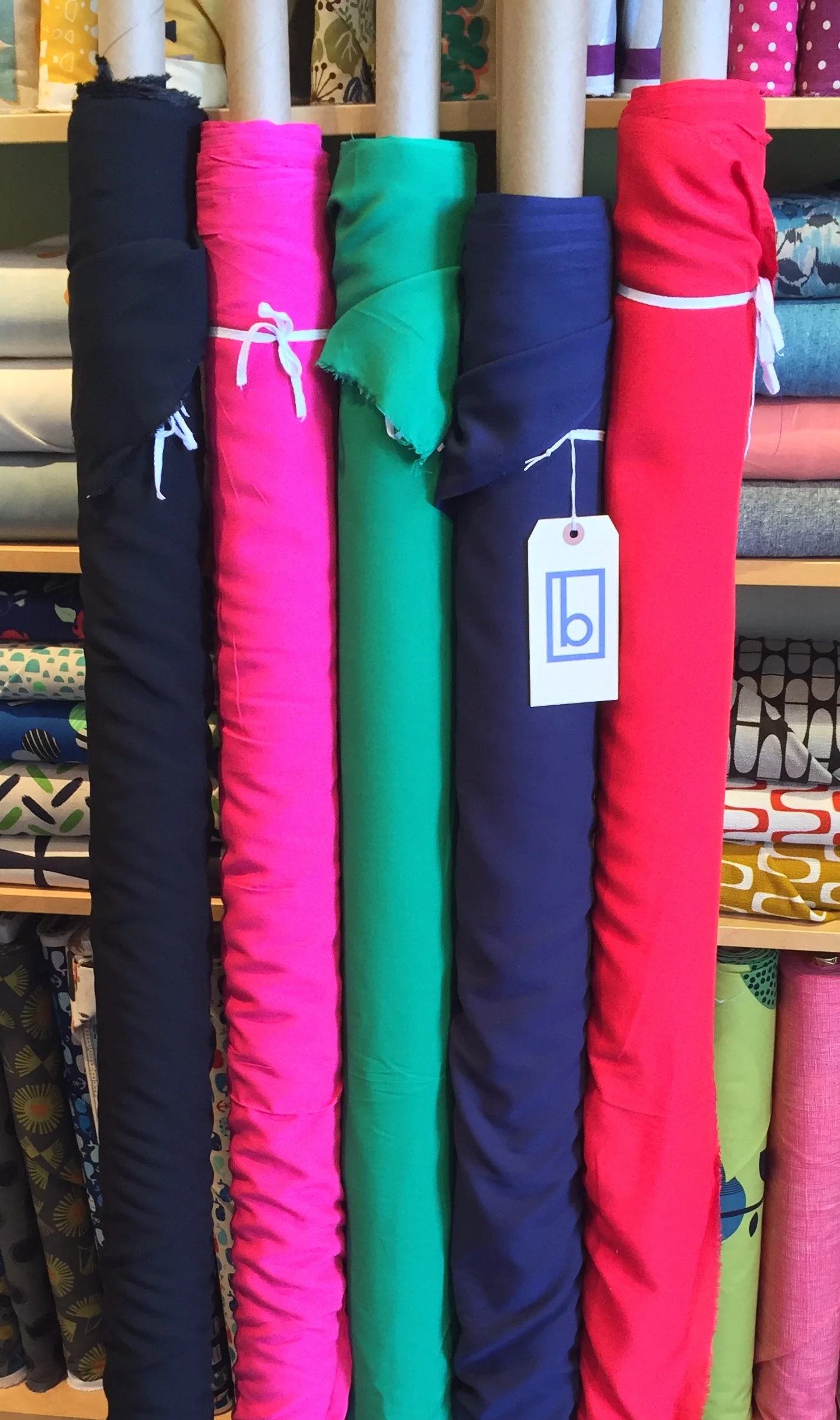 Last, but certainly not least, rayon challis in a range of solid colors. These are really luxurious building blocks for your summer wardrobe.