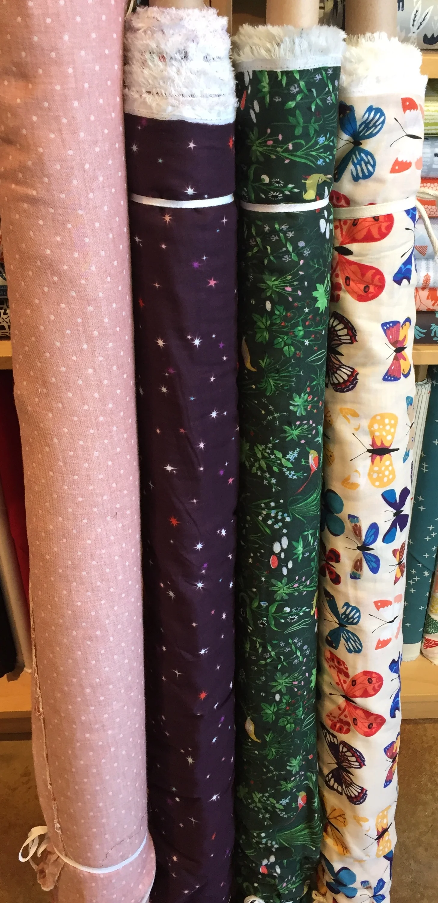 Lizzy House's designs on double gauze? Does it get much better? Unicorns, butterflies, stars.