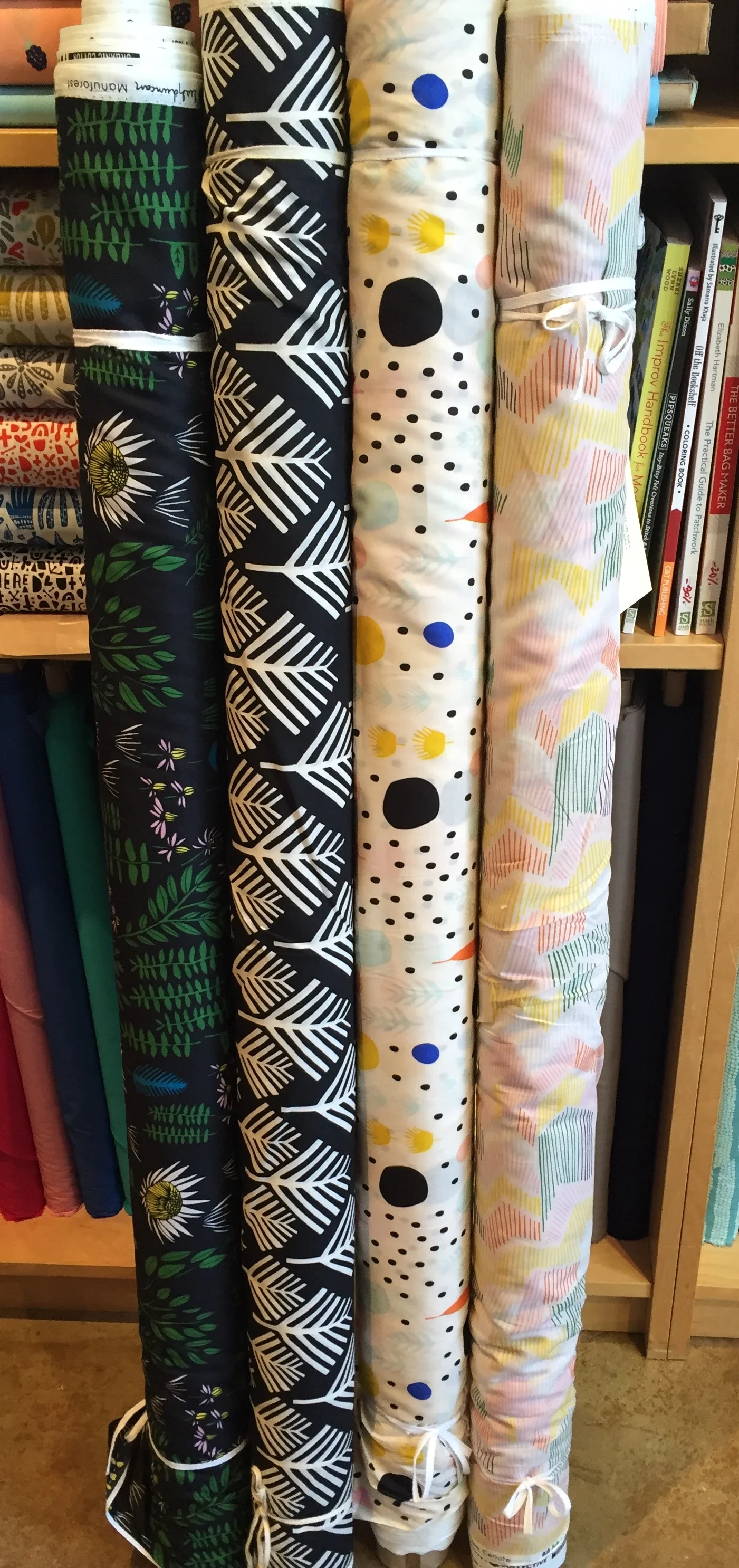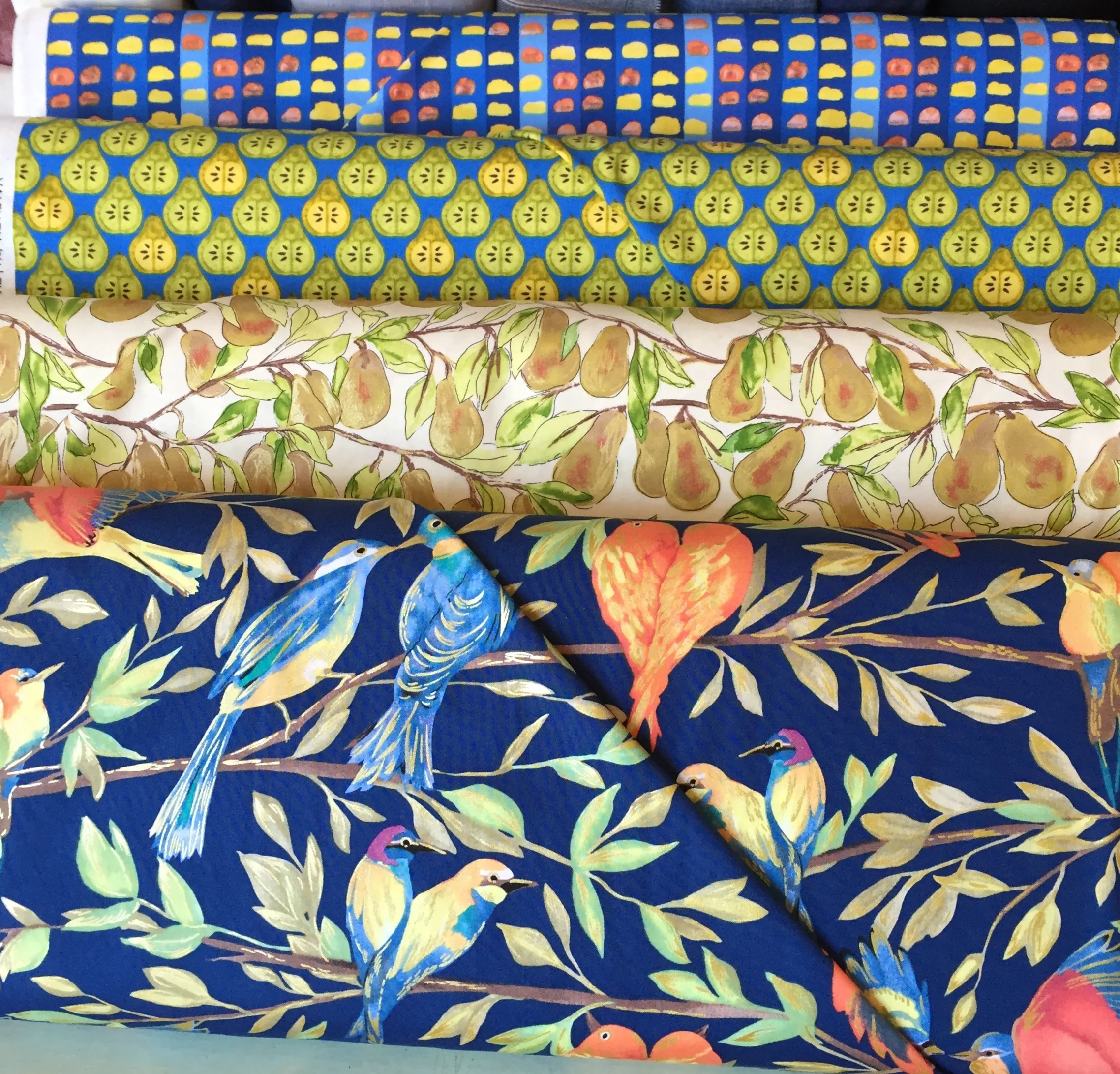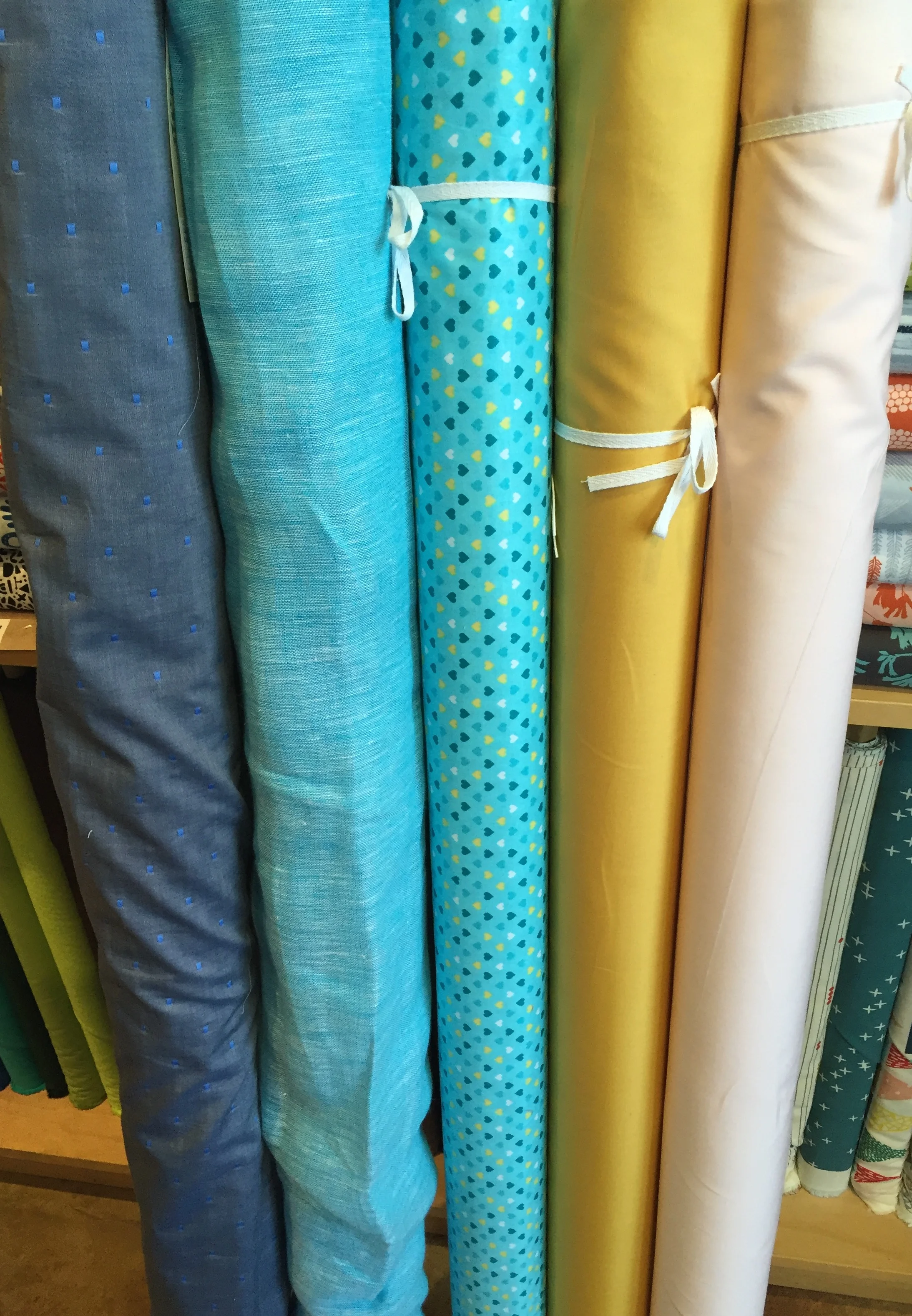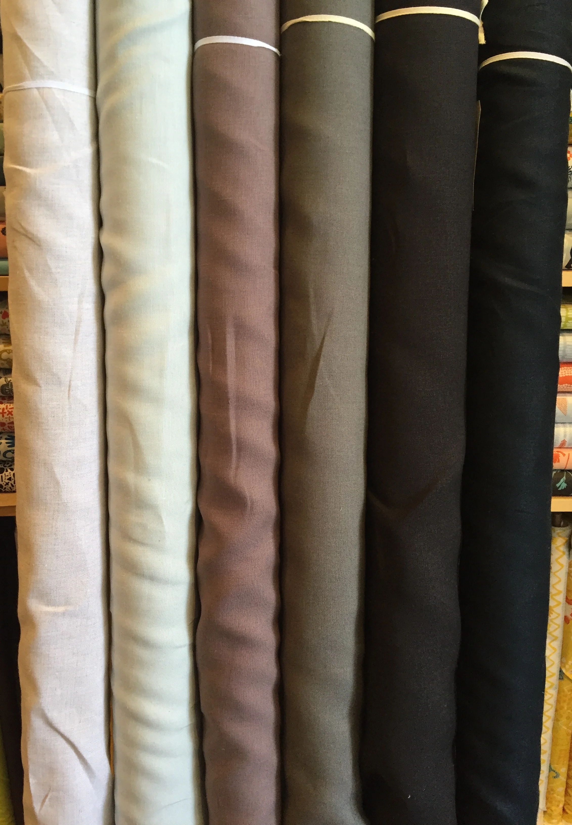 Sorry, I could not resist the alliteration. It's true, we've receive in all of these and more. Let's start with that linen. It's not much in a photo, but so lovely in real life. A heavier weight, good for apparel bottoms, accessories and home decor. Beautifully subtle colors. The navy on the end is a lighter, drapy-er weight.