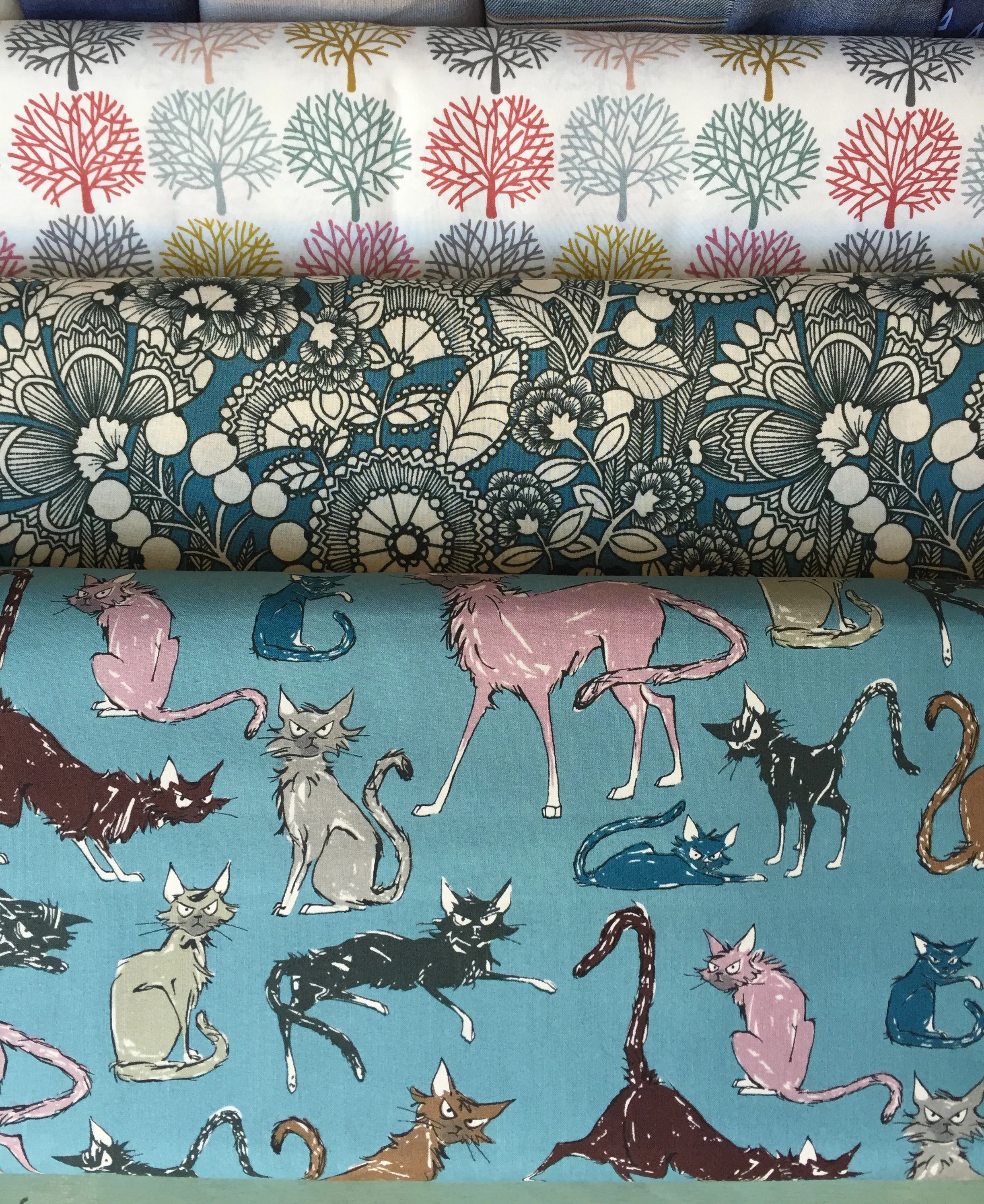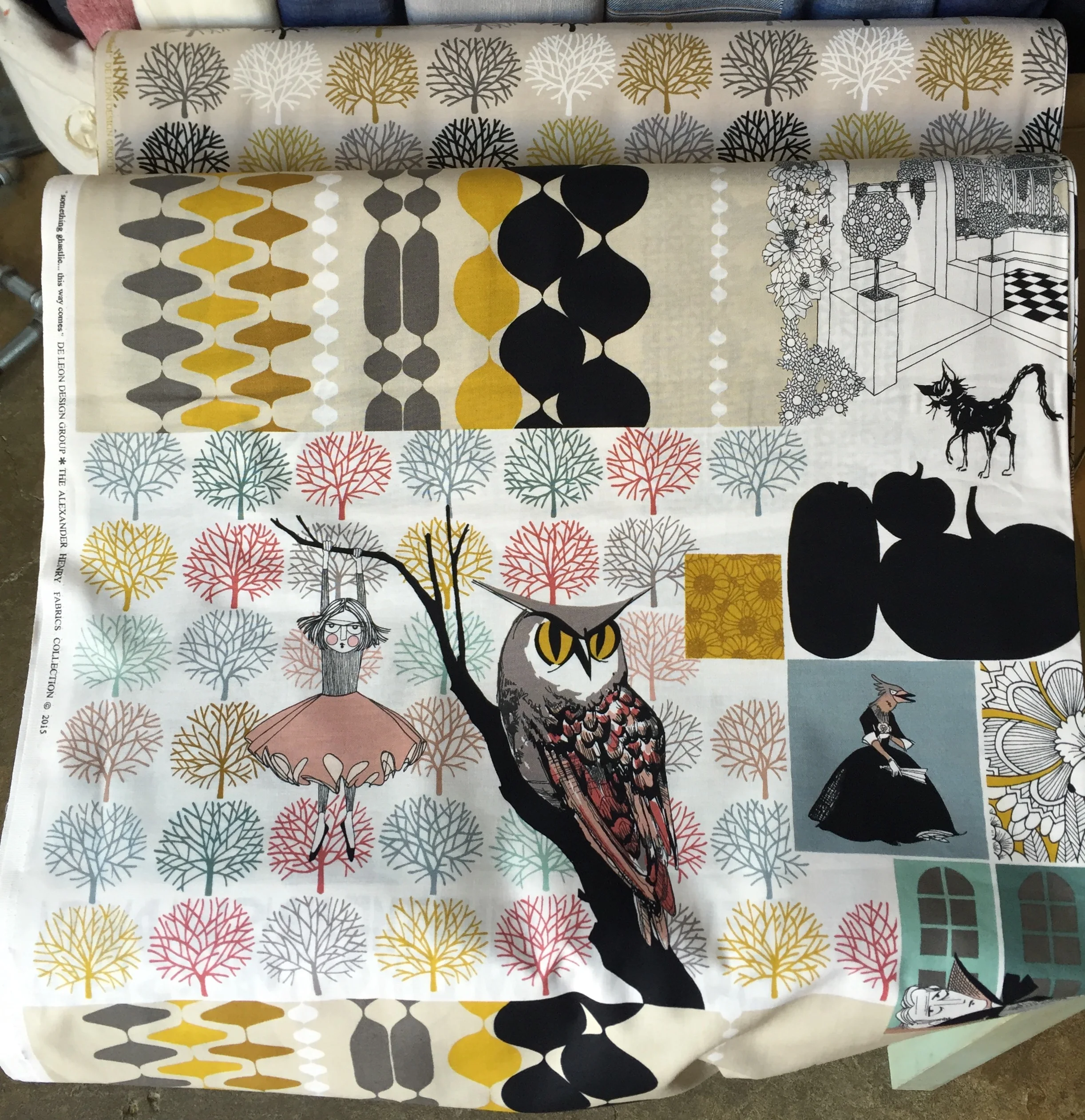 Just opened up boxes of Alexander Henry's Ghastlies. Creepy cats, owls, ghoulish characters. And some really nice tree prints.