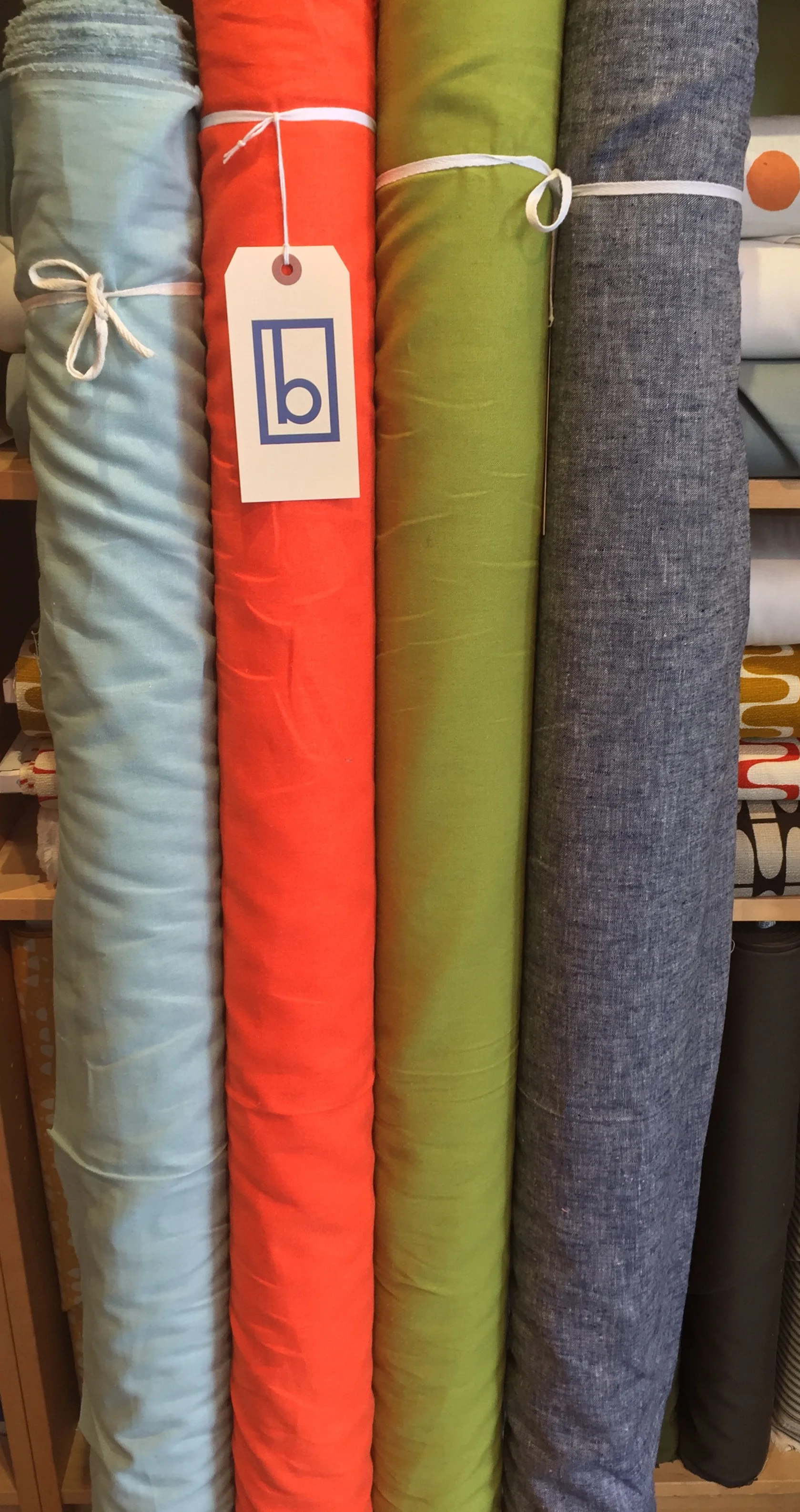 Some great staples in new colors and some fresh, new, super fun pieces this week to share. First off, the fabulous rayon/ linen Brussels Washer from Robert Kaufman. The item on the far right is Kaufman's Linen Indigo chambray.