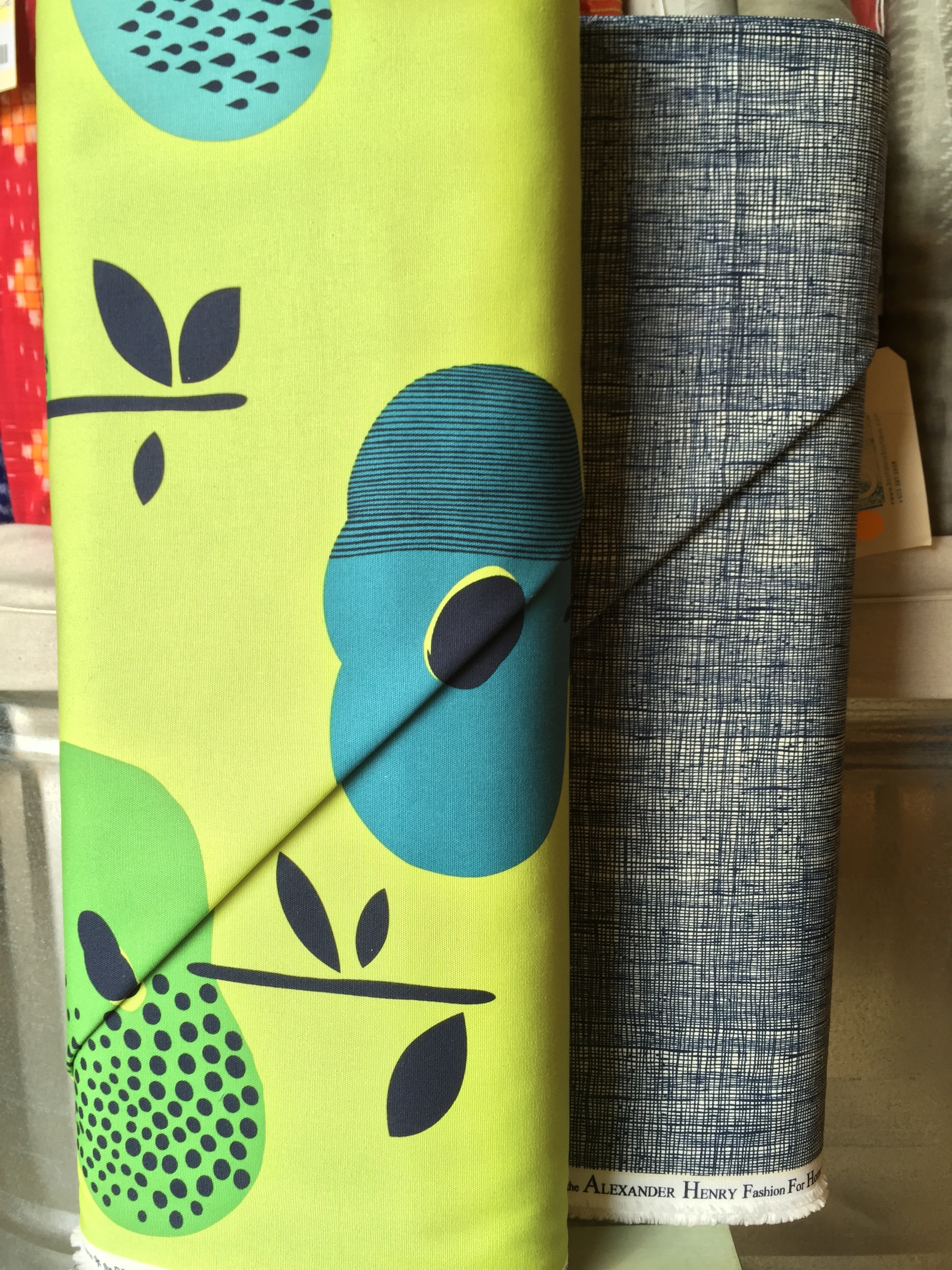 We've been busy building our home decor selection back up and there are some true beauties in right now! Also, brought back some goodies from Alexander Henry. We have more colors on their way of their classic "Heath" print.