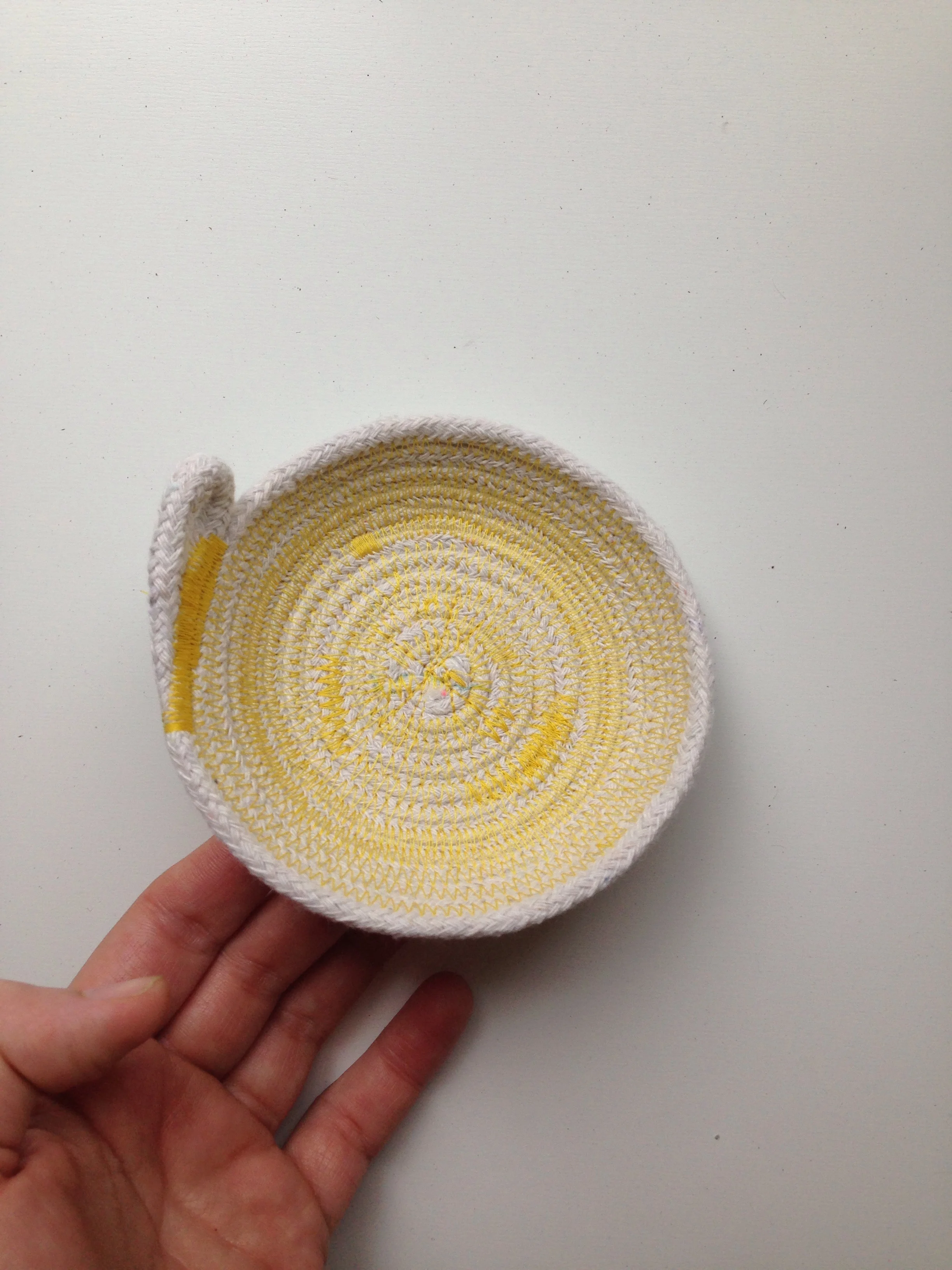 Once you make a - shockingly easy - rope bowl, it's easy to see way they've become so popular. They're so simple to make. There's almost nothing to prepare and no fiddly finishing. Just wind up a ball of rope and sew it together.