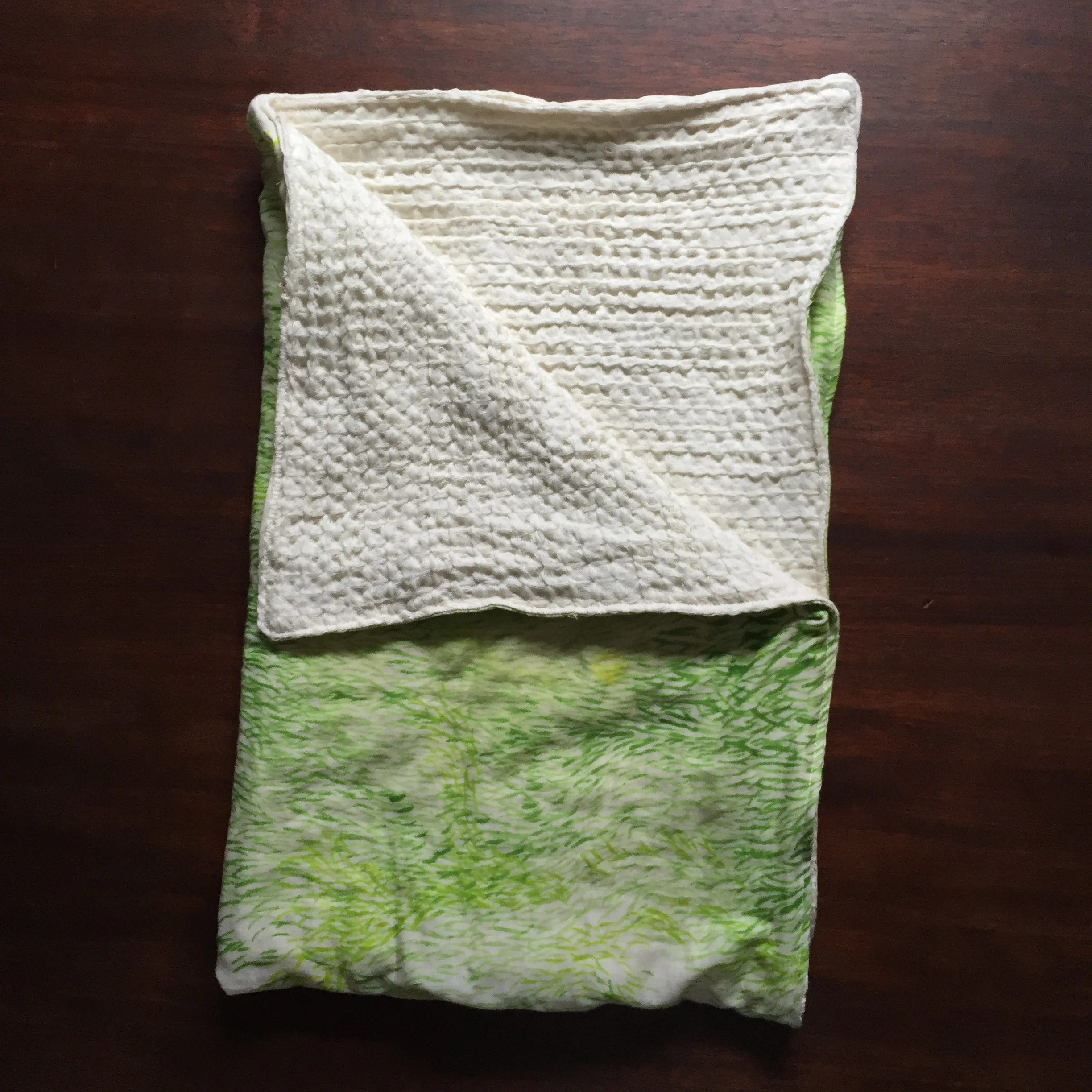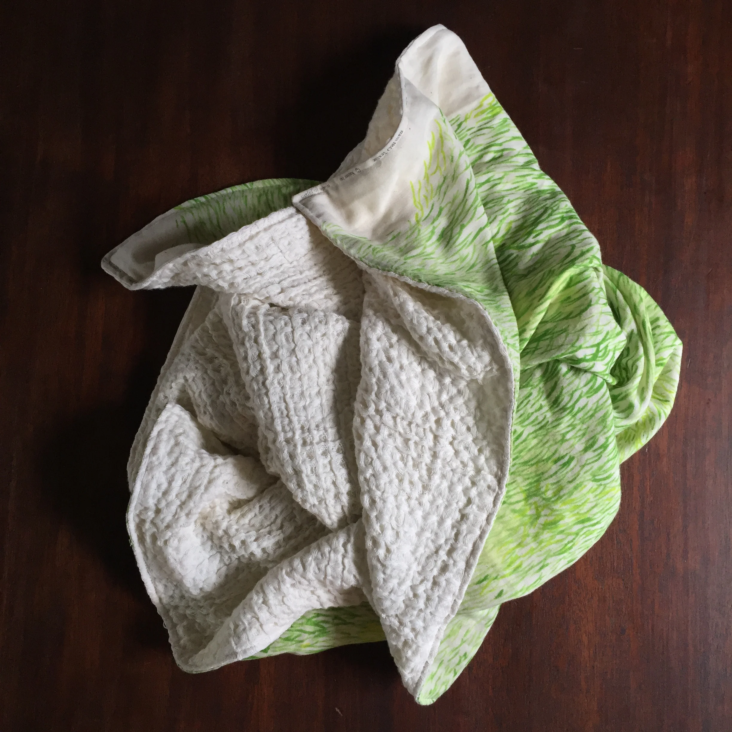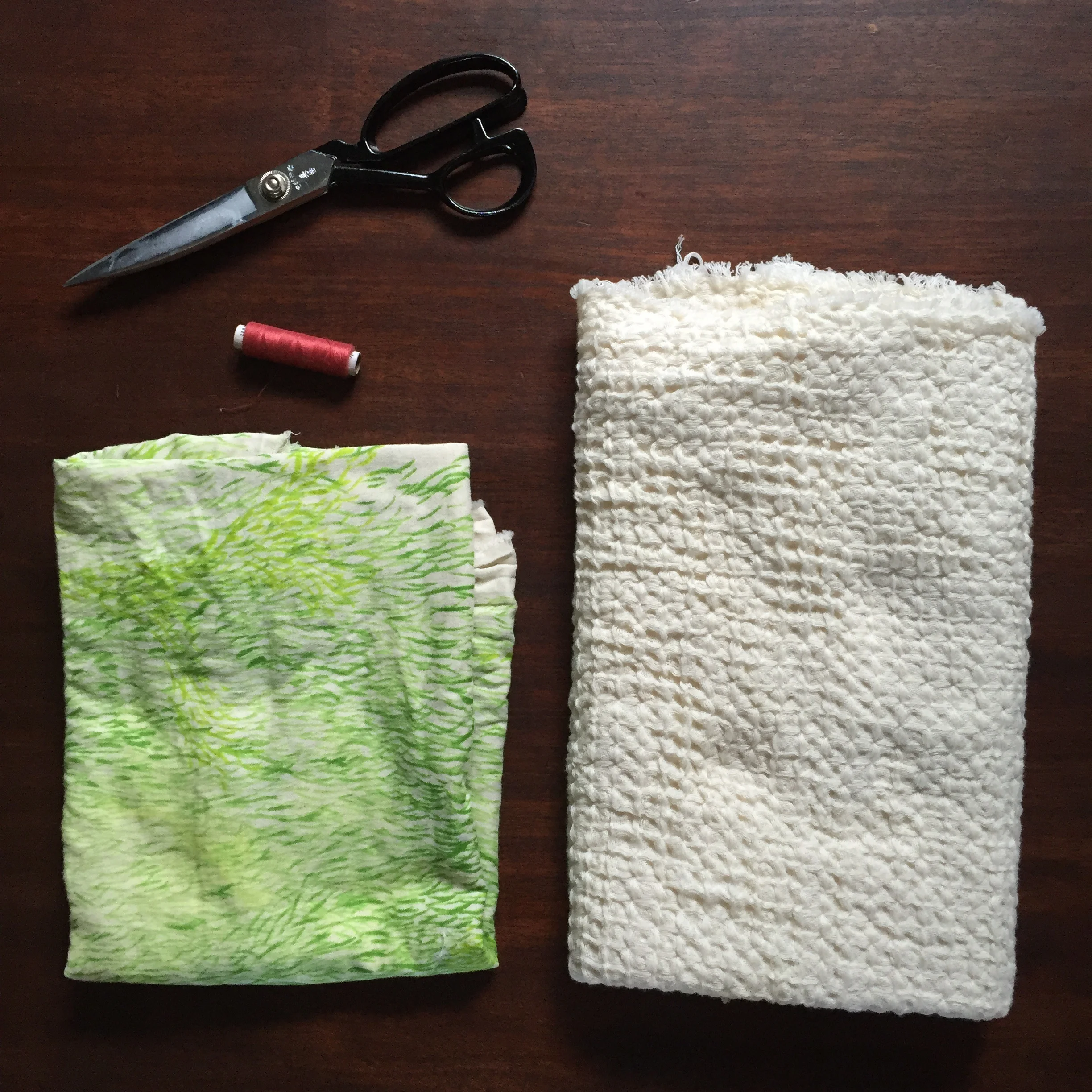 Buy your fabric as large as you'd like your towel. Wash and dry all or your fabric and sew right sides together. Turn it and finish with a top stitch being sure to catch the opening you left to turn it right side out.
