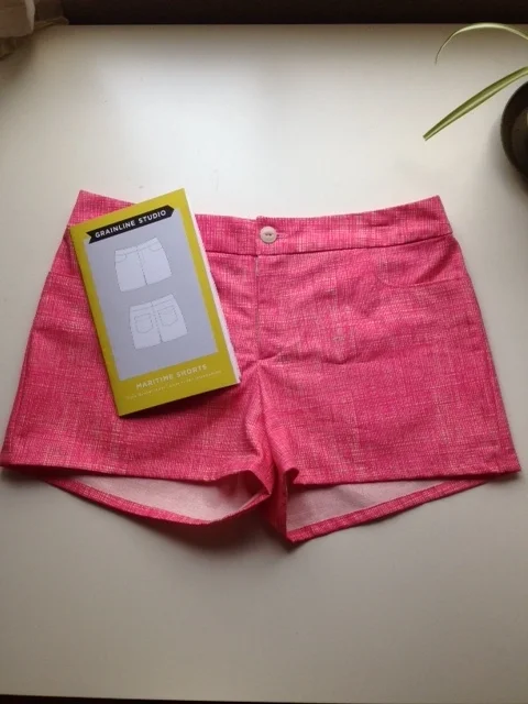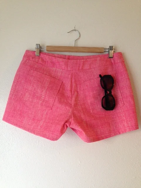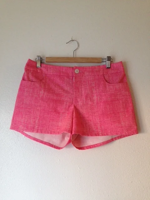 What an adorable pair of shorts! Yes, they are basic in design, but choose a fun, interesting print and voila, you are sure to stand out! We chose a hot pink home dec weight in the 'heath' print by Alexander Henry for our store sample. They are a size 10 if anyone wants to come in to the store and try them on for fit. It's a happy, summery pink and we love it!