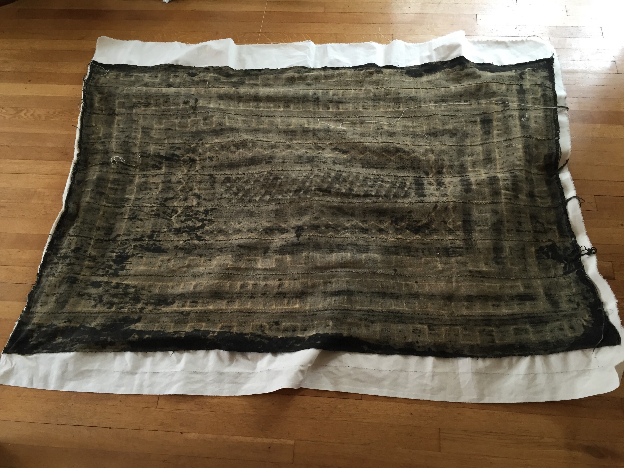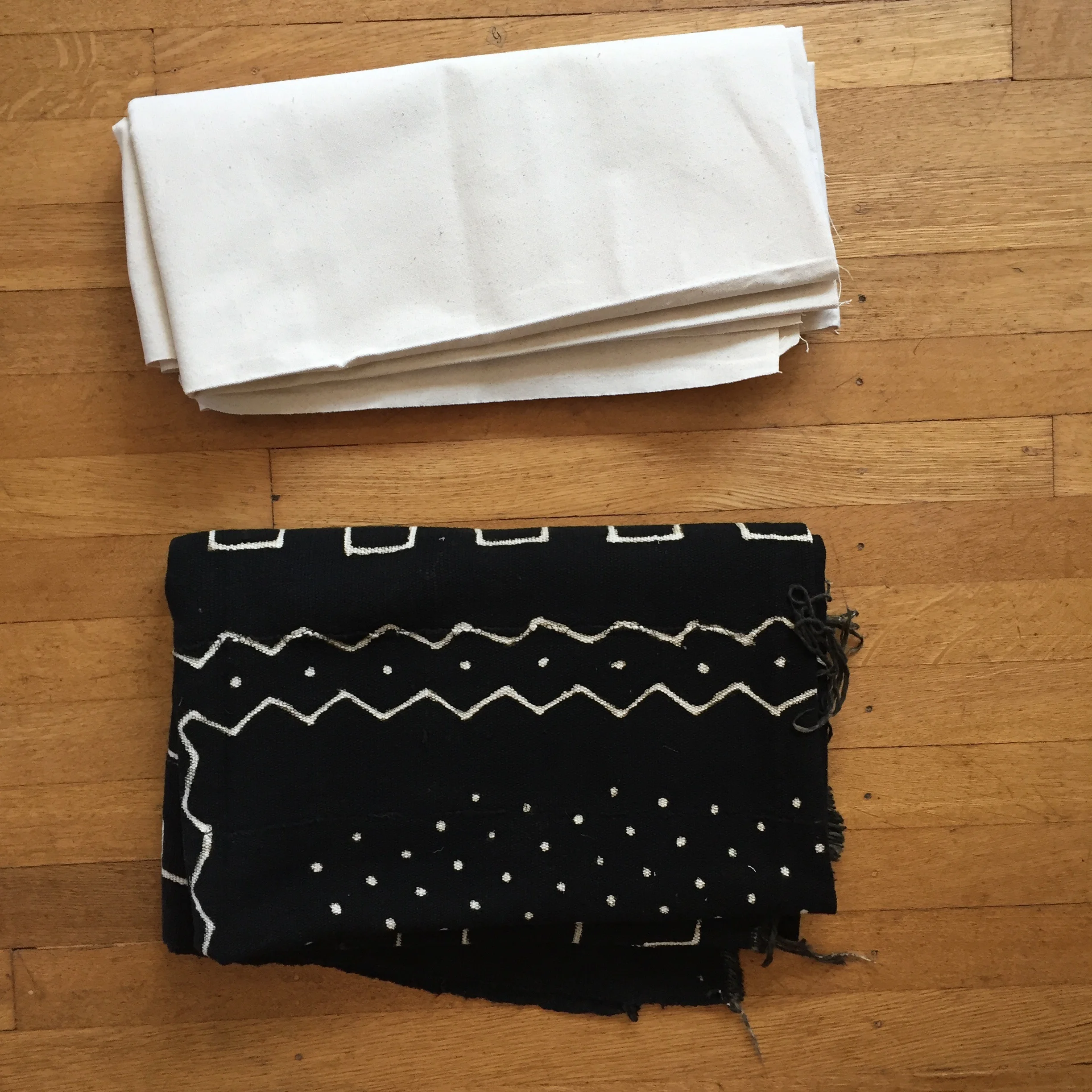 In addition to your favorite mudcloth you'll need two yards of duck canvas. Note that the dimensions of these vary so it's best to have one of us measure it and then cut the duck canvas making sure that you have at least an eighth of a yard on either short end.