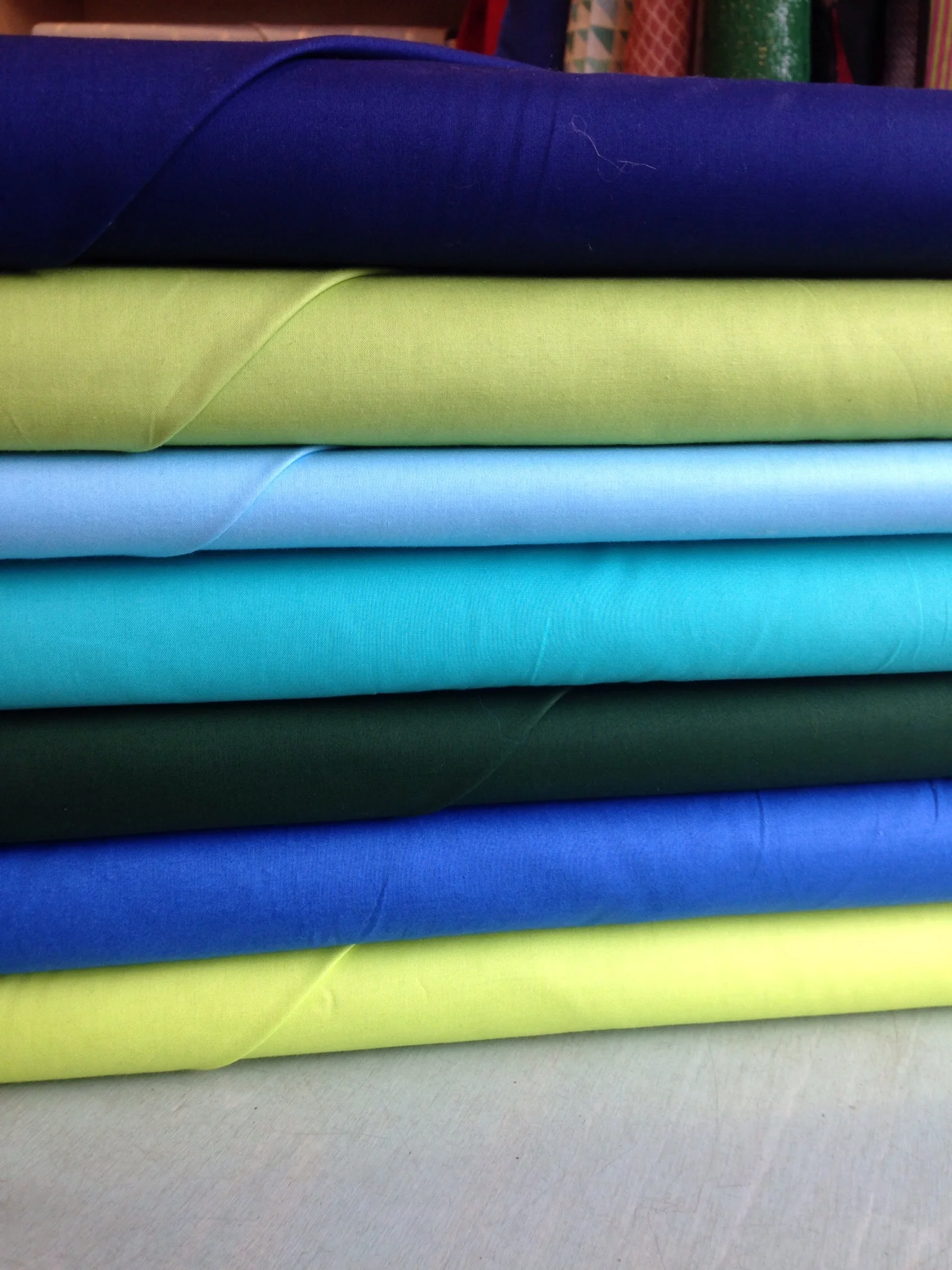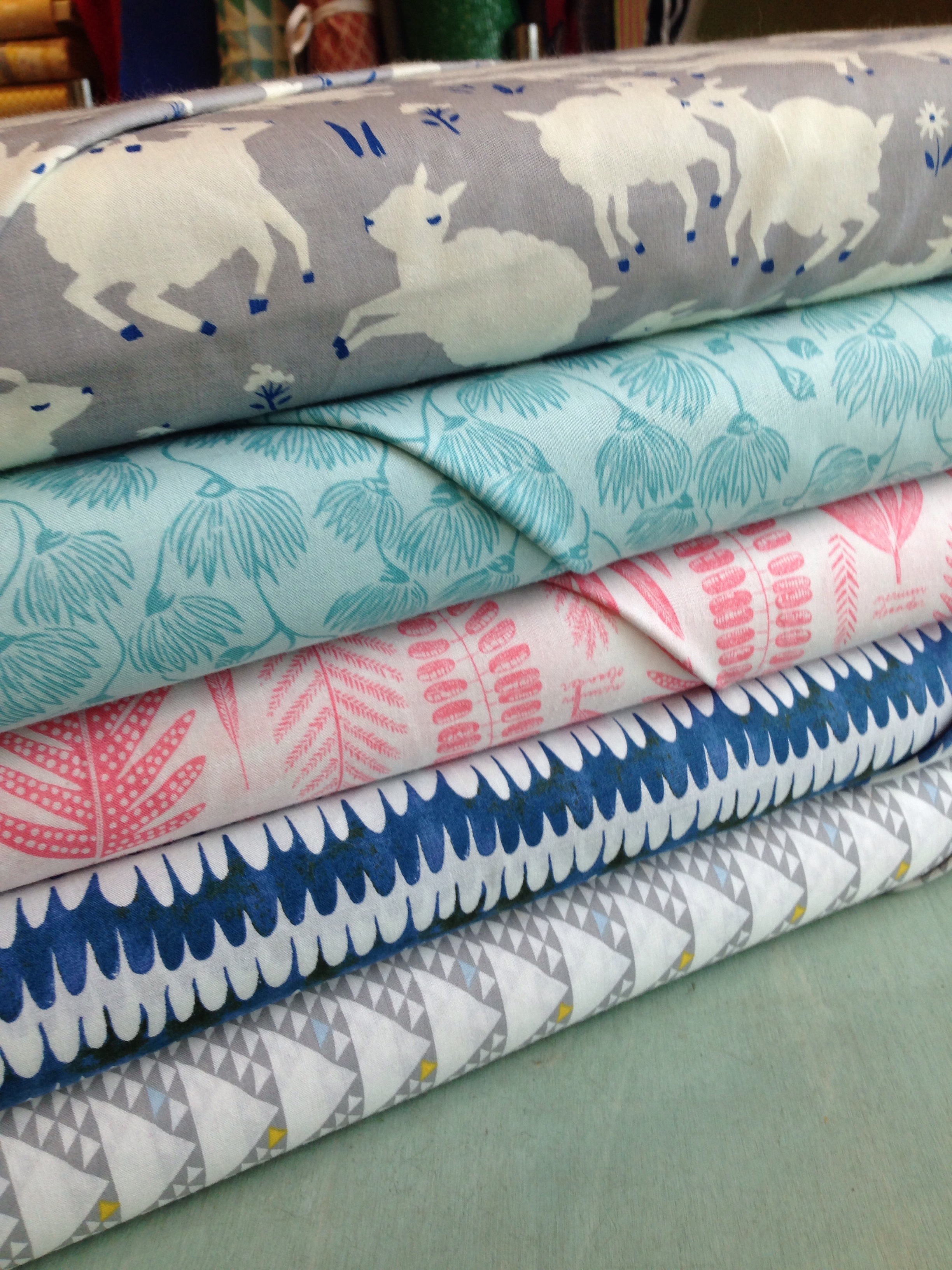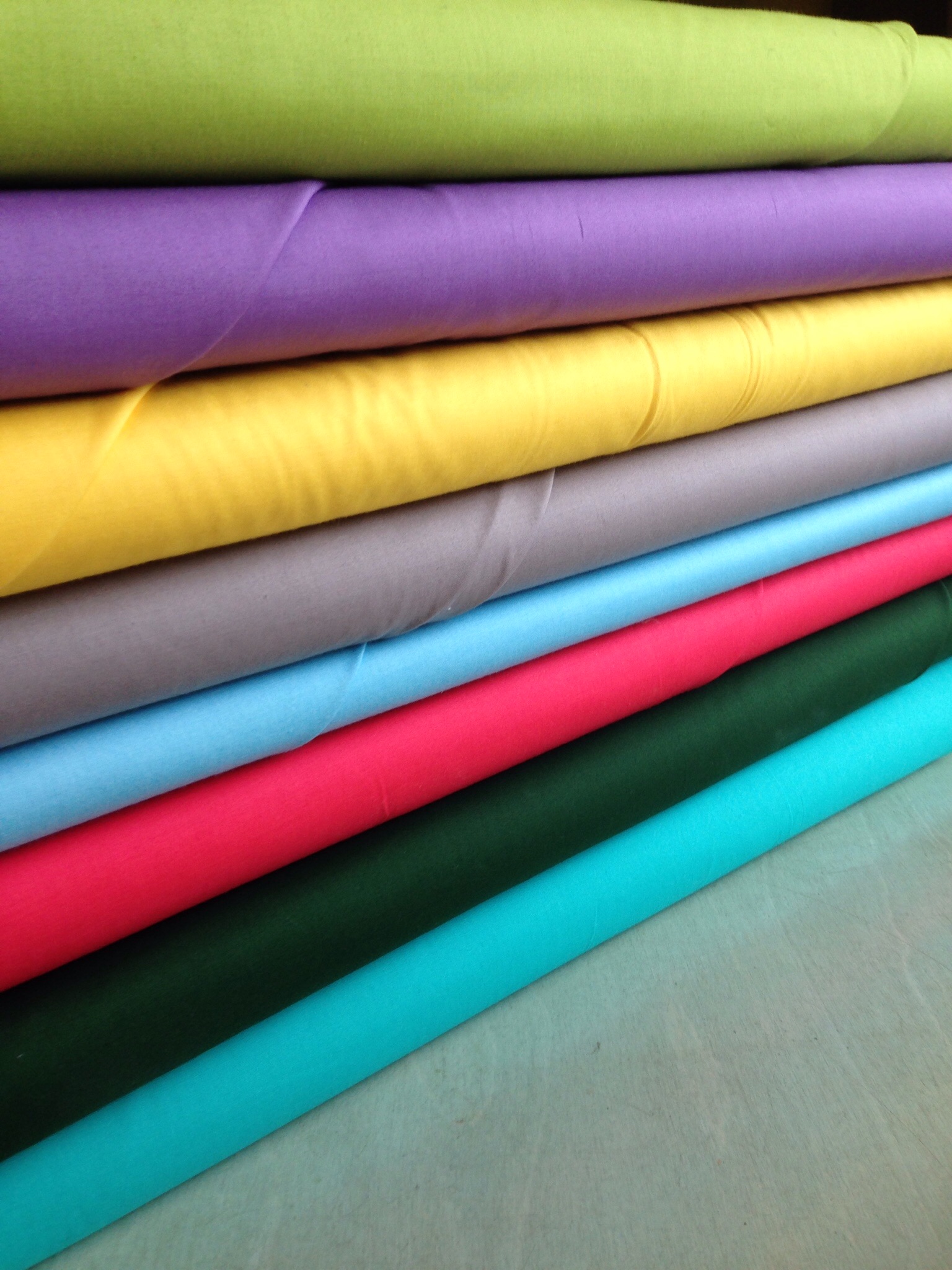 The solids come in a bright slew of colors, and we have organic prints that would make sweet pillow cases. I picked out my favorites below. Of course, we're always happy to help you find your favorites next time you're in the store.
