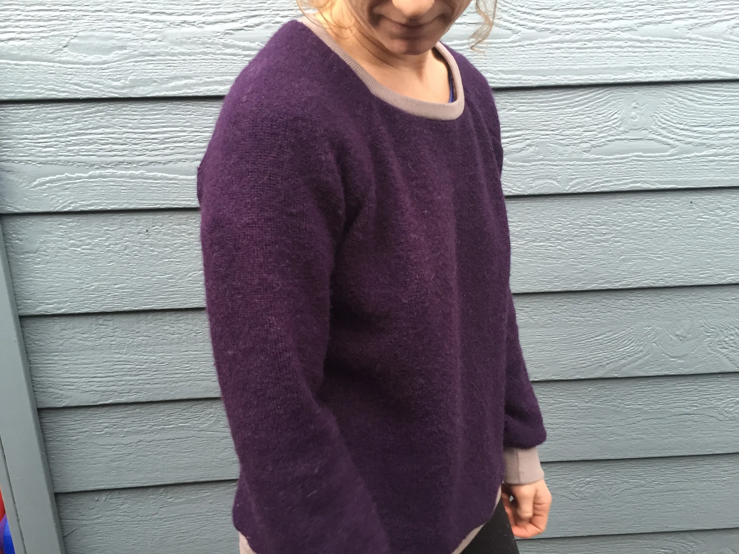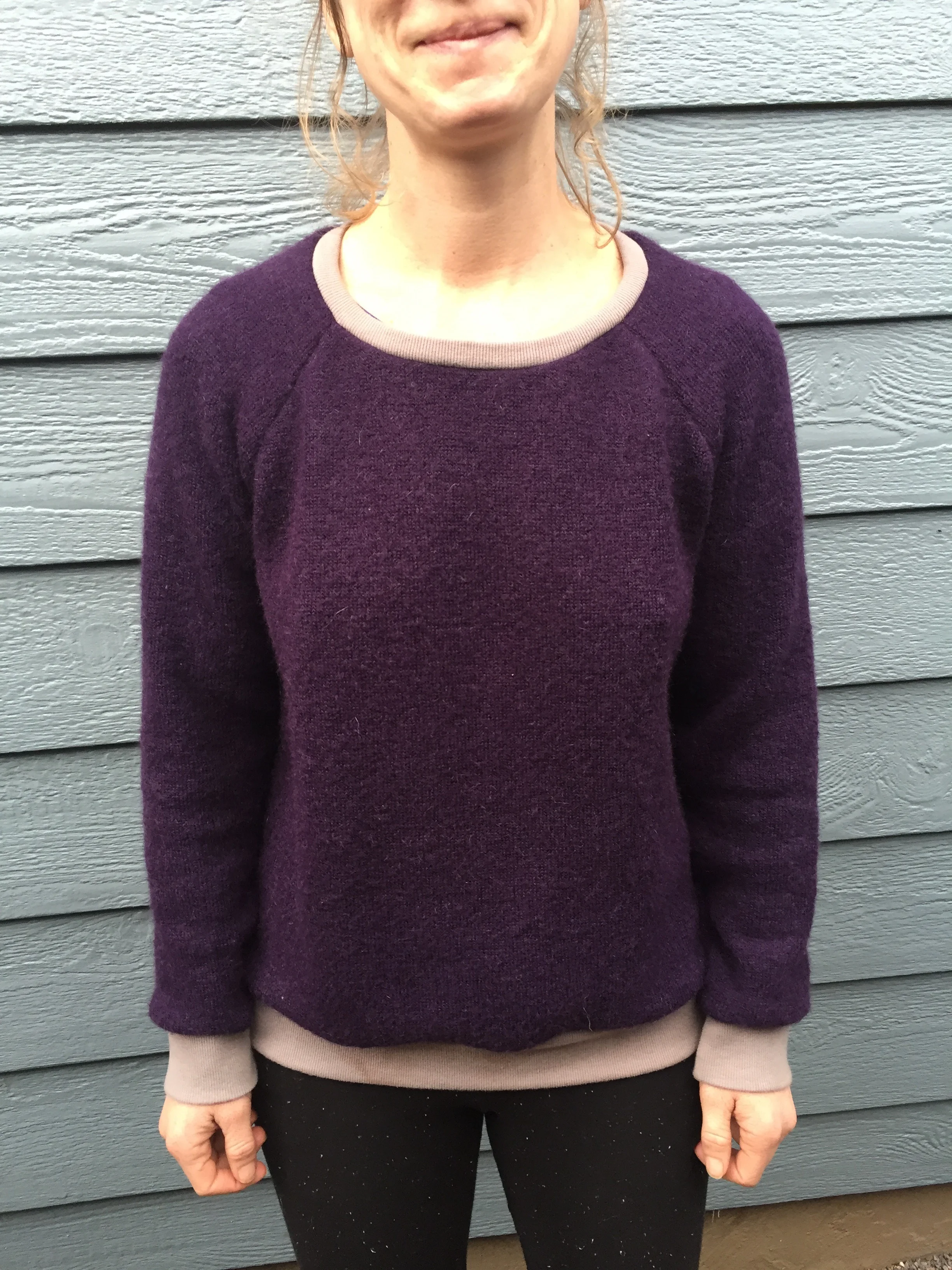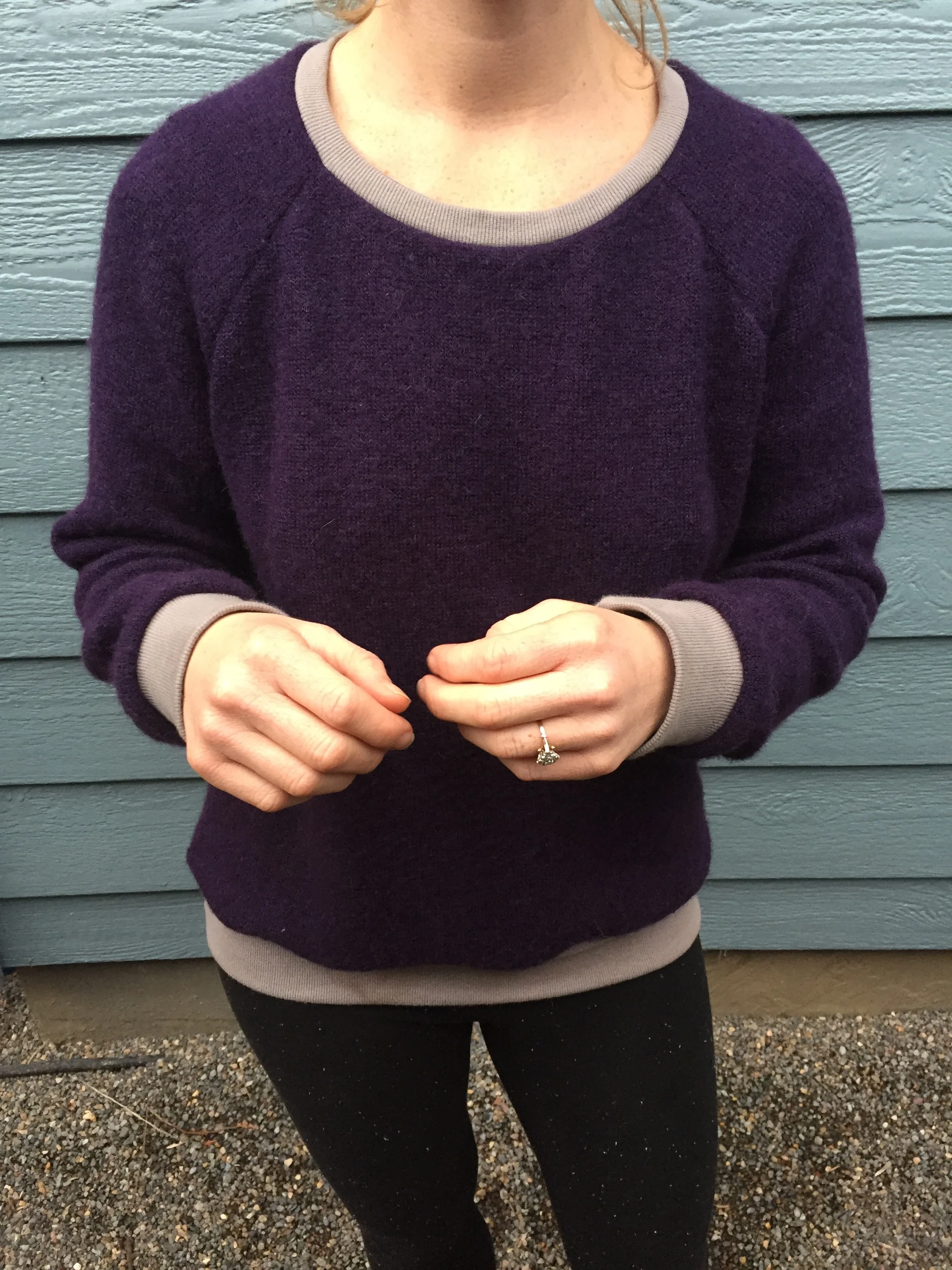 I chose this incredible plum mohair paired with lovely organic cotton ribbing. It came together in about 30 minutes and I shortened the sleeves 2". I'm a fan, not only of Grainline but of knits too.