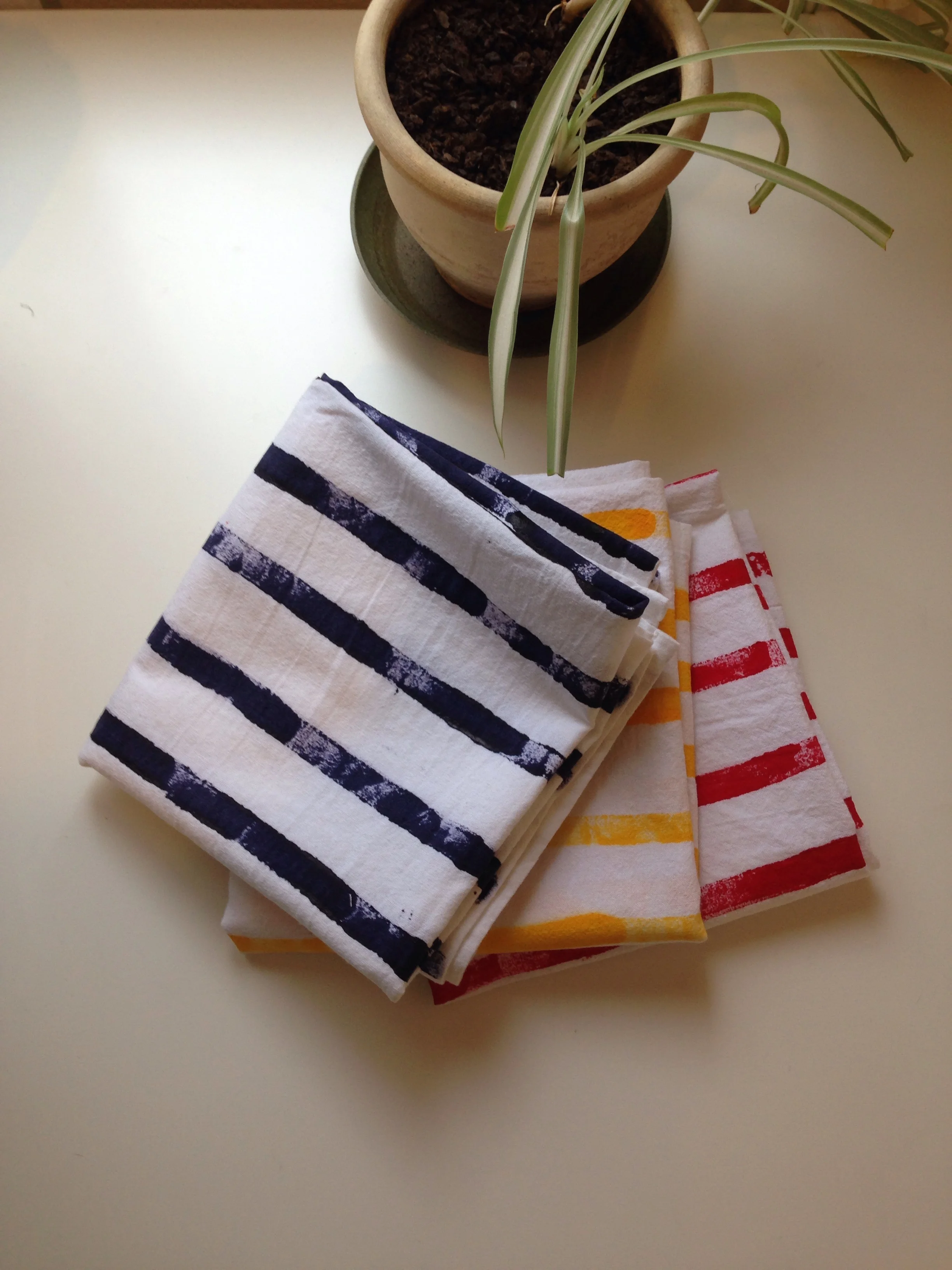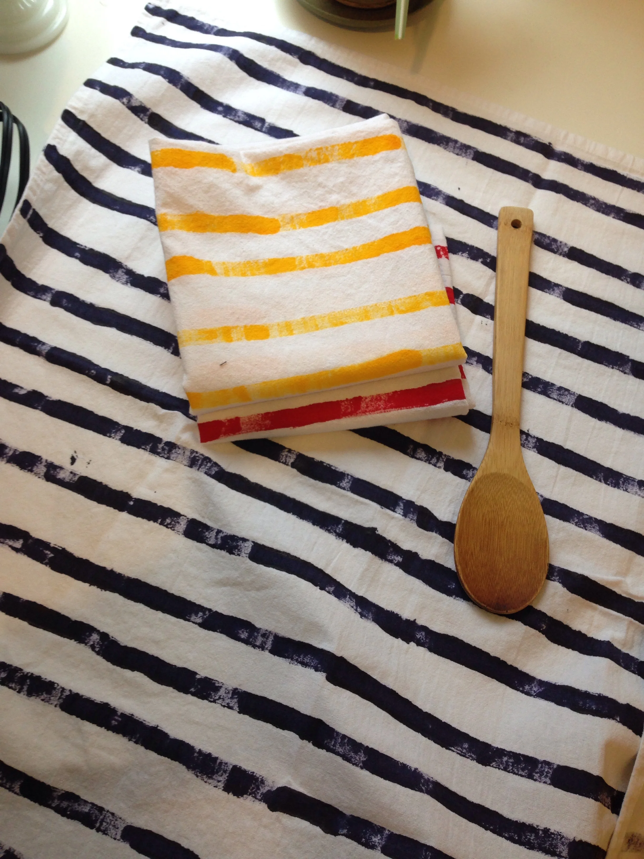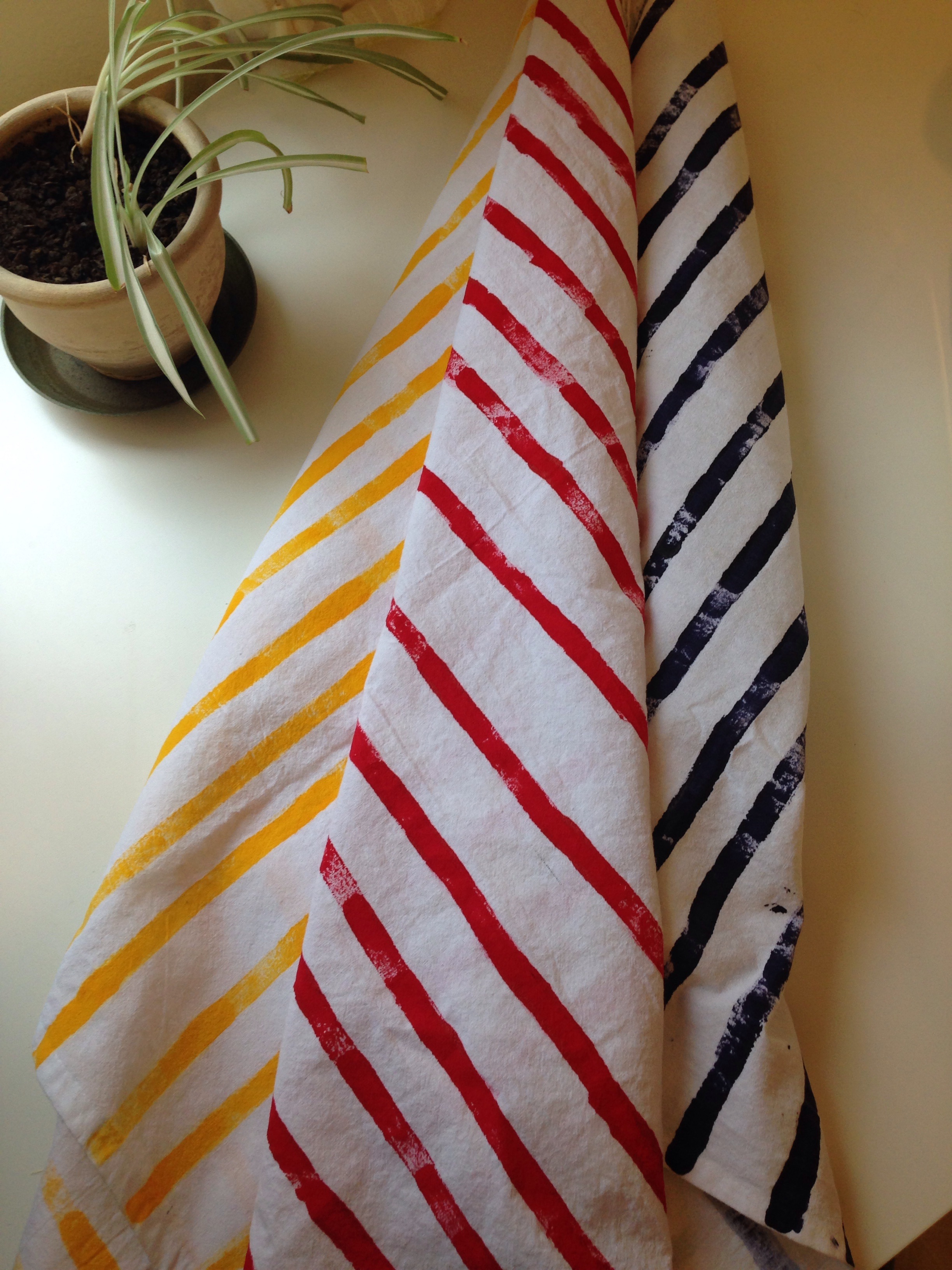 I wanted to do some experimenting and I ended up making perhaps the least experimental kitchen towel - stripes in primary colors. I know what like.