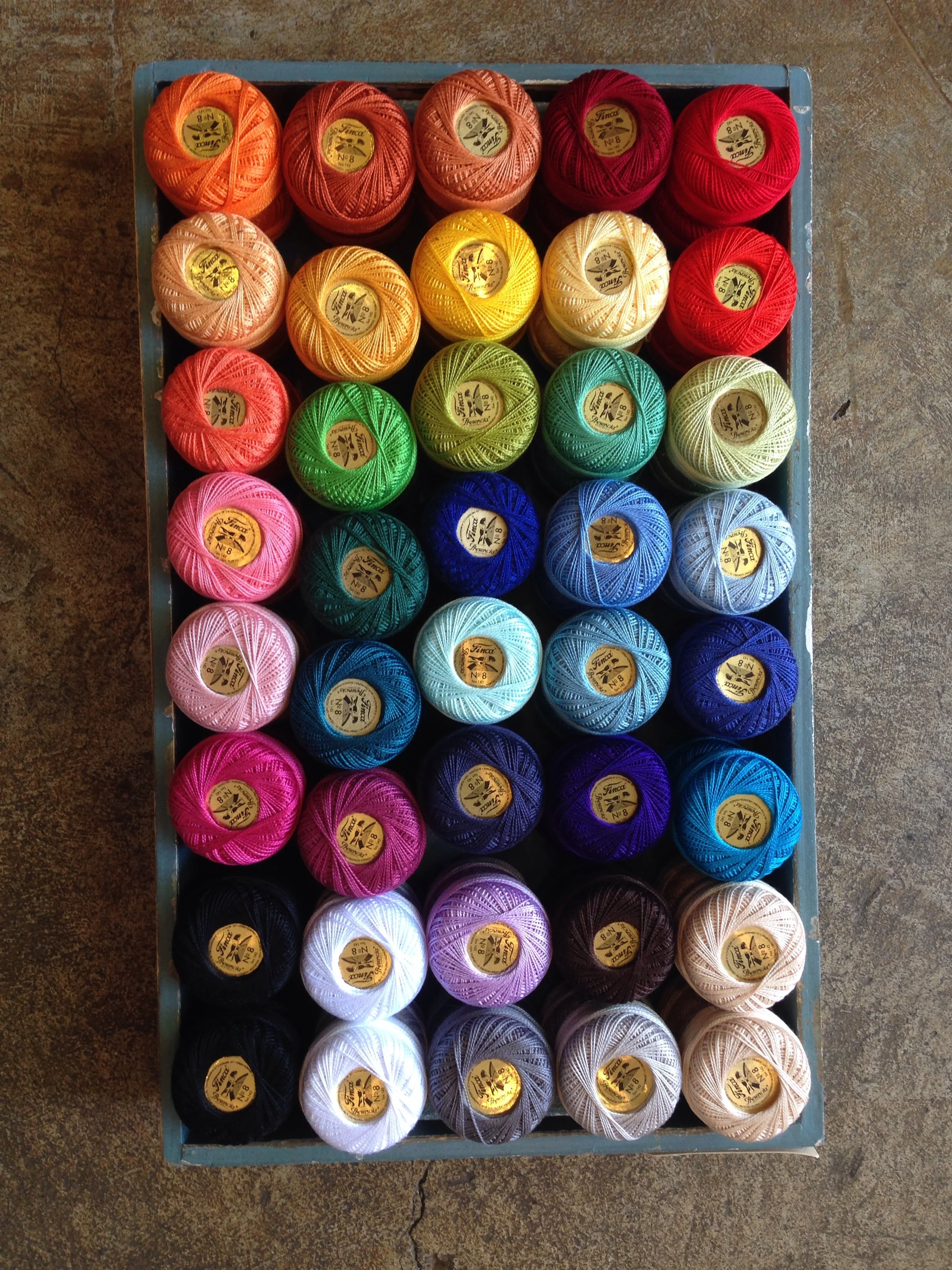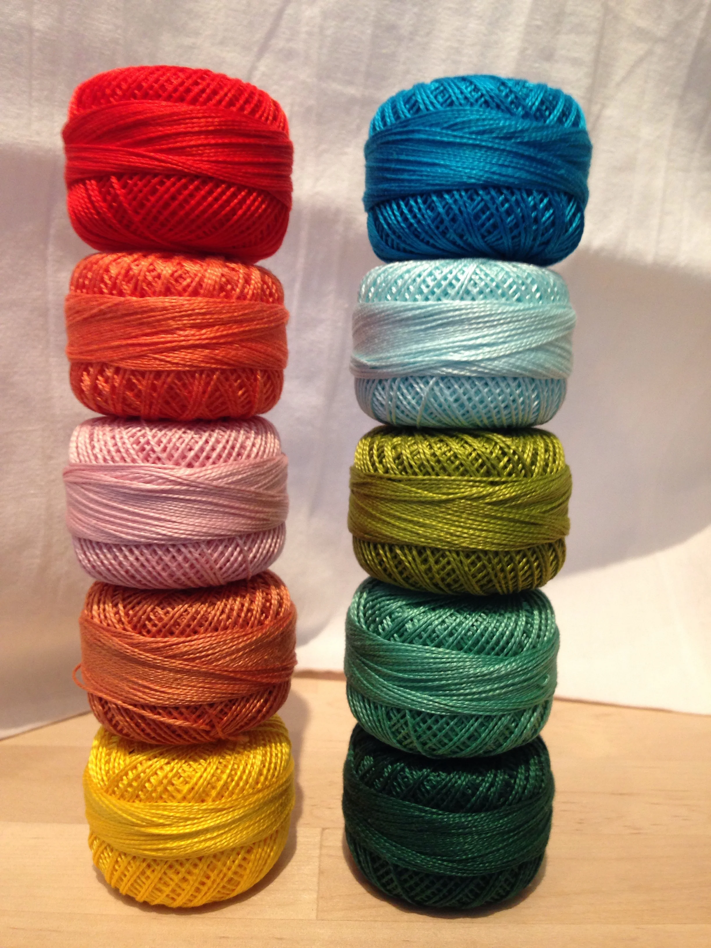 We love Perle cotton embroidery floss. Their like little gems of vibrant color winking at us from the back table. If you've used it, you know just what we're talking about. It's commonly used in bold and impactful embroidered pieces, but I love it for hand quilting. It's a fun splash of color and is a dream to work with. Best of all - it's now available in our online store! We've bundled them in beautiful packs of five colors, but we'd love to help you pick out your own colors. Just shoot us an email at [email protected].