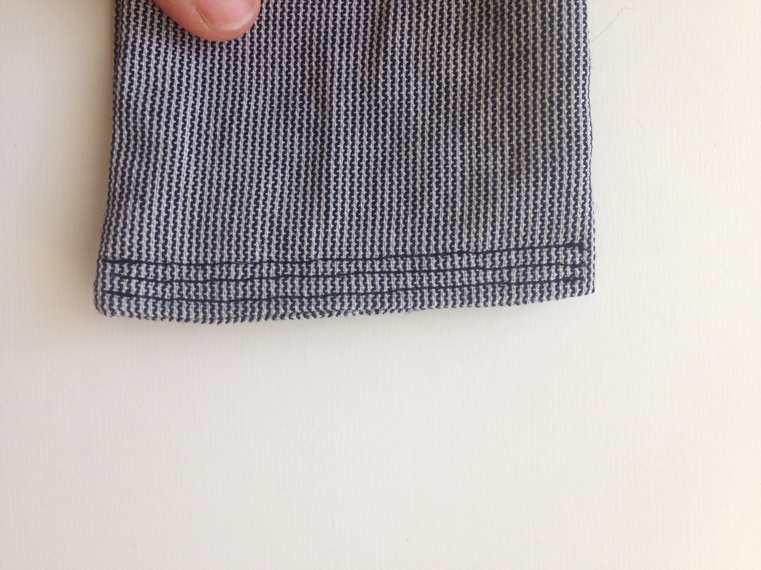 Now you just stuff that sucker as full as you can with scraps. I packed it as tight as I could until the stuffed portion of the tube fit tightly into my door frame. Pack it down a little bit further and top stitch the other end closed.