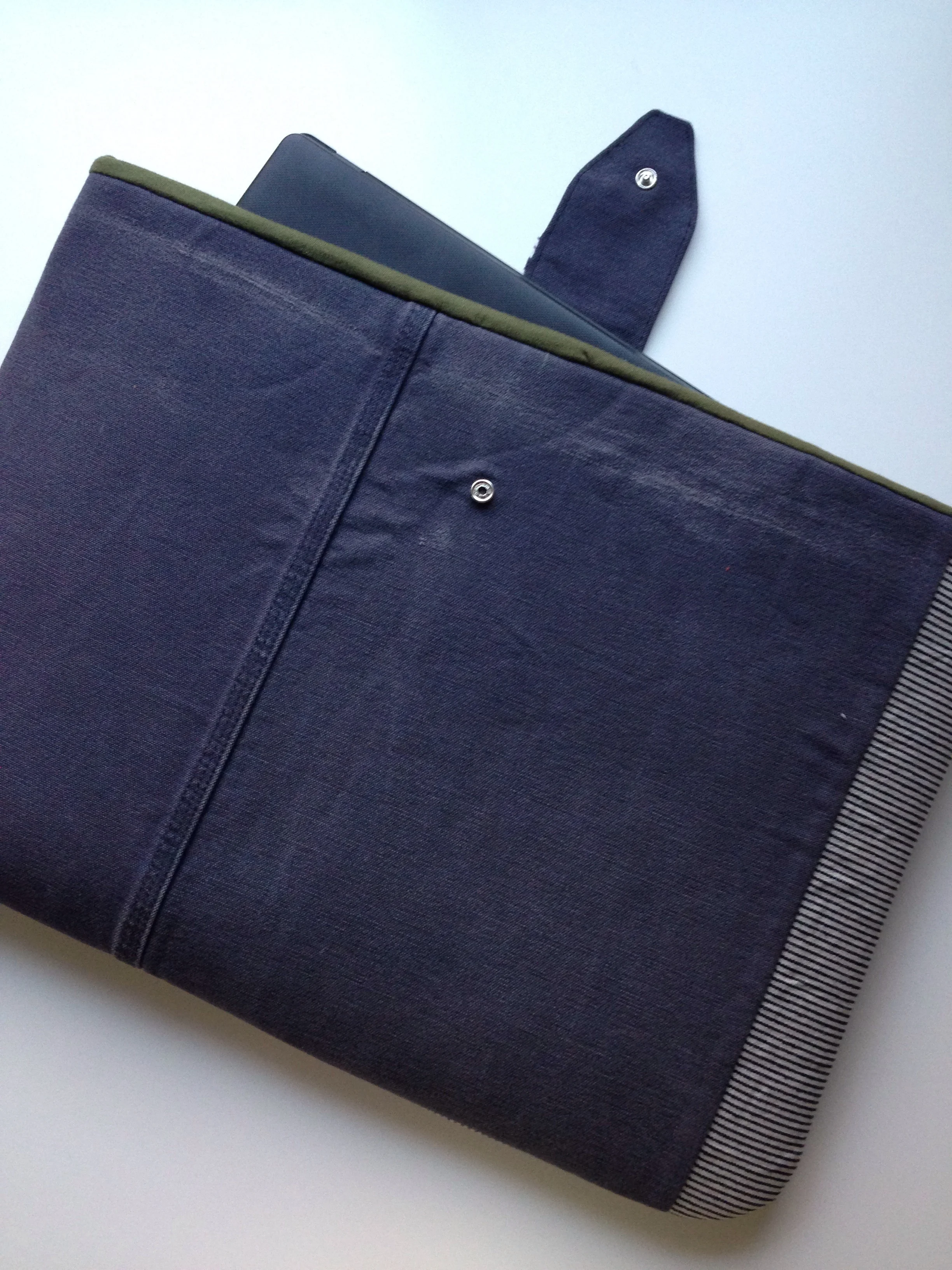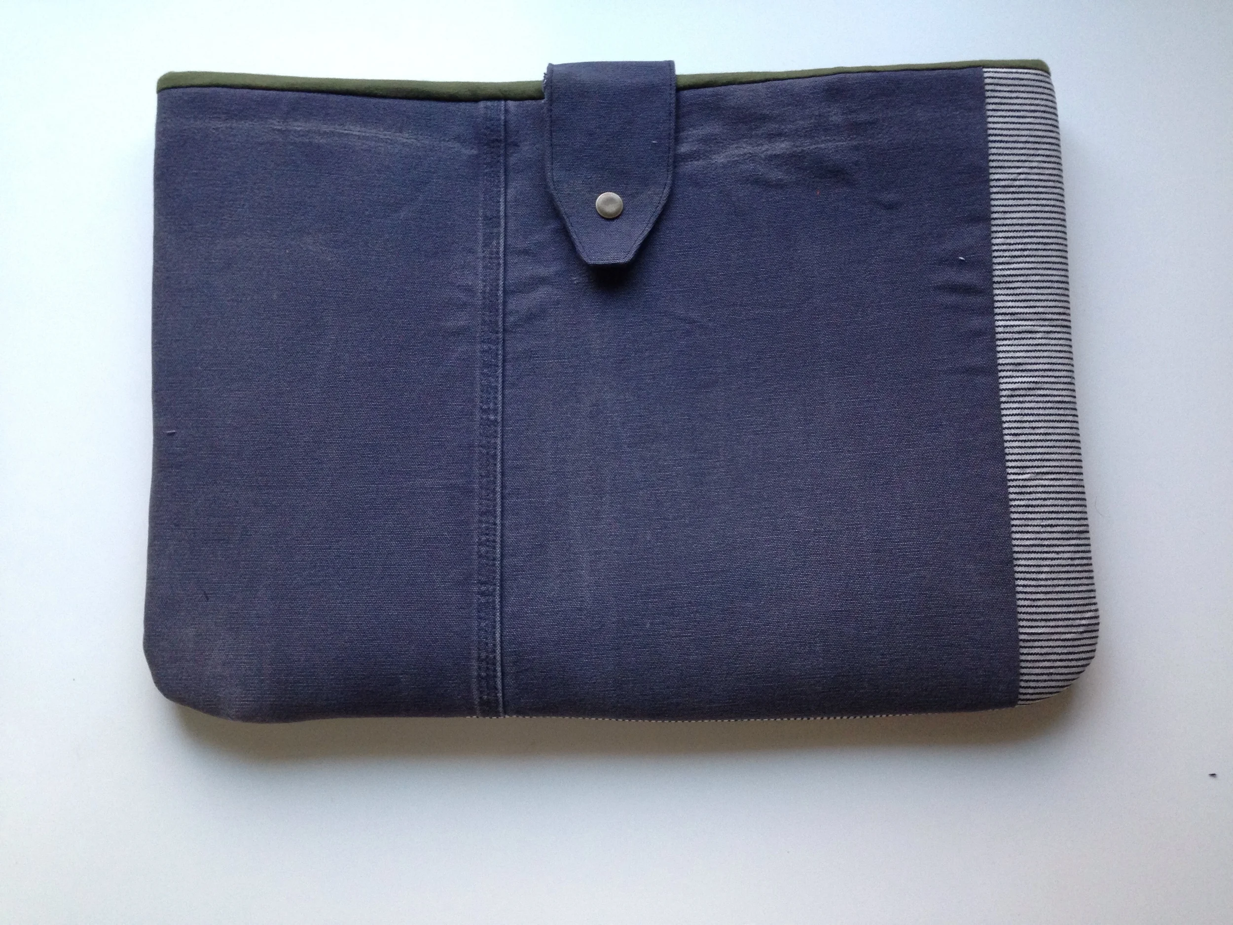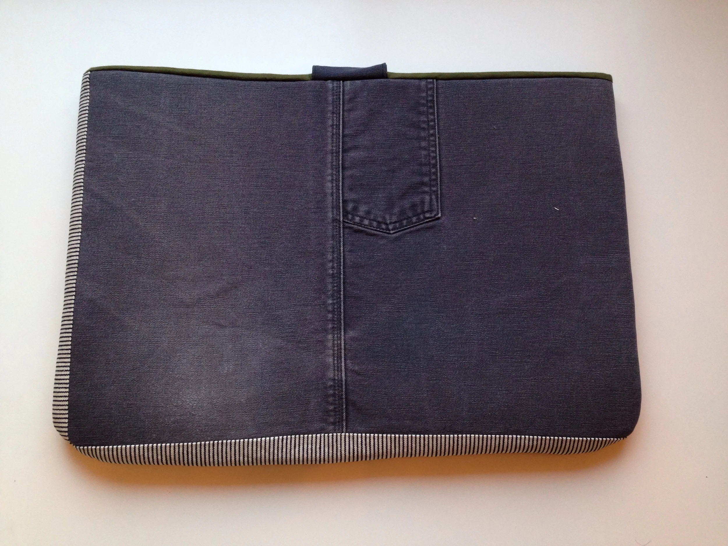 I made up a tablet case as a Christmas gift for my boyfriend. I started with an old pair of heavy duty work pants, cut them up into the largest rectangles I could get out of their width. To get them to the size I needed I added scraps of my favorite railroad denim - which makes it into almost everything I make. I fused the flex foam to the outside, used a soft old t-shirt as a lining, and finished it with a heavy duty snap. The flex foam was easy to work with, and so pleasantly squishy. It fuses just like a lighter weight interfacing. I did get some bubbling, but I think that was due to my less than methodical approach to pressing the two layers together.