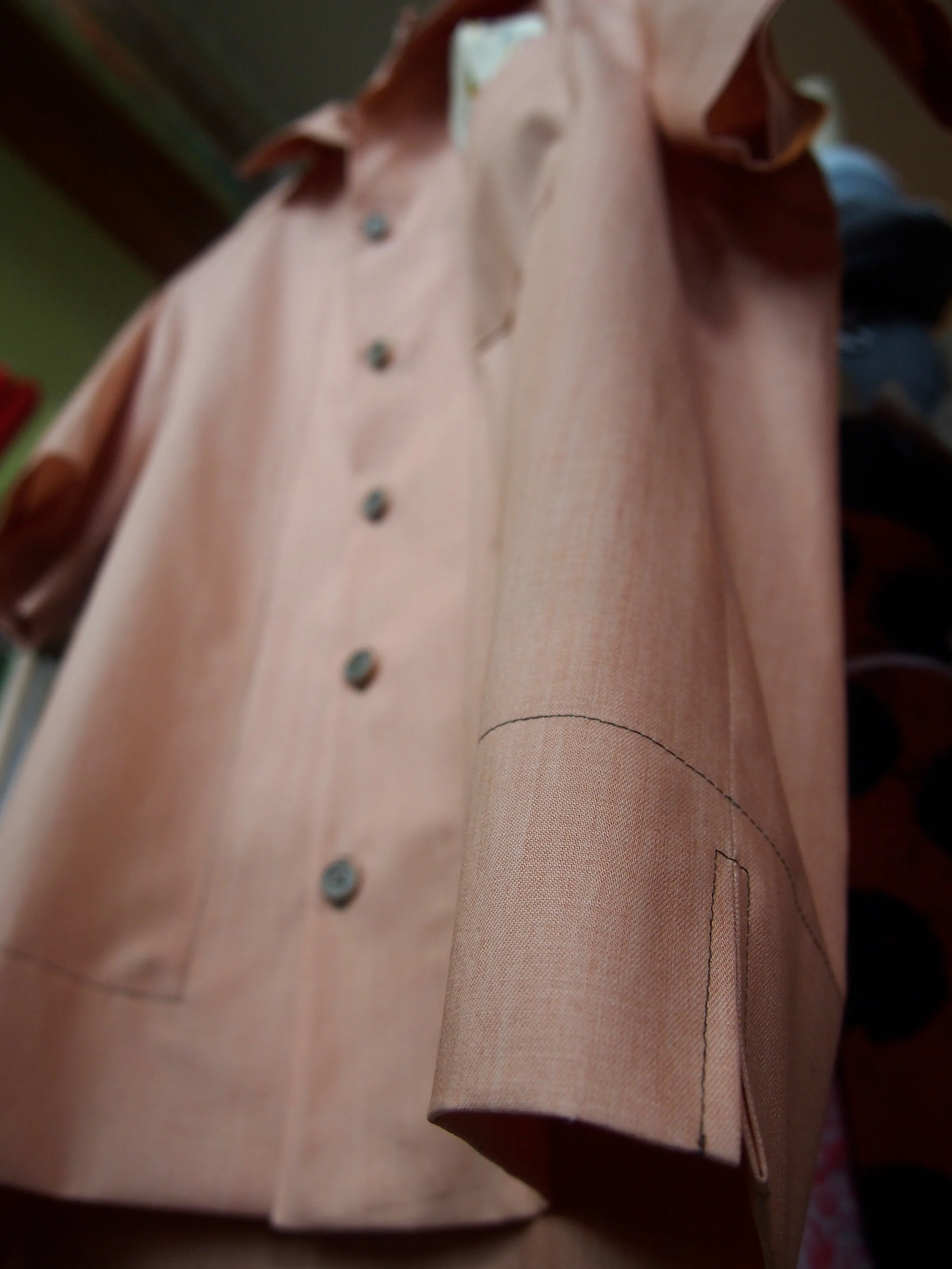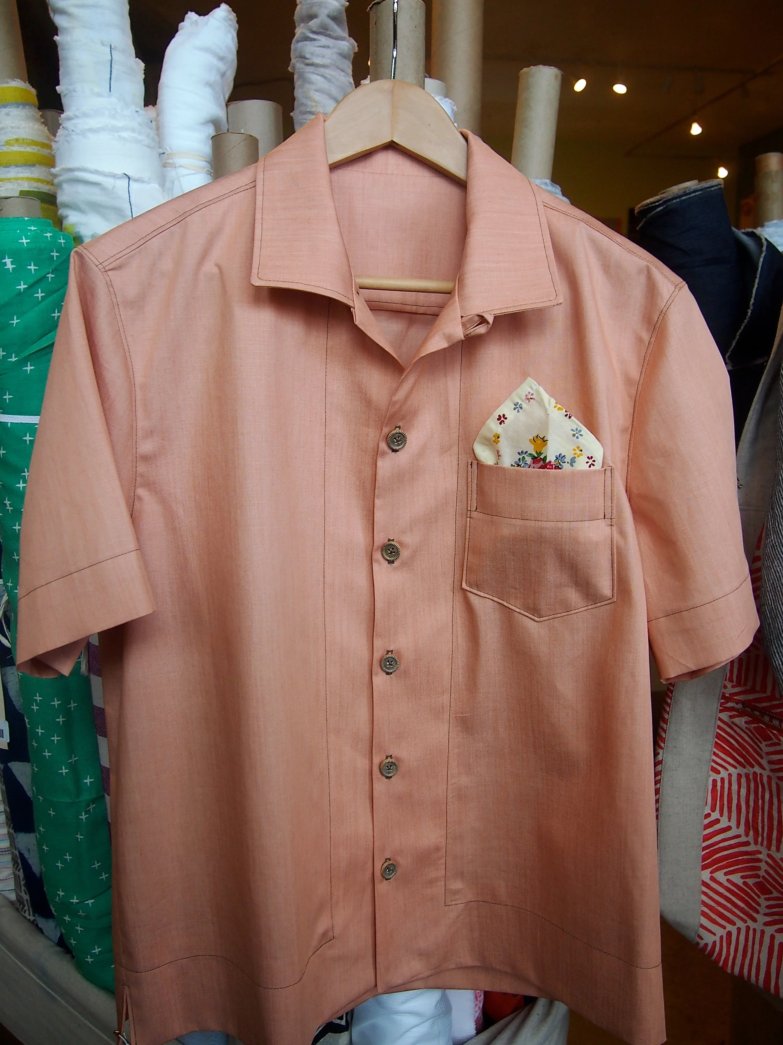This shirt is 50’s inspired and thats why it has that boxy, bowling shirt look about it, which is cool! It has a yoke, so the collar is extra easy to put in and the overload of topstitching, in a contrasting color, is what makes the shirt special, I think.