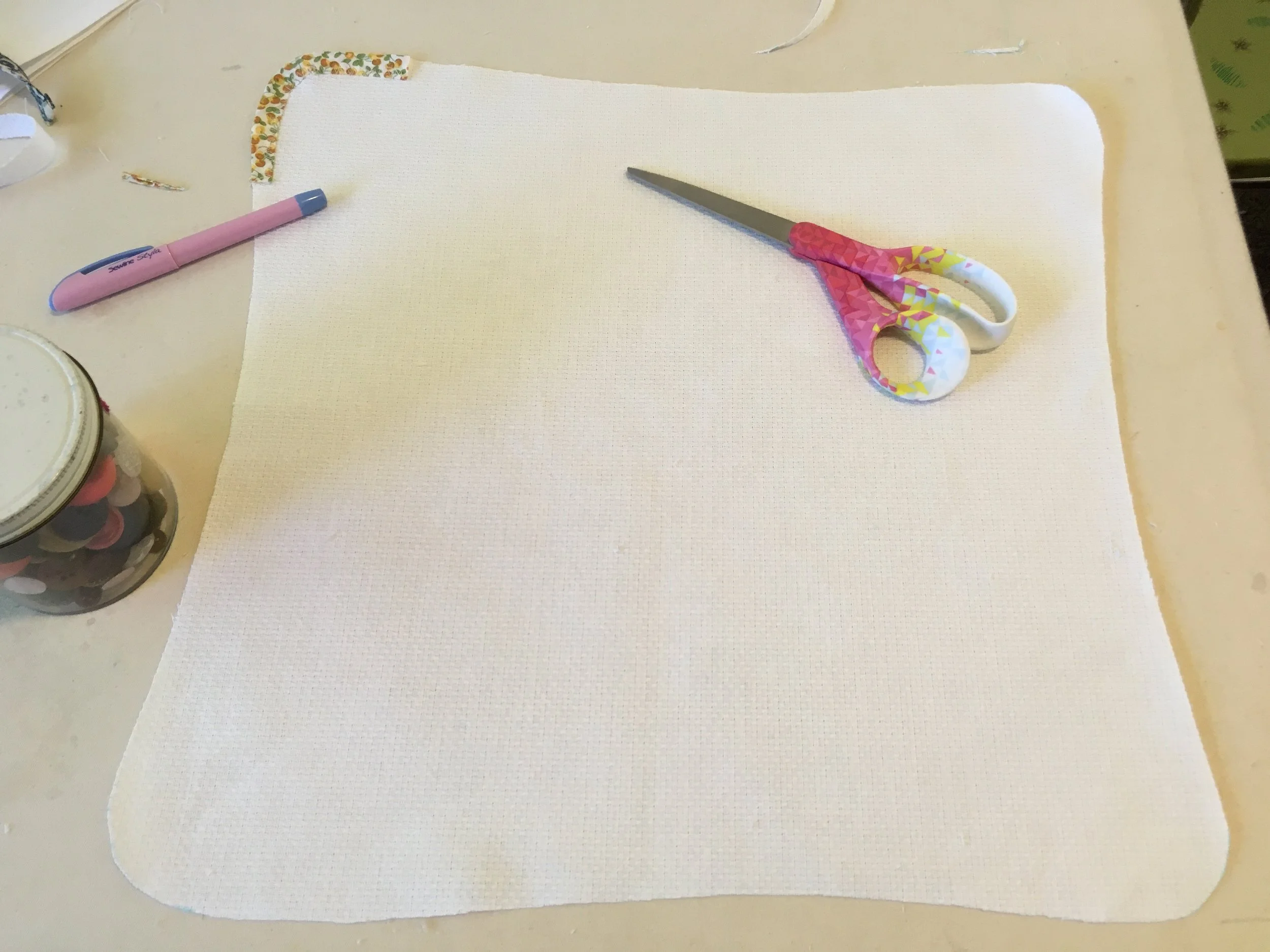 Cut enough bias tape to cover one corner and with a zigzag stitch, sew it on.